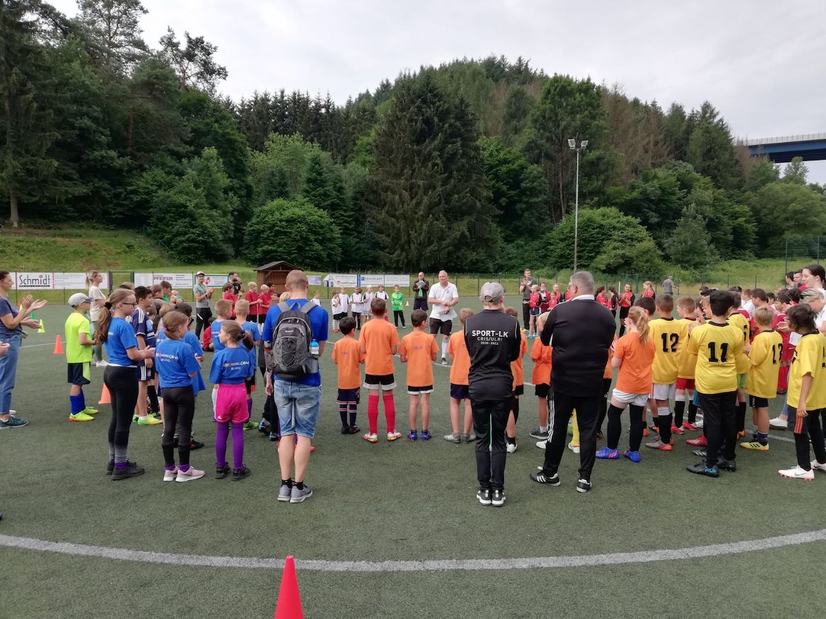Nach drei Jahren Pandemie bedingter Abstinenz war es am 29. Juni endlich wieder soweit und der Wettbewerb konnte bei herrlichem Sommerwetter ausgetragen werden. Gab es vor der Pandemie jedes Jahr noch ein Hallenturnier, so stellte sich die Ausrichtung draußen als großer Fortschritt und Verbesserung dar. Gespielt wurde auf einem „7er-Feld mit 2 Toren“ und parallel auf einem „Funino-Feld“ (auf vier Kleintore), was seit einiger Zeit in den jüngsten Jahrgängen durch den Verband im Kinderfußball vorgegeben ist. Durch das „Funino-Prinzip“ lernen die Kinder nicht nur das „Umschalten“ und schnelle Passspiel, sondern auch das faire Miteinander wird durch das Fehlen eines Schiedsrichters gefördert.