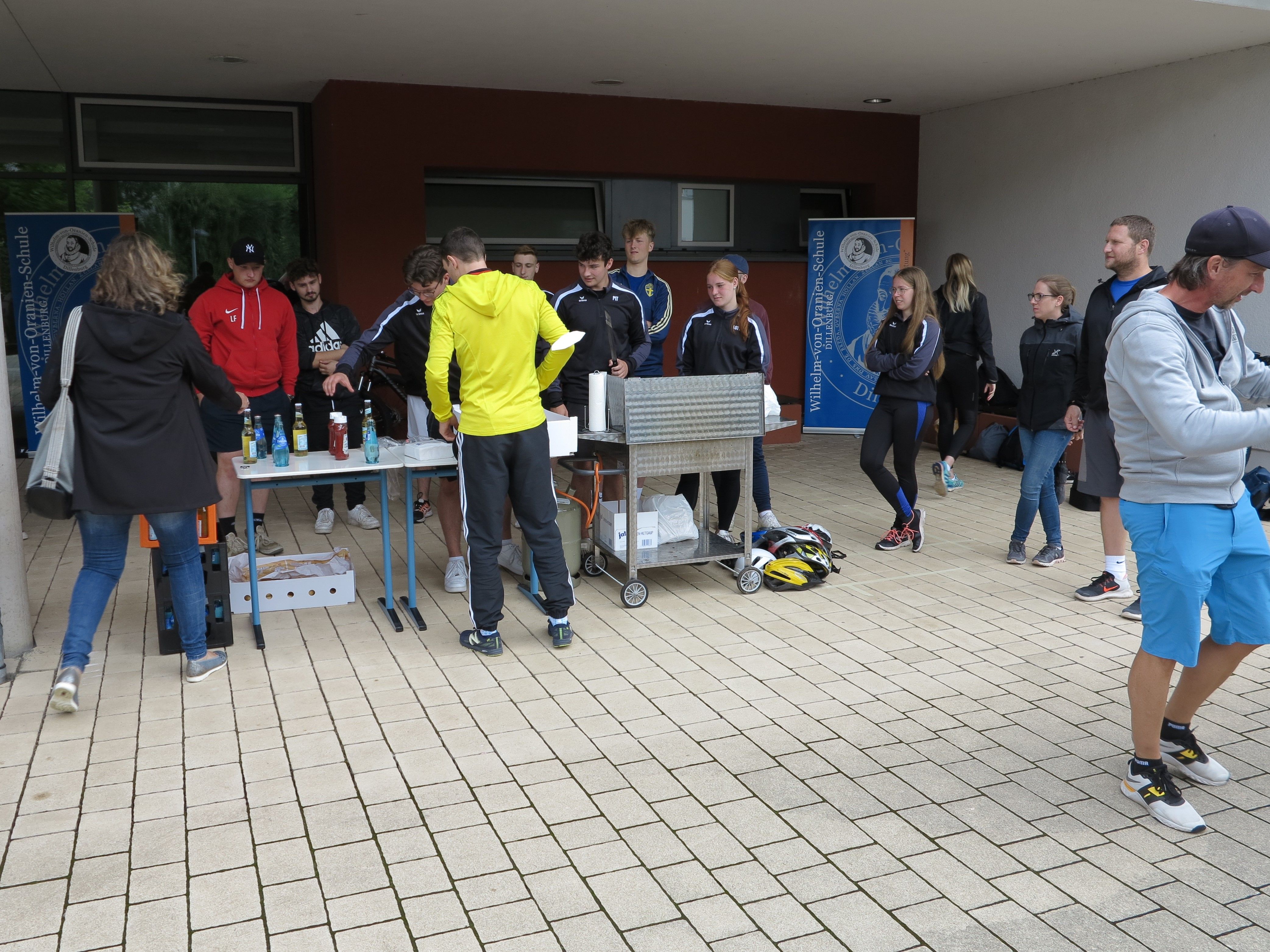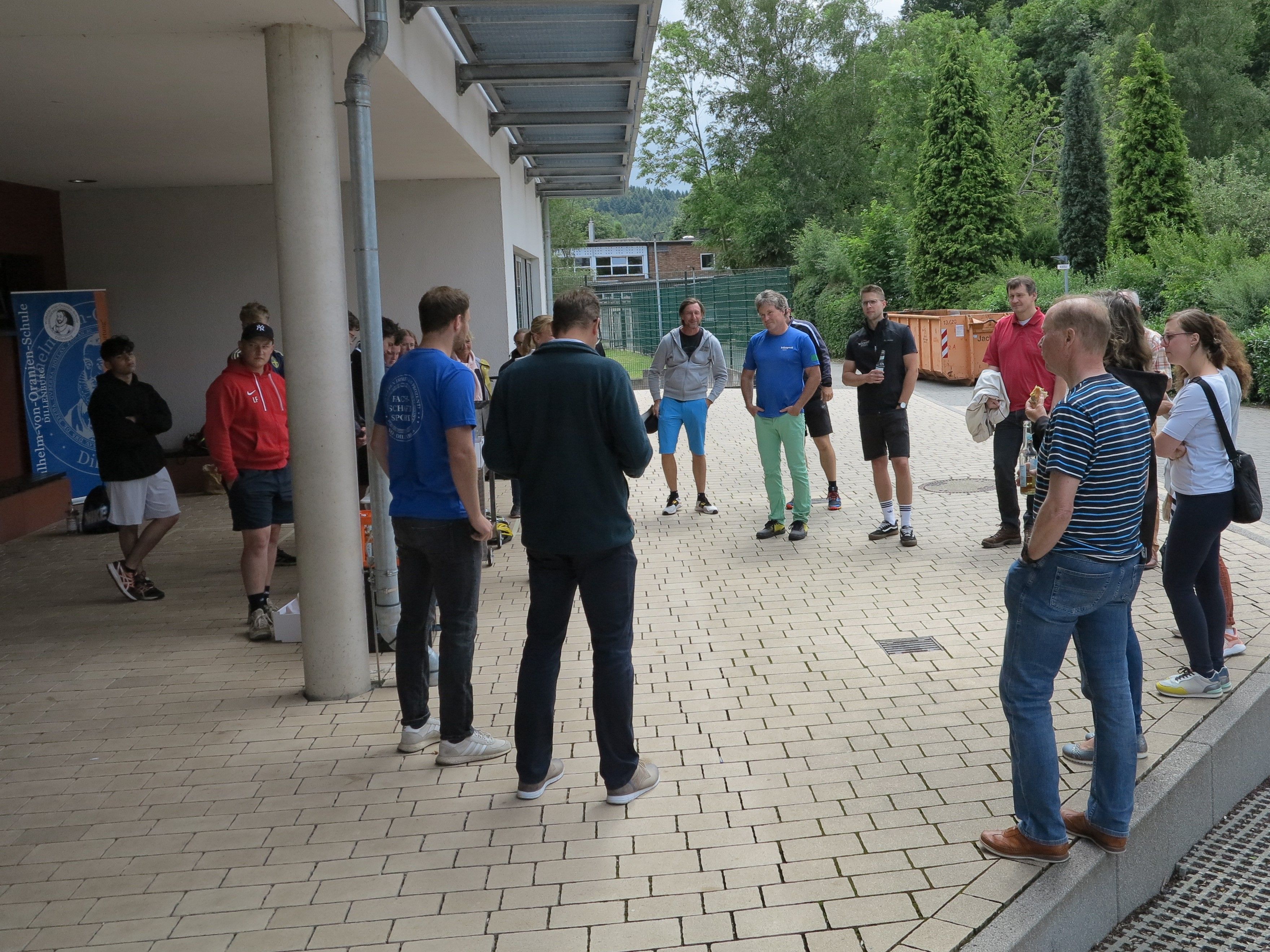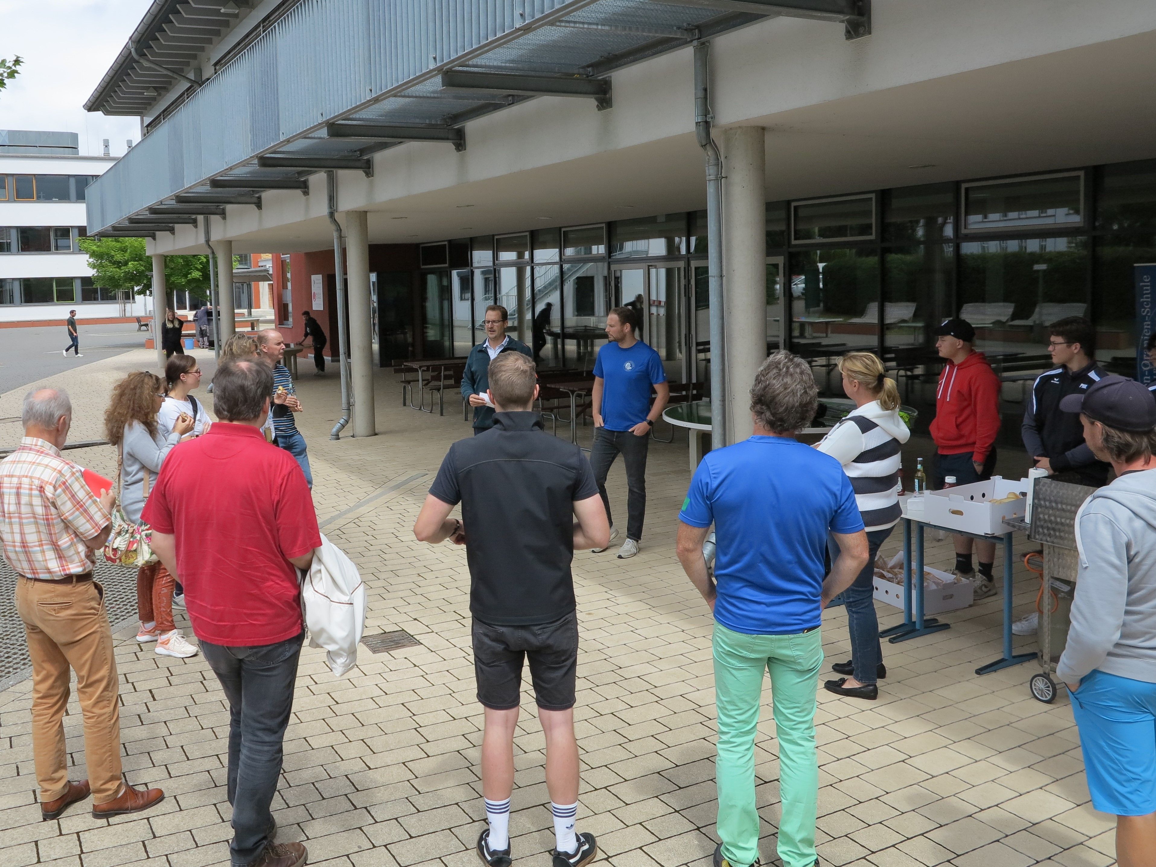 Nach einer kurzen Stärkung vom Grill, der dankenswerterweise von den Schülerinnen und Schüler des Sportkurses von Stefan Heußner übernommen wurde, informierten die beiden Initiatoren des Projektes, Alexander Stahl und Maurice Bechtum, die anwesenden Gäste über den bisherigen Verlauf und die geplante Umsetzung in der Zukunft.