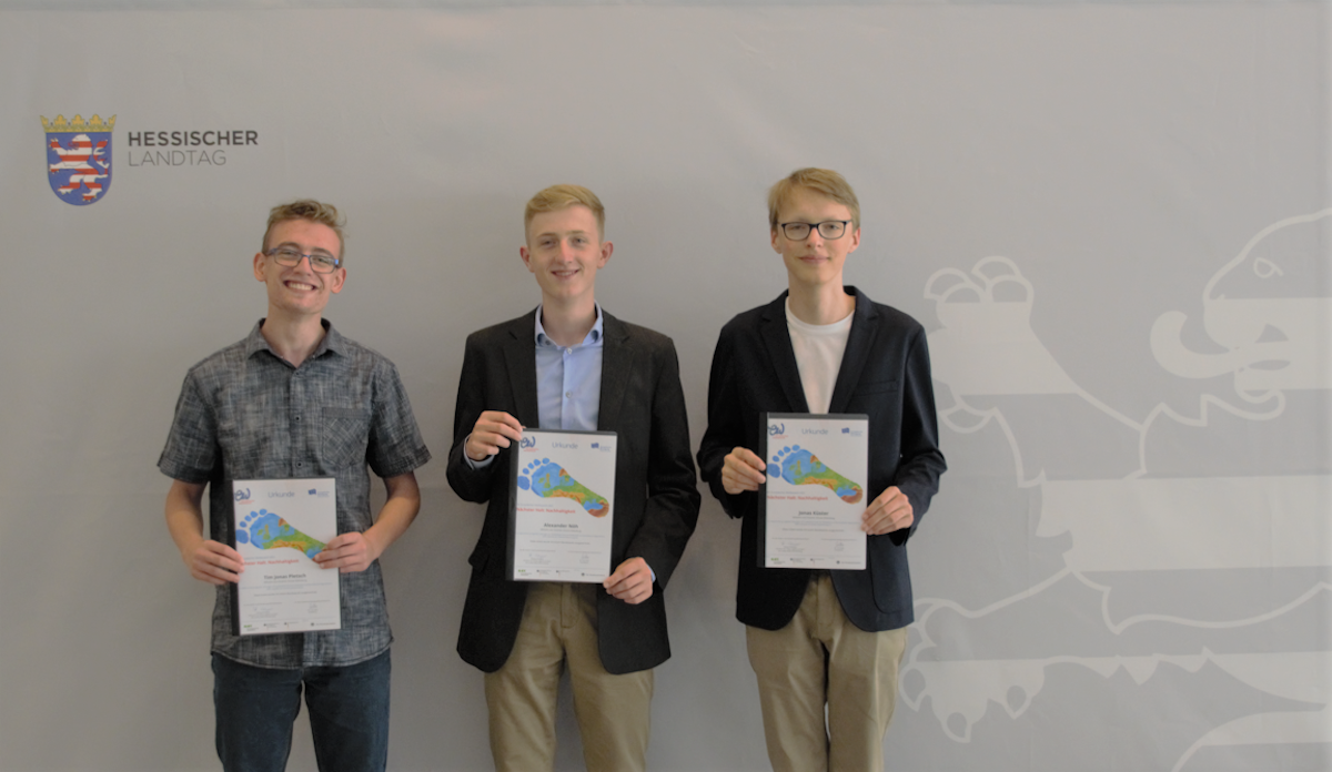 Die Preisverleihung erfolgte für alle Teilnehmer des Wettbewerbes in den jeweiligen Landeshauptstädten. So fuhren die Dillenburger Anfang Juli zum Hessischen Landtag nach Wiesbaden, um ihre Urkunden entgegenzunehmen. Begrüßt wurden alle Preisträger von der Gastgeberin Karin Müller, der Vize-Präsidentin des Hessischen Landtages. Danach folgte Thomas Mann (Vorsitzender des Landesverbandes der Europa-Union Hessen), der zu dem Thema Nachhaltigkeit sprach. Er forderte Zusammenhalt und gemeinsames Engagement. Das Wort hatte auch der hessische Koordinator des Wettbewerbs Fabian Berly Gimelle, der allen Mitverantwortlichen, Teilnehmern, Organisatoren, aber vor allem auch den betreuenden Lehrern, dankte. Während der Reden wurden beispielhaft einige Projektarbeiten auf Bildschirmen projiziert und die besten Werke sogar live ausgestellt. In einem Extra „Best of Kurzfilm“ wurden daran anknüpfend weitere Arbeiten präsentiert. Neben Videos und Bildern gab es sowohl schriftliche Ausarbeitungen als auch Songs.