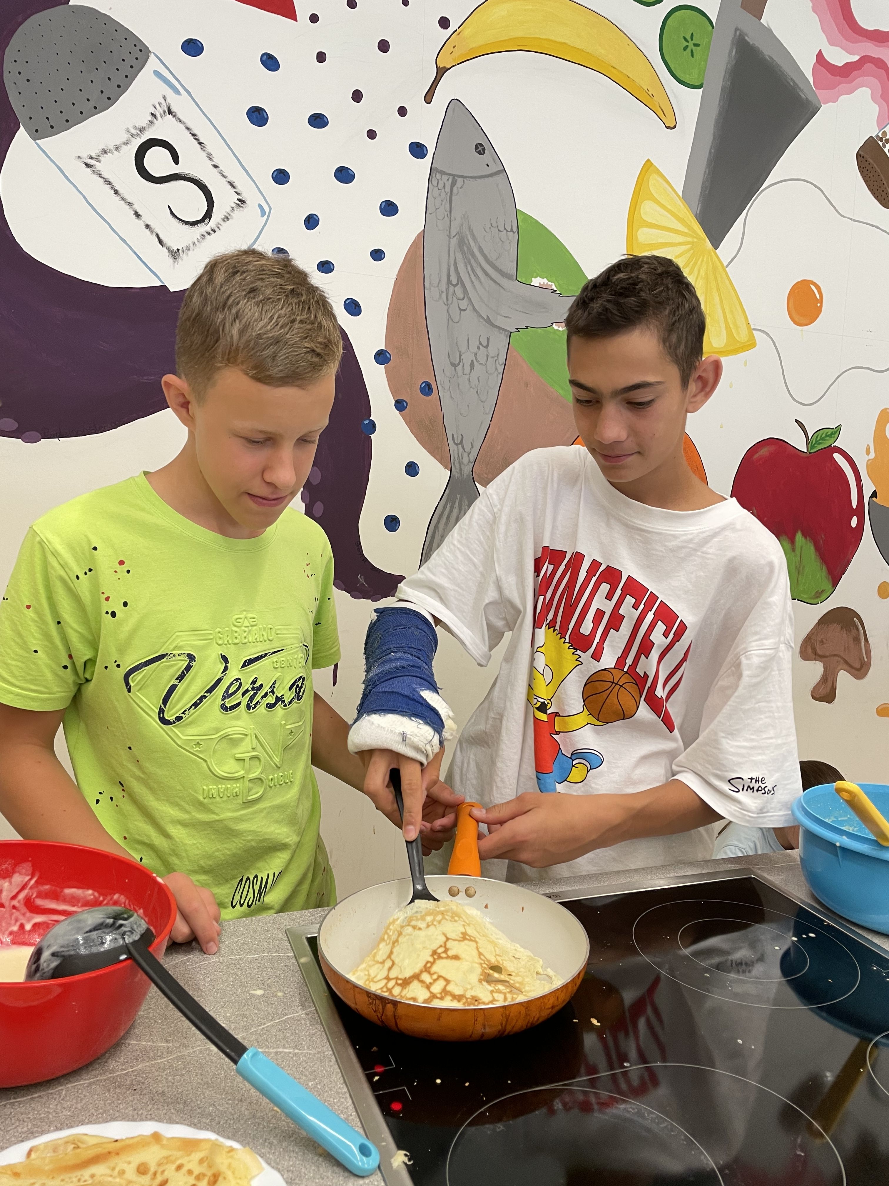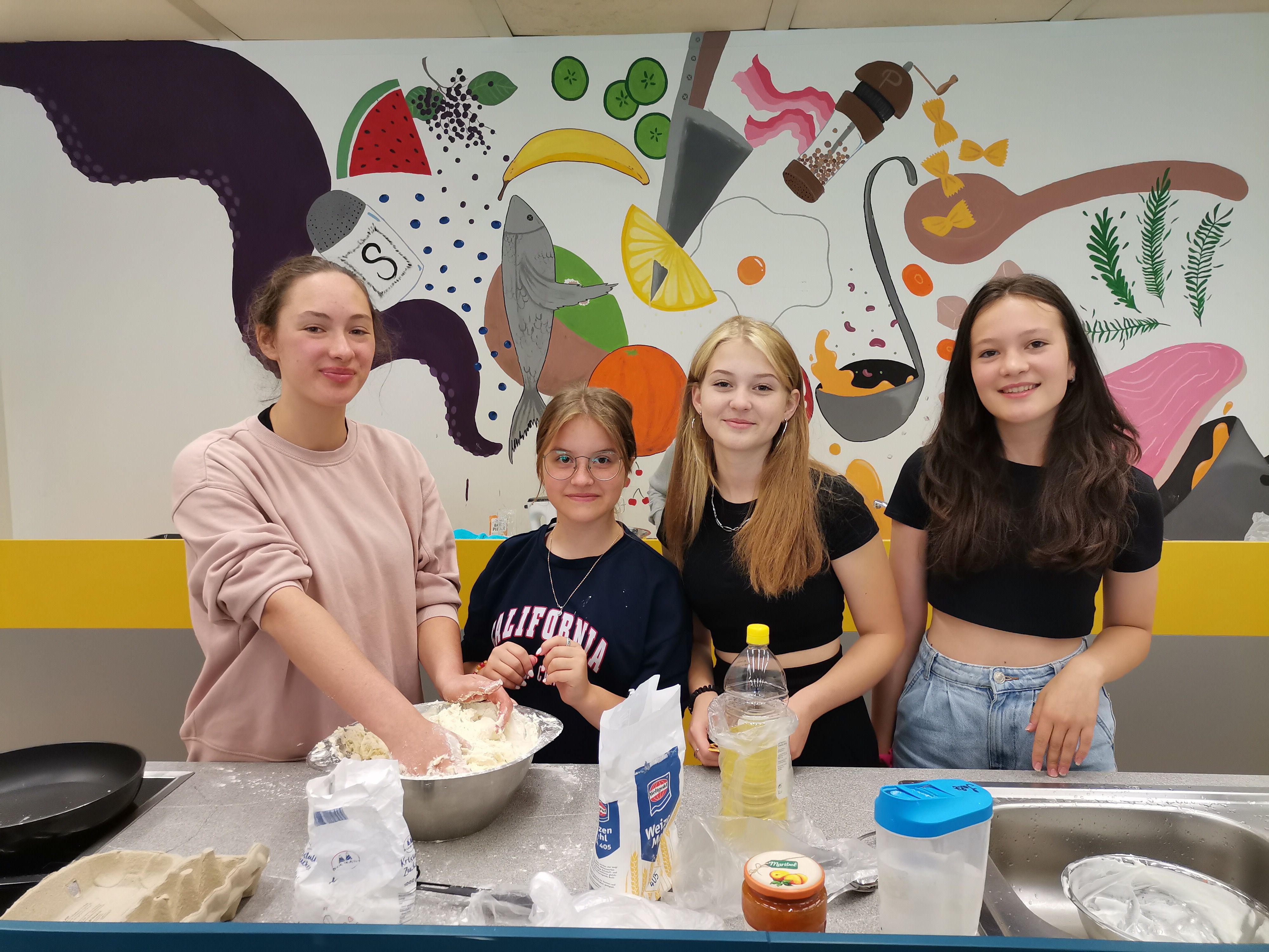 In der folgenden Woche planten die ukrainischen SchülerInnen in Kleingruppen ihre kulinarischen Vorhaben und bereiteten hoch engagiert ihre Lieblingsspeisen in der Schulküche zu. Es war deutlich zu erkennen, dass sie gerne etwas aus der Heimat präsentieren möchten. Gleichzeitig haben sie einige neue Fremdwörter und Verben gelernt, um die Rezepte ihrer Lieblingsspeisen wie “Varenyky”, “Syrnyky” oder “Sharlotka” mit anderen zu teilen.