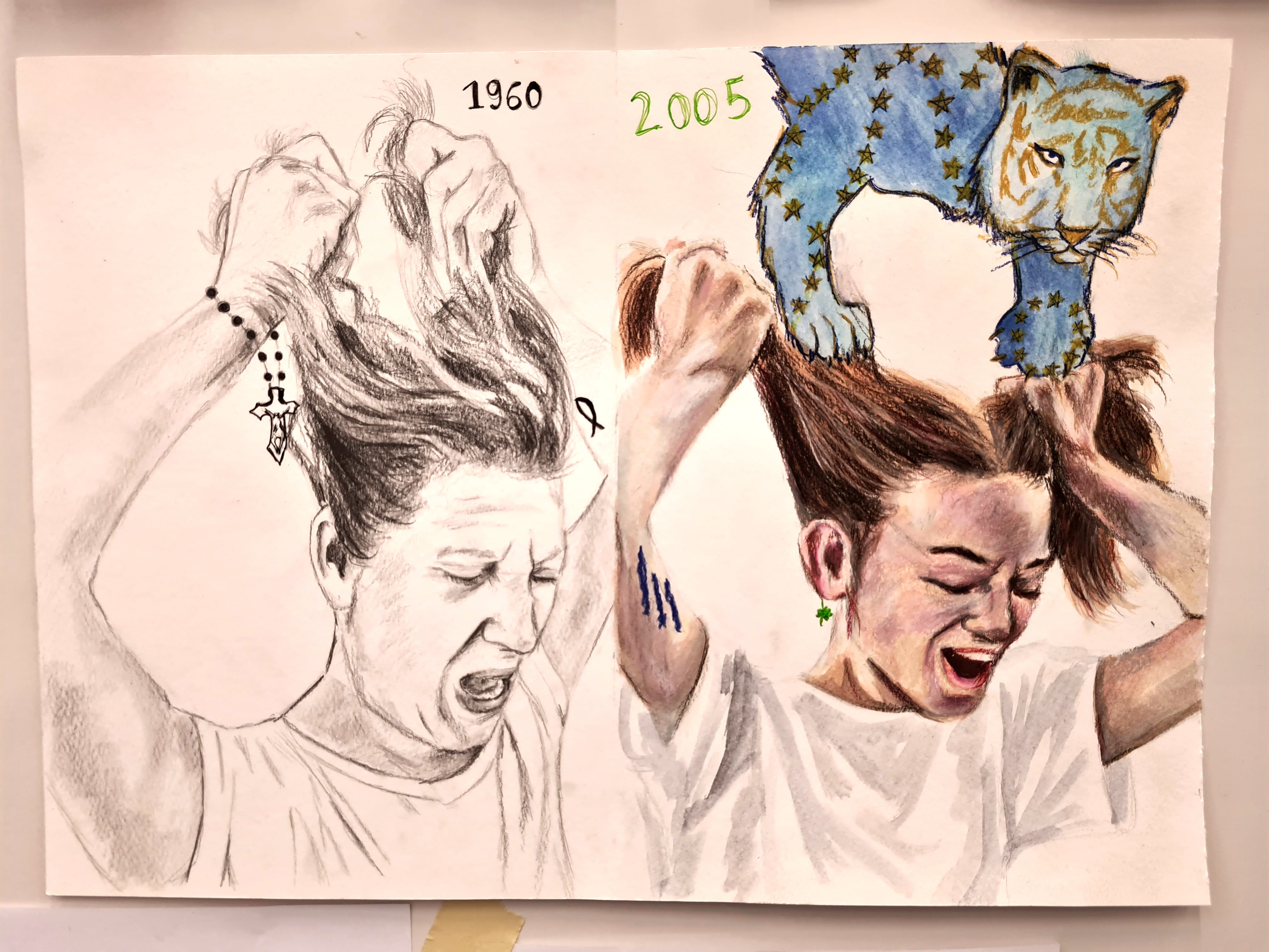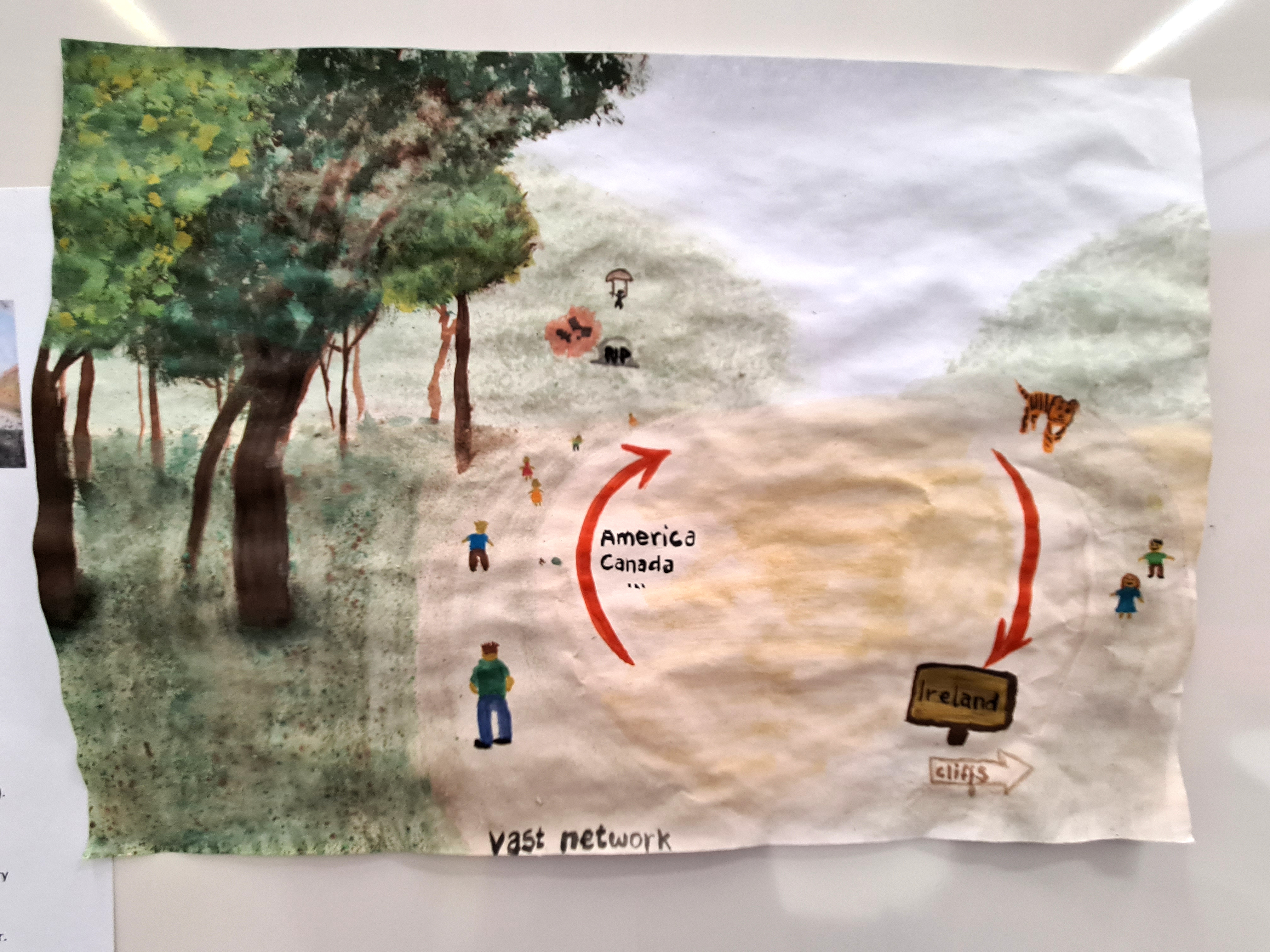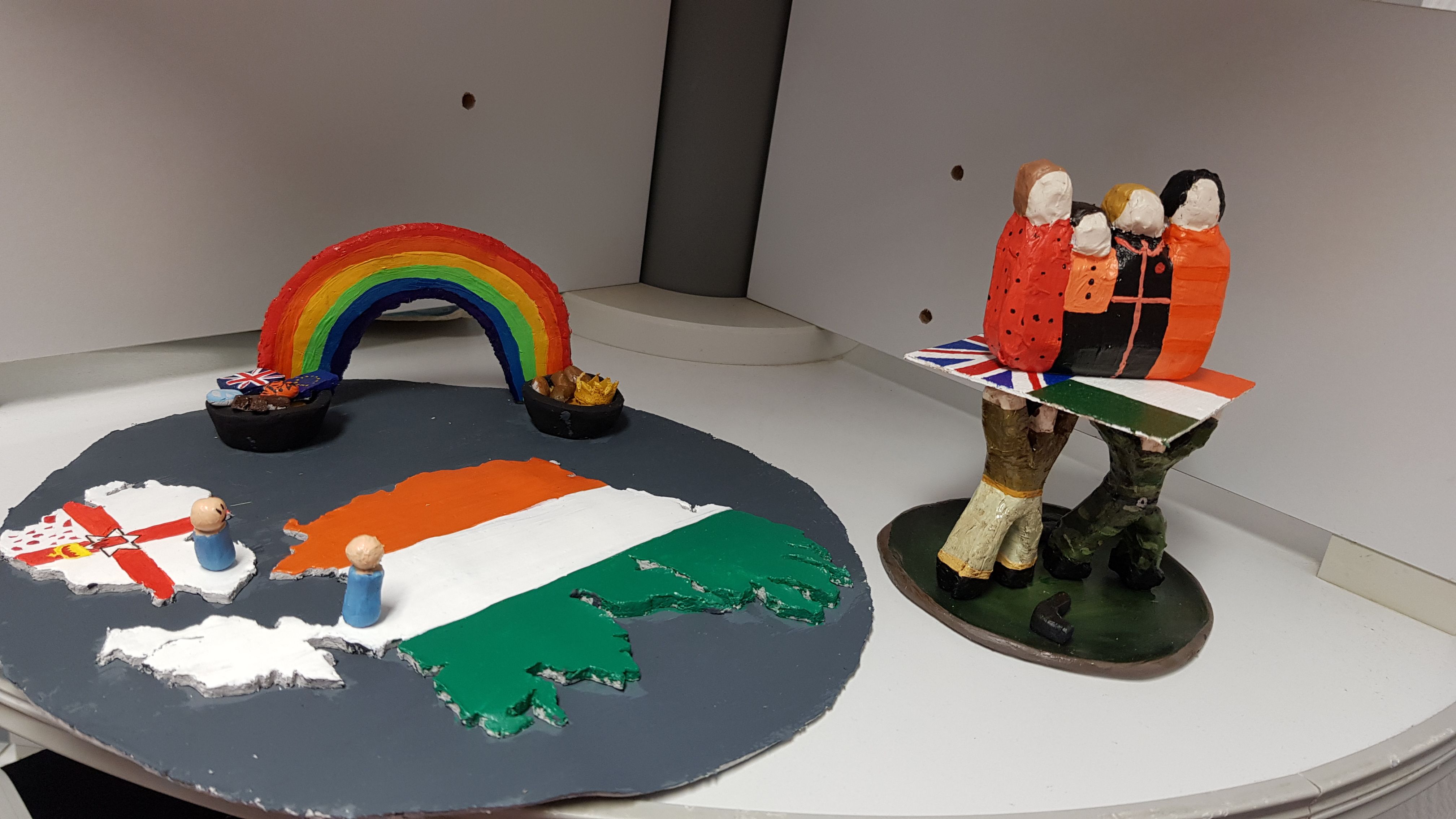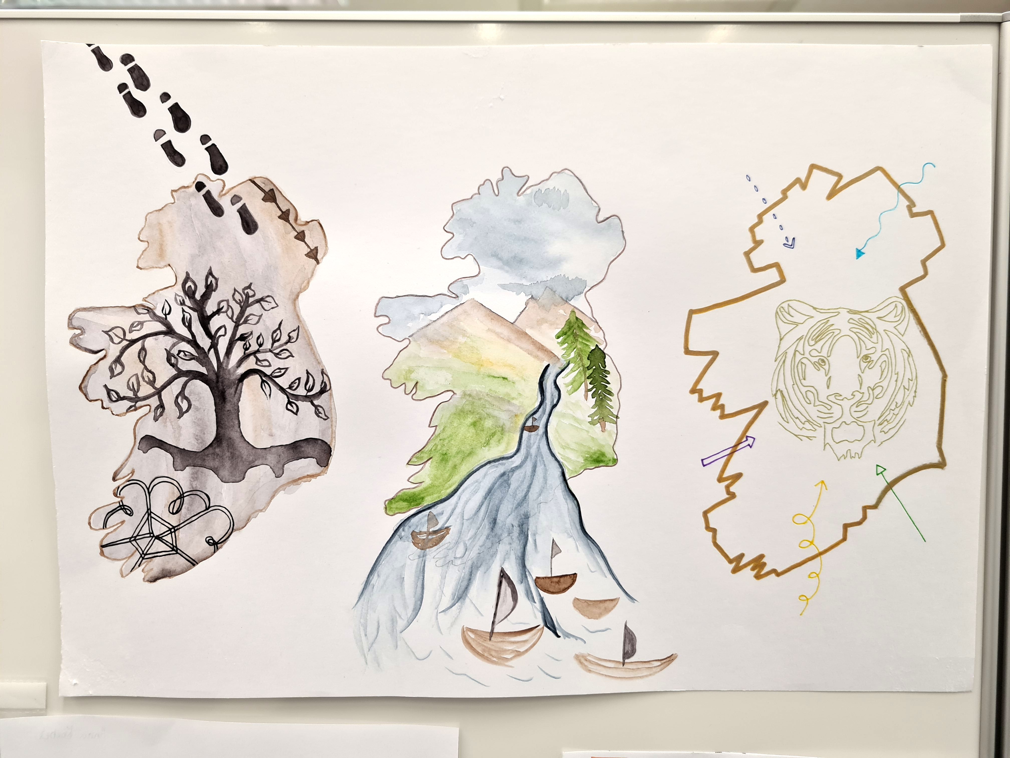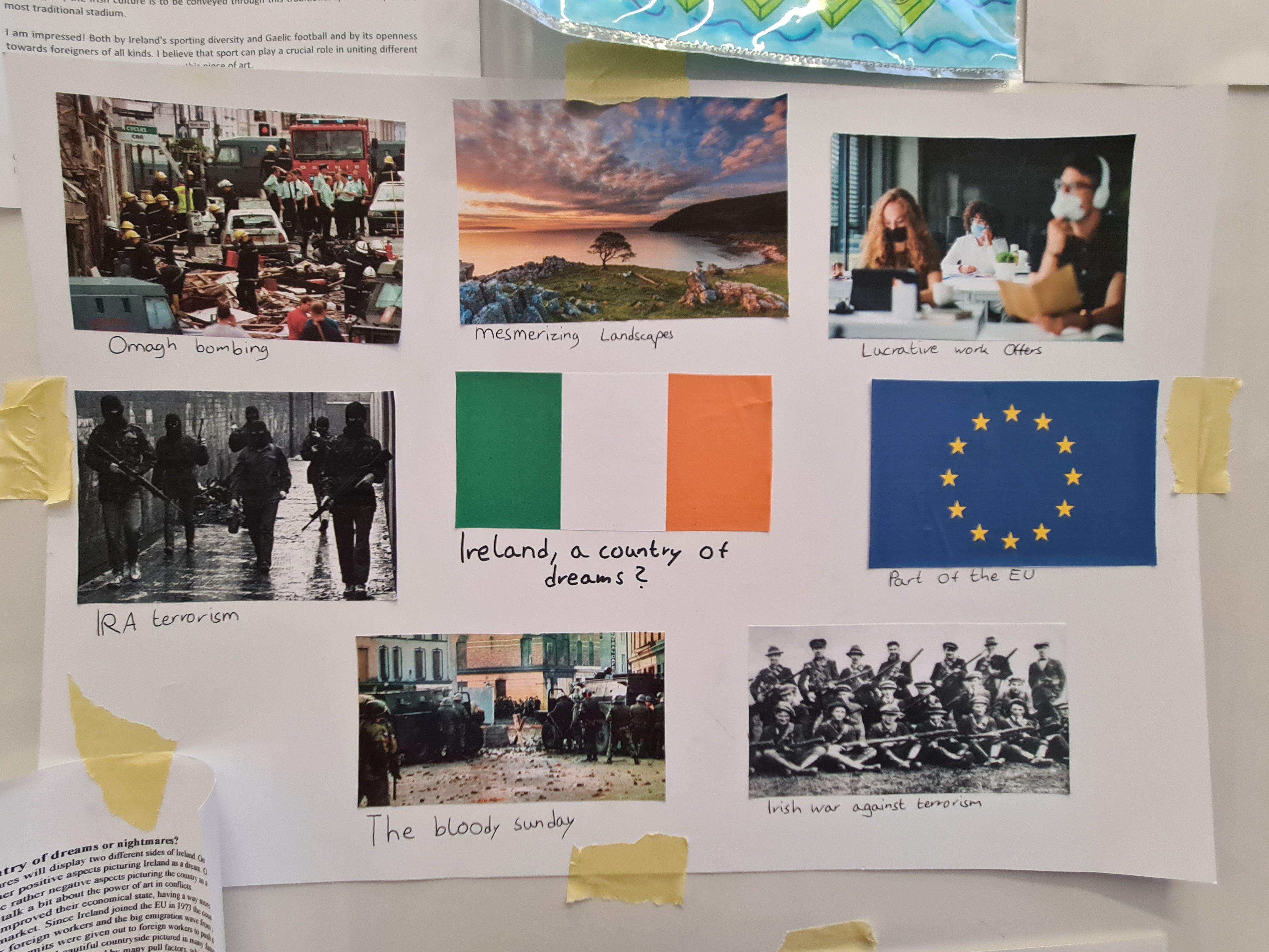 Die Schülerinnen und Schüler der Englisch-Leistungskurse von Ulrike Stahl-Matena und Claudia Scharf erstellten im Rahmen einer mehrwöchigen Projektarbeit zum Thema „Ireland“ facettenreiche künstlerische Exponate, die sich mit unterschiedlichen Aspekten dieses Landes auseinandersetzen.