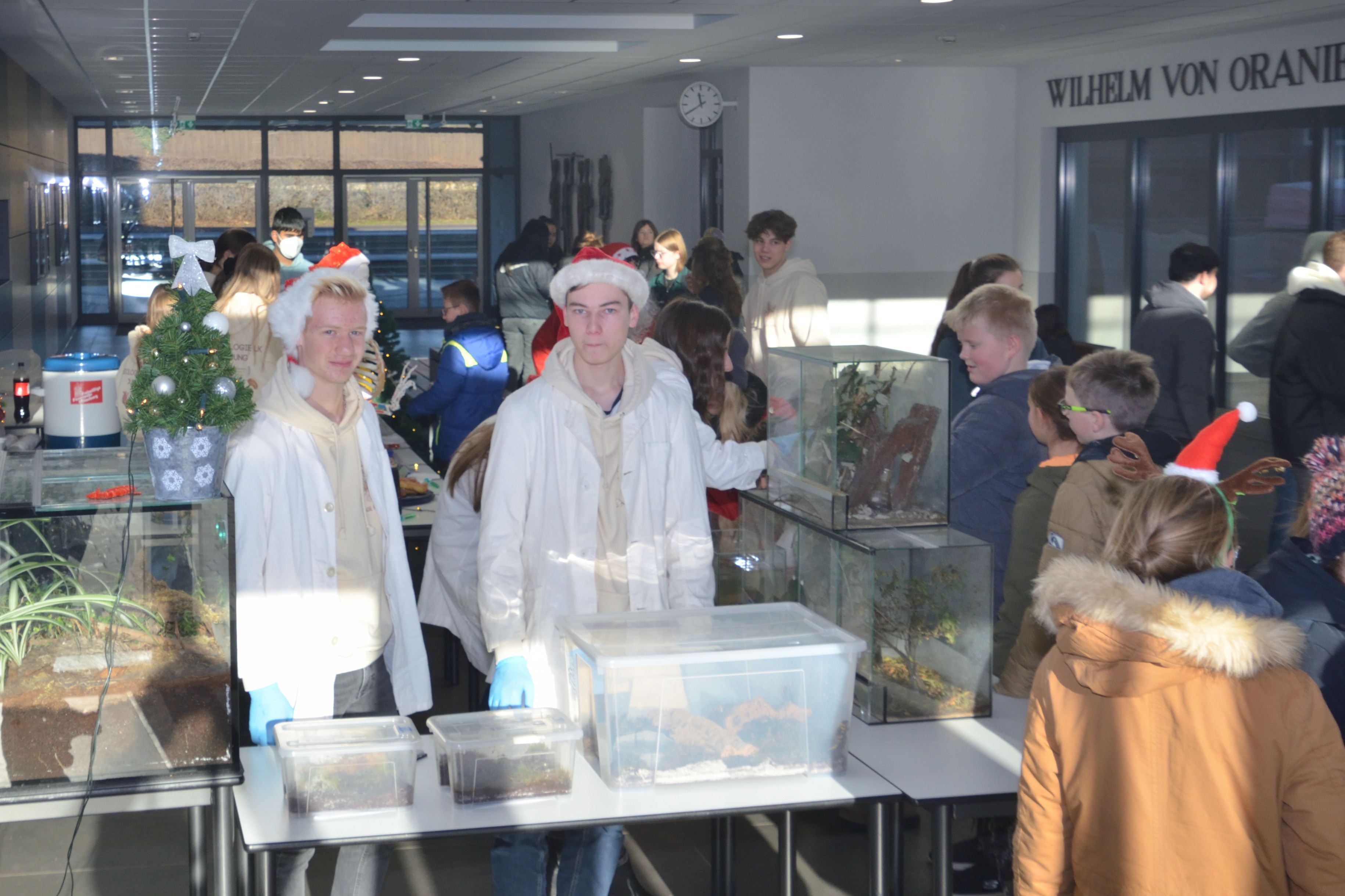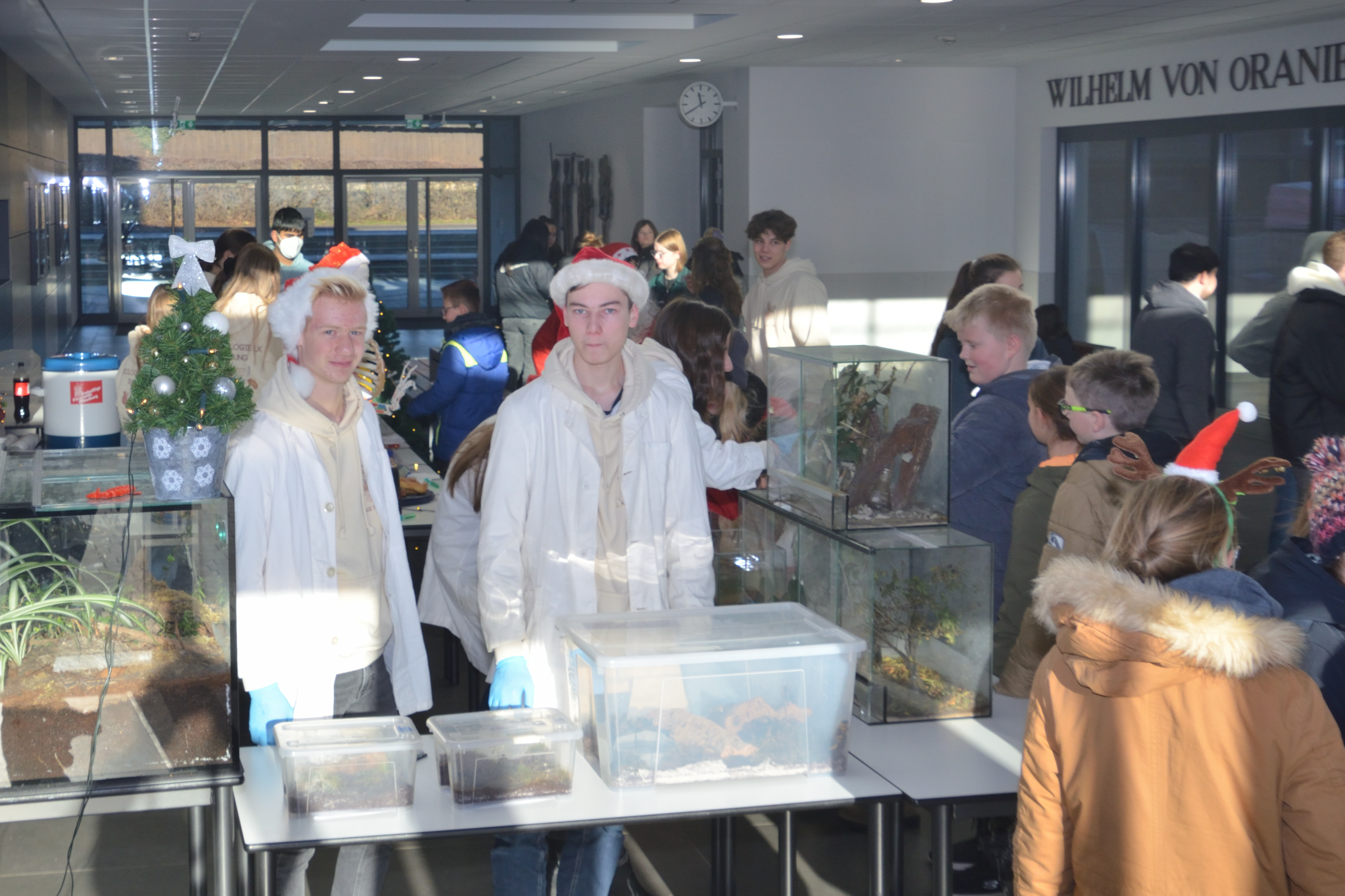 Dank eines großen Angebots an selbstgemachten Geschenkideen, Leckereien und Mitmachangeboten herrschte am Freitag, dem 16. Dezember 2022, eine weihnachtliche Stimmung an der Wilhelm-von-Oranien-Schule in Dillenburg. Jedes Jahr organisiert die Schülervertretung den Weihnachtsbasar, bei dem ein Teil des Gesamterlöses an gemeinnützige Organisationen gespendet wird. Da allerdings der Weihnachtsbasar aufgrund der Pandemie in den letzten beiden Jahren nicht im klassischen Sinn stattfinden konnte, bot die Schülervertretung in diesem Jahr alternativ den „Weihnachtszauber“ an, um die Gemeinschaft an der Schule in weihnachtlichem Ambiente zu stärken.