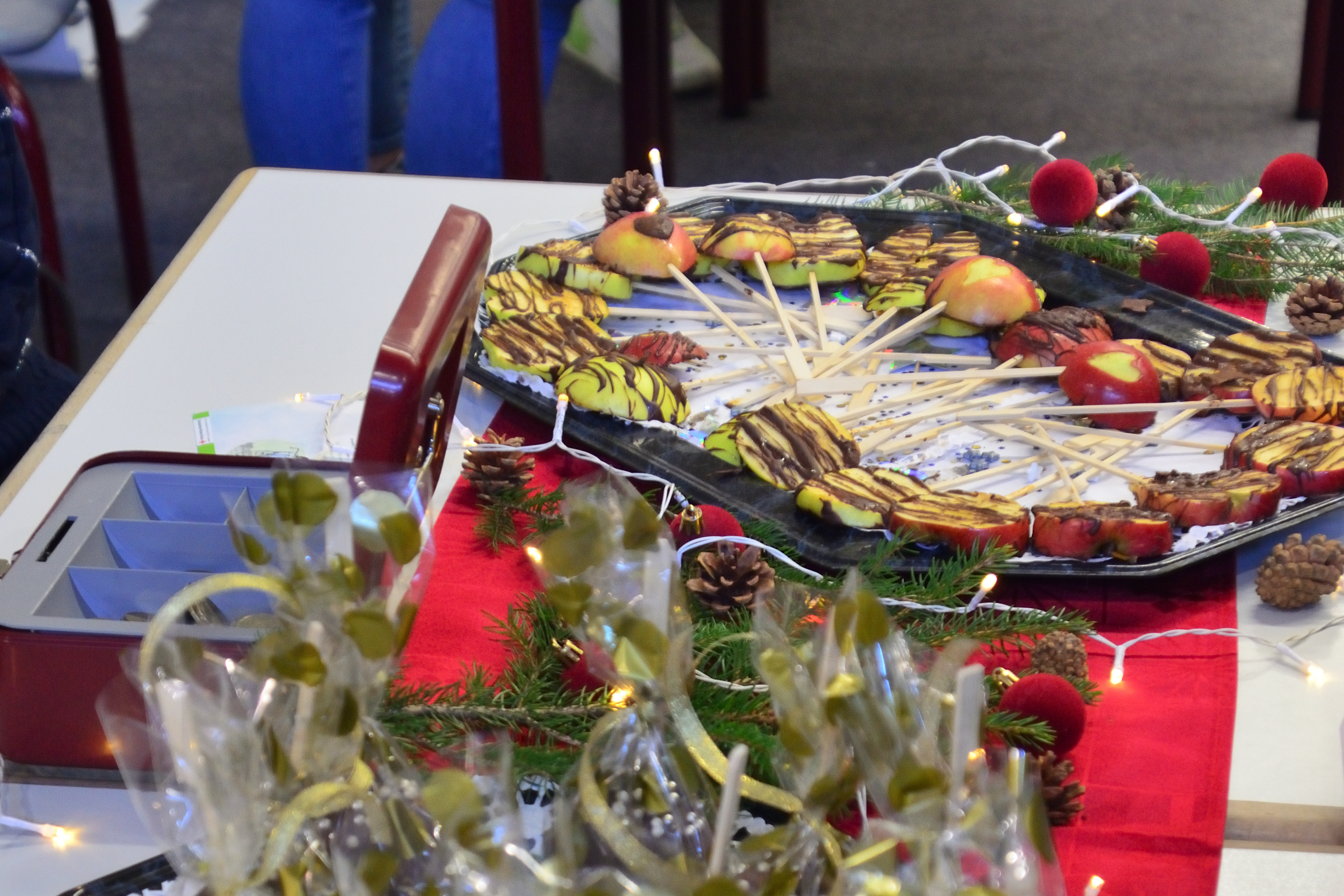 Die Veranstaltung begann mit der Vorführung des Weihnachtstanzes der fünften Klassen auf dem Schulhof. Die Schülerinnen und Schüler der fünften und sechsten Klassen nahmen anschließend am Dekorationswettbewerb teil, für welchen sie ihre Klassenzimmer in eine herrliche Weihnachtslandschaft verwandelt hatten. Als Belohnung gab es für alle etwas zu gewinnen und die Sieger der jeweiligen Jahrgangsstufen konnten sich lautstark über mehrere Bleche Familienpizza für die Klasse freuen.