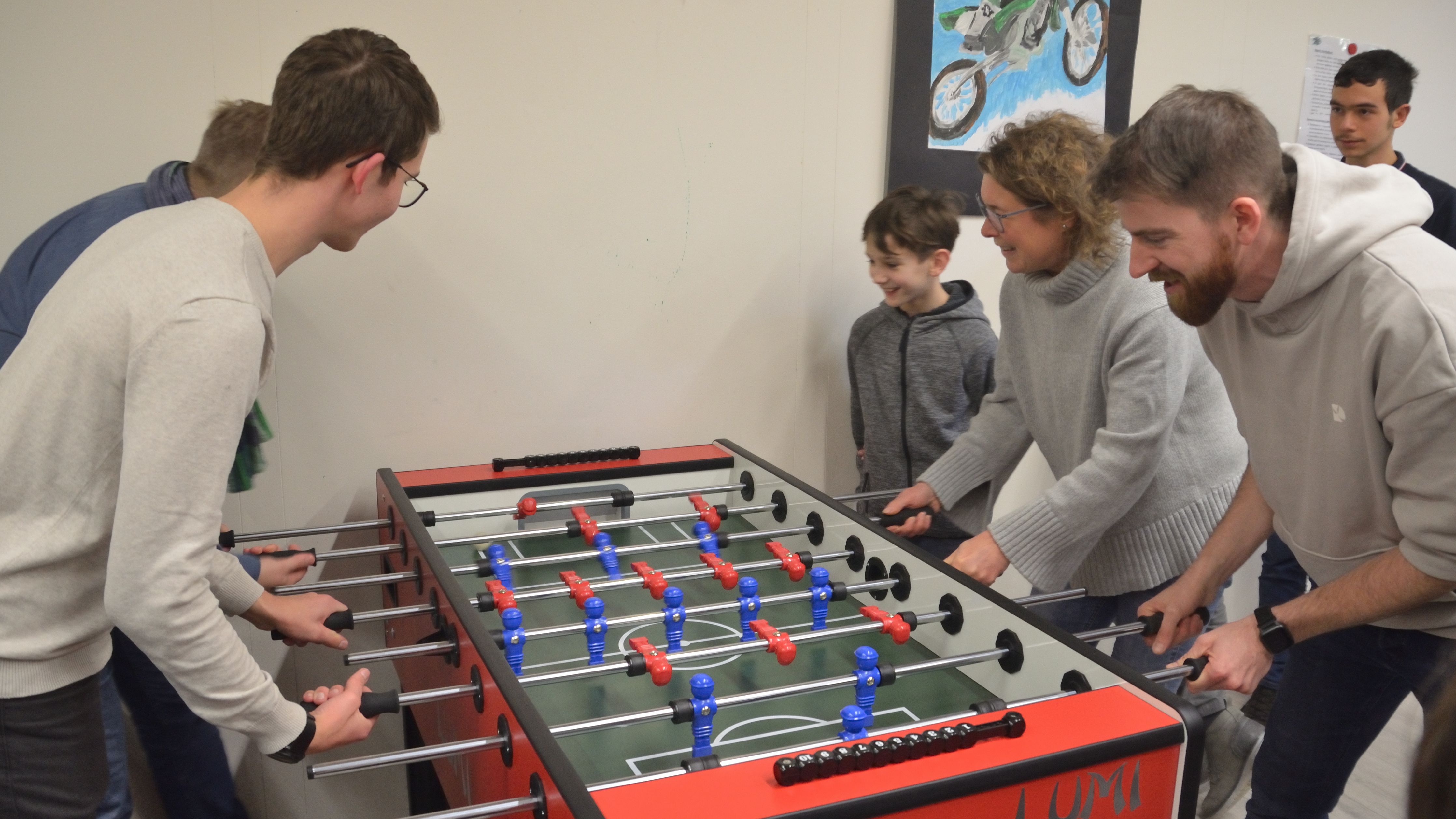 Außerdem wurde ein Weihnachtsgeschenk des Schulelternbeirates überreicht; aus Mitteln der Elternspende stiftete dieser der Schülerschaft einen neuen Tischkicker, welcher am „Weihnachtszauber“ durch die Vorsitzende des Schulelternbeirats Sandra Freischlad feierlich eingeweiht und danach durch ein spannendes Spiel zwischen dem Schulleiter, Frau Freischlad, dem Sozialpädagogen und dem Schulsprecher eröffnet wurde.