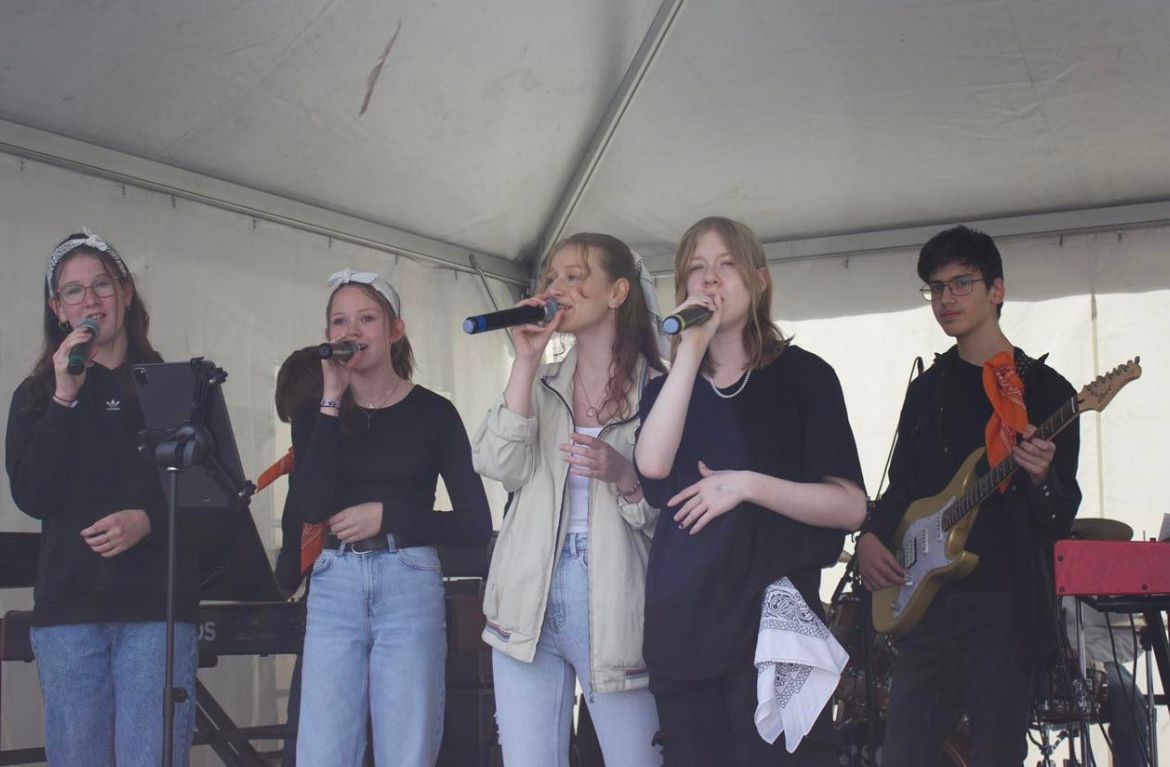 Nach einer kurzen Zusammenkunft und einer Ansprache durch die Lehrer („Das Wichtigste ist, dass ihr Spaß habt!“) ging es pünktlich um 11:30 Uhr auf die Bühne.