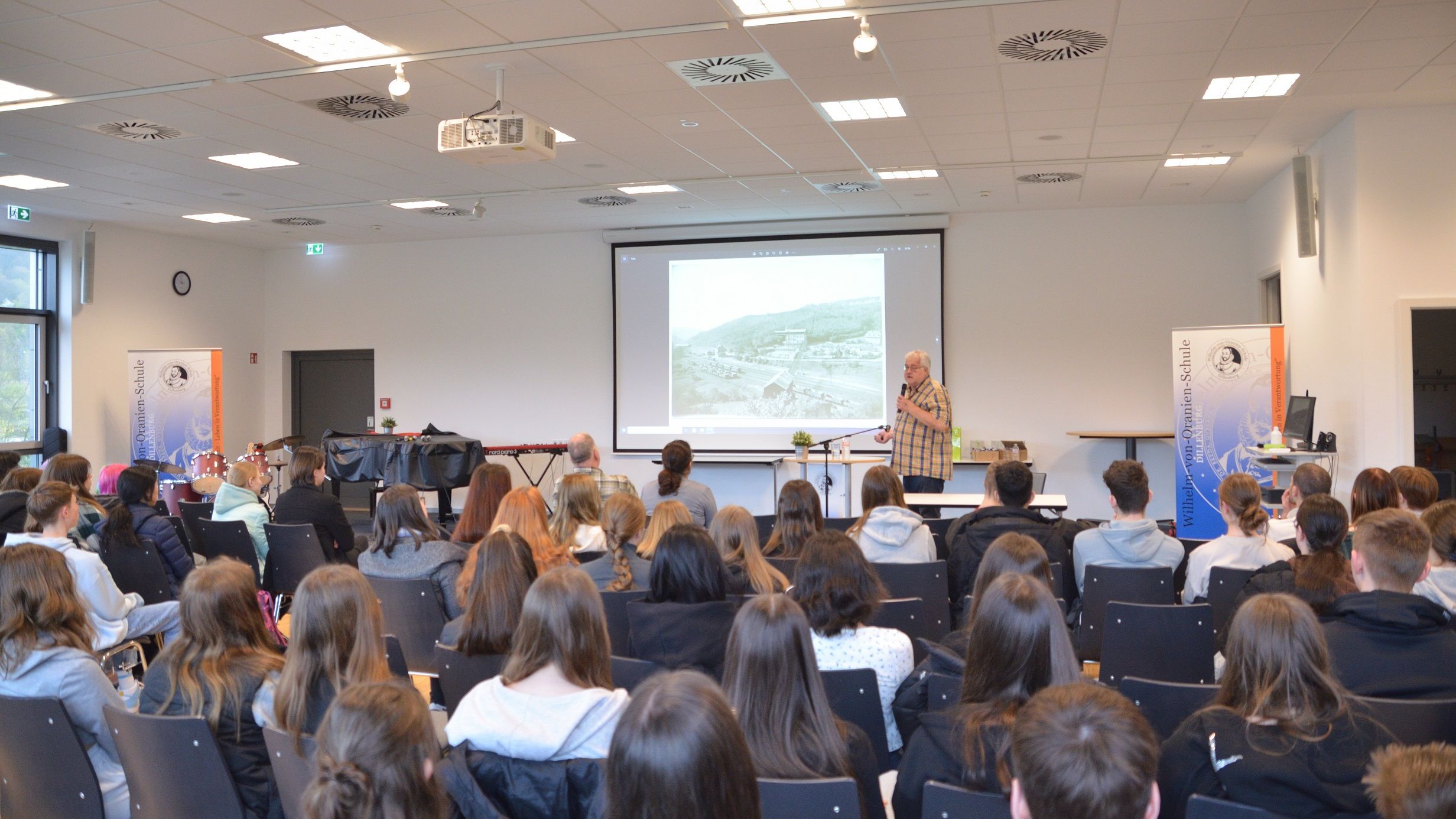 <p><strong><em>Mit „Glück auf“ begrüßte Ulrich Horch, Lokalhistoriker aus Nanzenbach und pensionierter Lehrer, den Jahrgang 9 der Wilhelm-von-Oranien-Schule zu seinem Vortrag über den Bergbau im Schelderwald. Es folgte eine fotografische Zeitreise durch die Geschichte des heimischen Bergbaus anhand zahlreicher Bilder, die heute stillgelegte Minen, Hochöfen und andere Spuren dieses einst so zentralen Industriezweigs unserer Region zeigten. </em></strong></p>