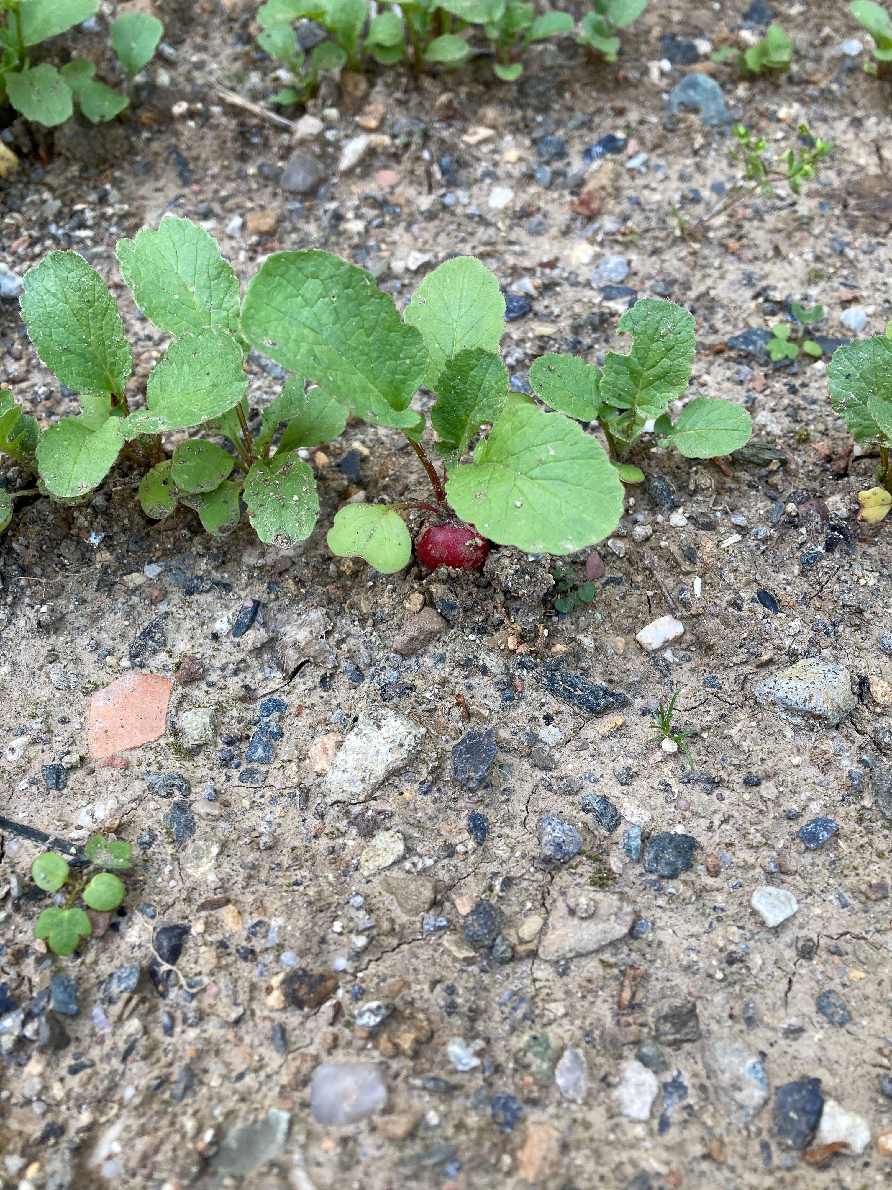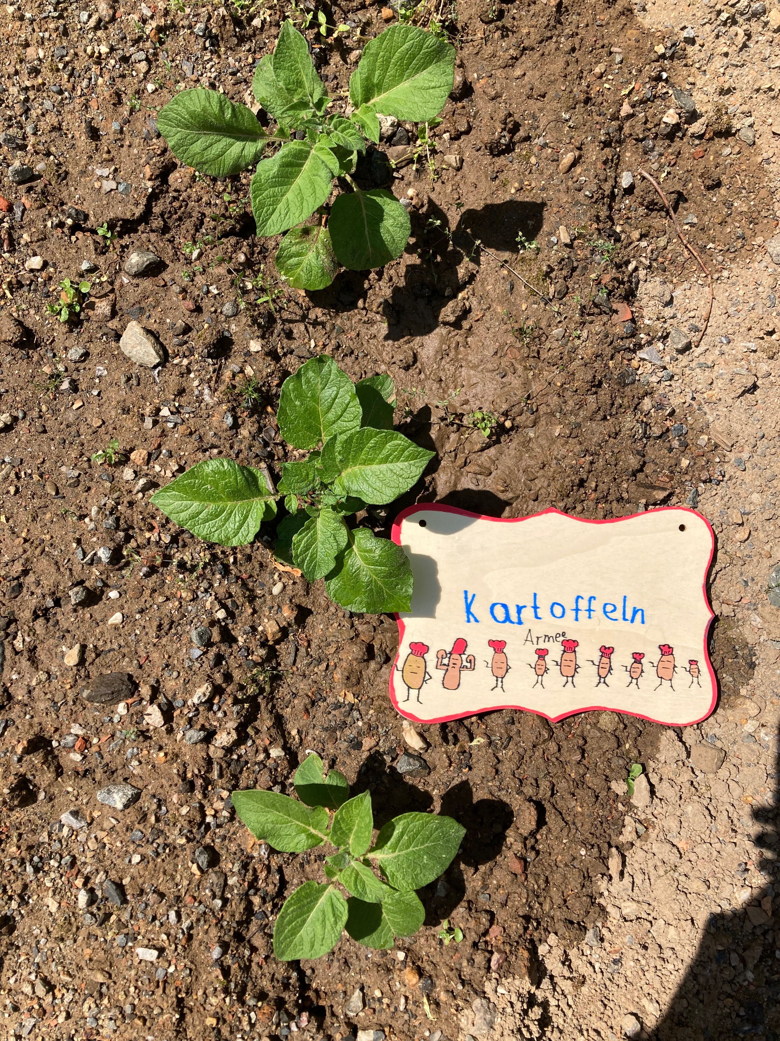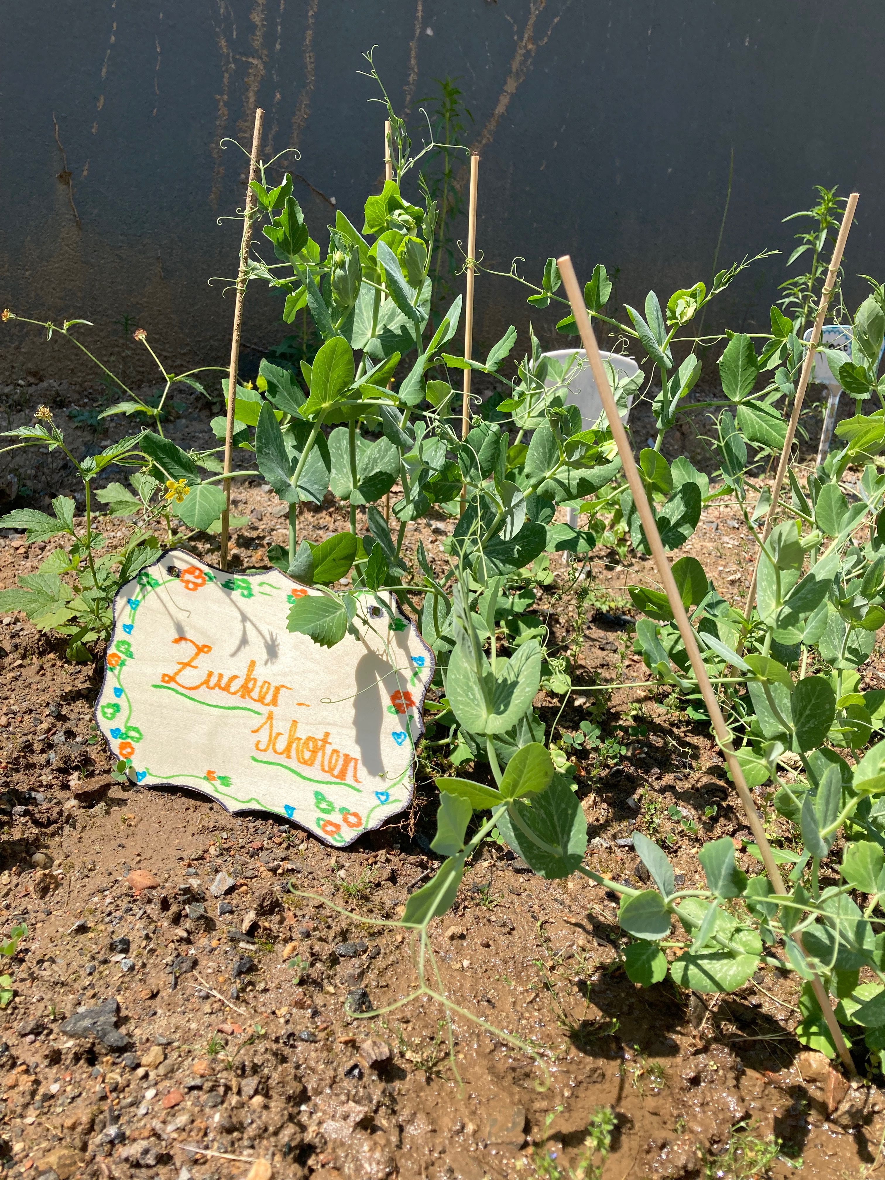 Am 30. März 2023 fand ein Projekttag der Klasse 7E zum Thema „Schulgarten“ statt. Die Klasse hat an diesem Tag hinter dem Naturwissenschaftsgebäude der Schule das Schulbeet bepflanzt. Es wurden Kartoffeln, Möhren, Radieschen, Rote Bete, Rucola, Schnittlauch, Spinat, Zuckerschoten und Zwiebeln angepflanzt. Zuerst wurde die Fläche vorbereitet, indem Unkraut entfernt und die Erde aufgelockert wurde. Anschließend wurde ausgesät. In der 3. und 4. Stunde hat die Klasse Schilder für die einzelnen Pflanzen gestaltet und in den letzten beiden Stunden wurden Plakate zu den verschiedenen Pflanzen angefertigt und den Mitschülerinnen und Mitschülern vorgestellt. Alle hatten den ganzen Tag viel Spaß bei der Arbeit an dem Beet und haben viel dazugelernt. Die Klasse wurde unterstützt von Frau Wilmen, Frau Schwarz, Frau Schneider und Frau Fritsch. Einige der Pflanzen sind in den letzten Wochen bereits gut gewachsen. Vor allem die Zwiebeln, die Kartoffeln, die Radieschen und die Zuckerschoten wachsen besonders gut. Es konnten auch bereits einige Radieschen geerntet werden. Auch die Zuckerschoten, die Kartoffeln und die Zwiebeln können bald geerntet werden.