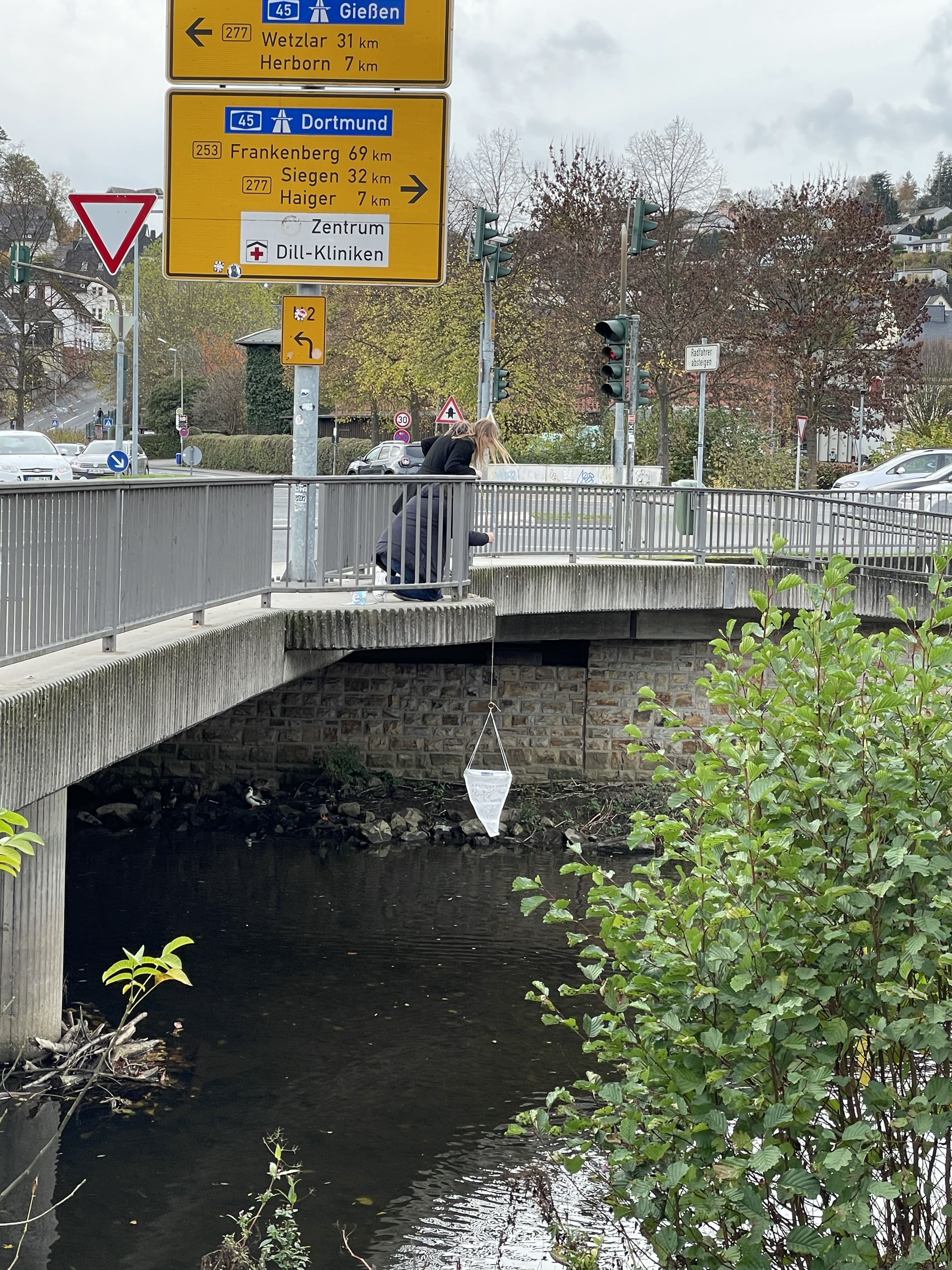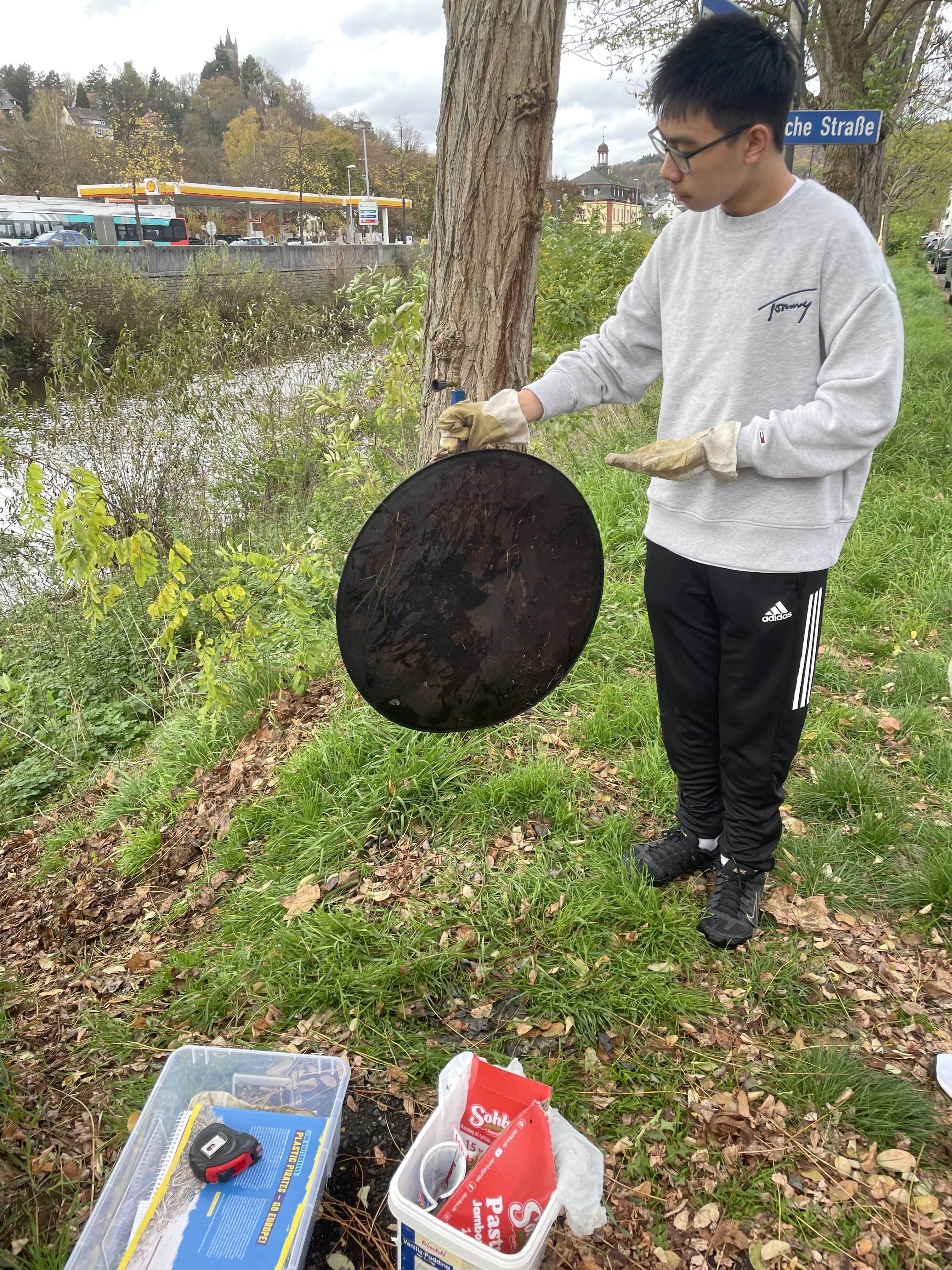 Im Zeitraum von September bis November haben die Schülerinnen/Schüler des Wahlunterrichts die Dill entlang der Uferstraße sowie auf der Seite der Gewerblichen Schulen auf Müll- und Plastikansammlungen untersucht. Neben Glasflaschen, Zigarettenstummeln und den Verpackungen von Lebensmitteln wurden aber auch skurrile Dinge, wie Gaskocher, Klappstühle, gefunden. Mit Hilfe eines speziellen Fangnetzes wurde auch direkt in der Dill nach Mikroplastik gefischt. Besonders erschreckend konnte festgestellt werden, dass überwiegend die vorhandenen Mülleimer ignoriert und der Müll einfach im Uferbereich entsorgt wird. Diese Müllaufkommen wurden sorgfältig dokumentiert und im Unterricht ausgewertet. Dabei konnte man Antworten zu verschiedenen Fragen finden: Wie viel und welcher (Plastik-)Müll lässt sich finden? Wo genau sammelt sich besonders viel Müll? Wie sieht die Infrastruktur des untersuchten Abschnittes aus? Und welche Rolle spielen Fließgeschwindigkeit und Wassertiefe dabei? Die detaillierten Ergebnisse kann man im Internet unter „wissenschaftsjahr.de“ einsehen (Link siehe unten).