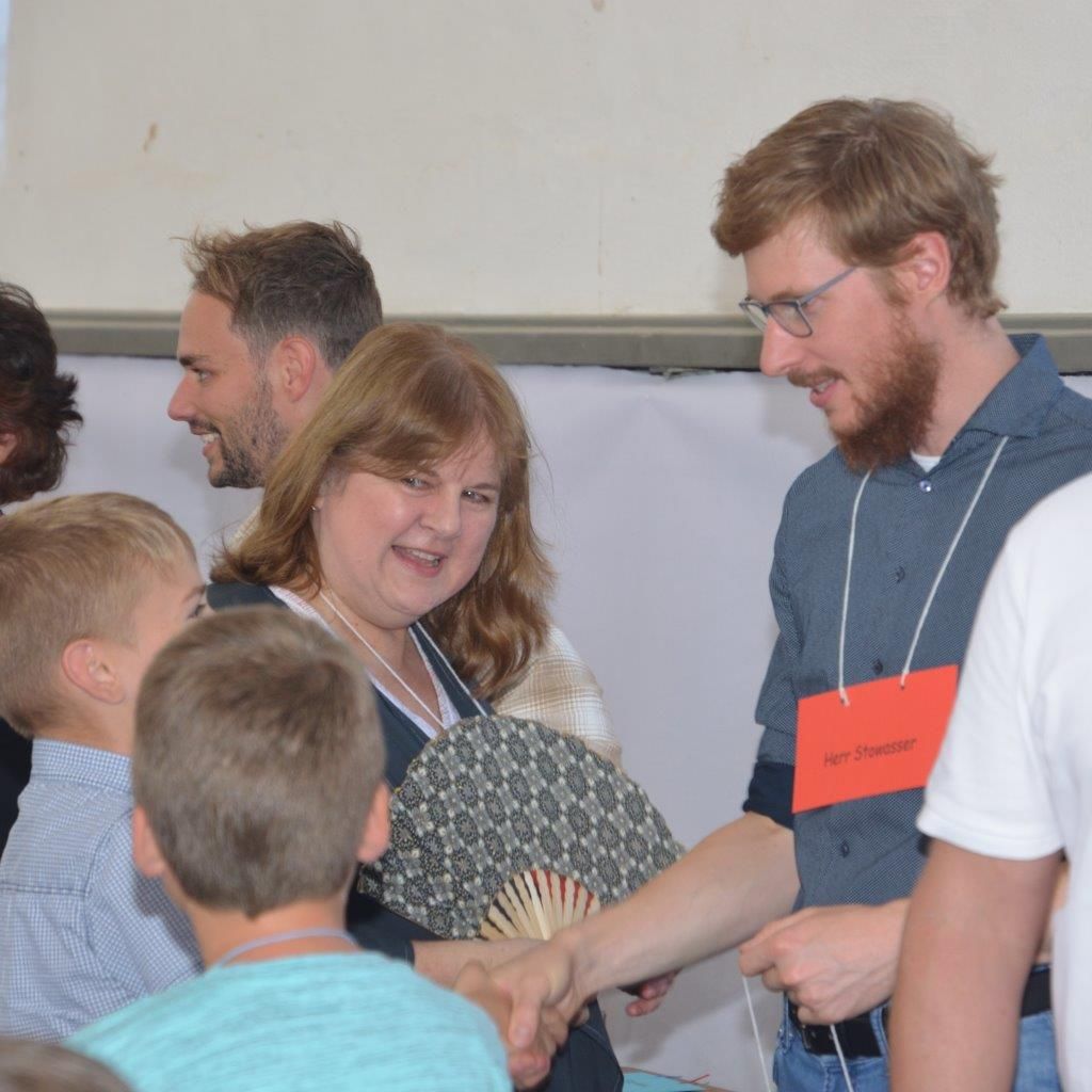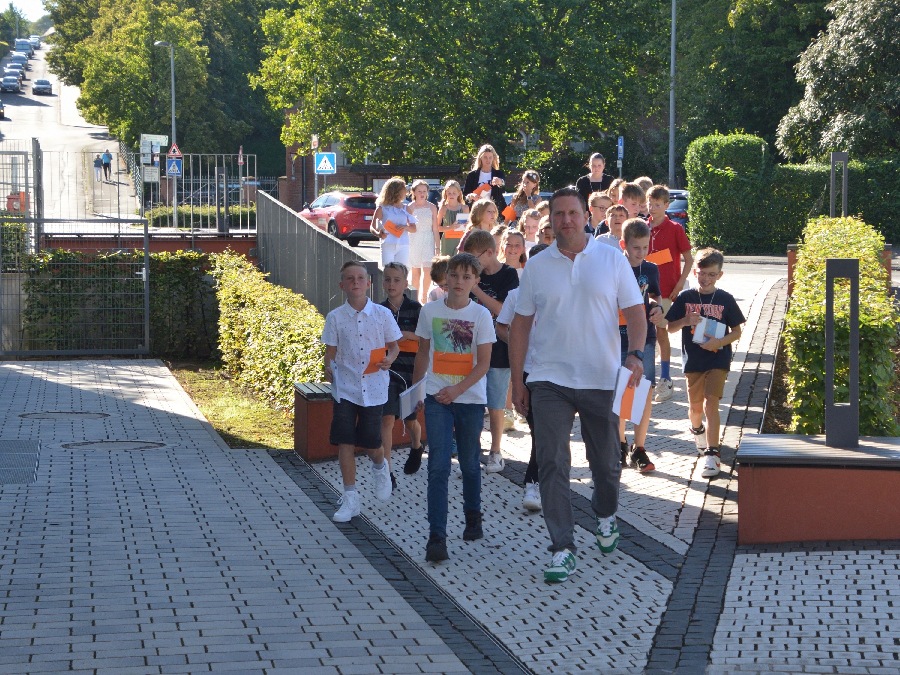Im Anschluss durften dann die Mädchen und Jungen gemeinsam mit ihrem neuen Klassenleitungsteam hinüber ins Hofgebäude in den neuen Klassenraum gehen, um sich kennenzulernen und erste Informationen für die nun folgenden Einführungstage zu erhalten. Die Spannung war aber dieses Mal vielleicht nicht ganz so groß wie bei den Einschulungsfeiern der Vorjahre, da die Klasseneinteilung dieses Jahr erstmals bereits in den Ferien per Briefpost mitgeteilt worden war.