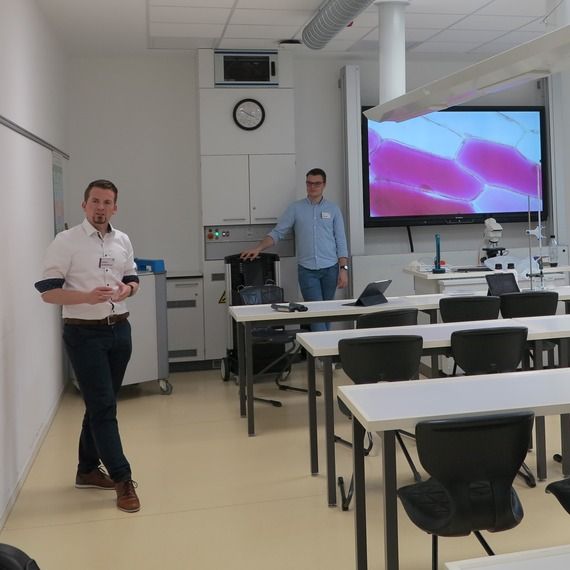 Einen Einblick in die Welt des digitalen Lernens gewährten Simon Grebeldinger und Tim Rußmann im NaWi-Trakt der Schule. Auch die Kooperationspartner der Schule – Musikschule und VHS, HessenForst oder Naturlandstiftung, Gedenkstätten und GeoPark u.a. – präsentierten sich den Besuchern auf einem Rundgang durch die Schule, nachdem man sich einen Einführungsvortrag von Schulleiter Martin Hinterlang angehört hatte.