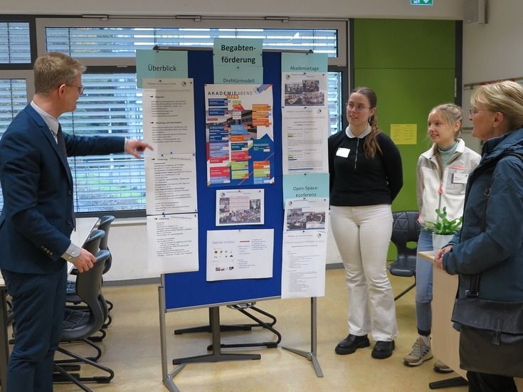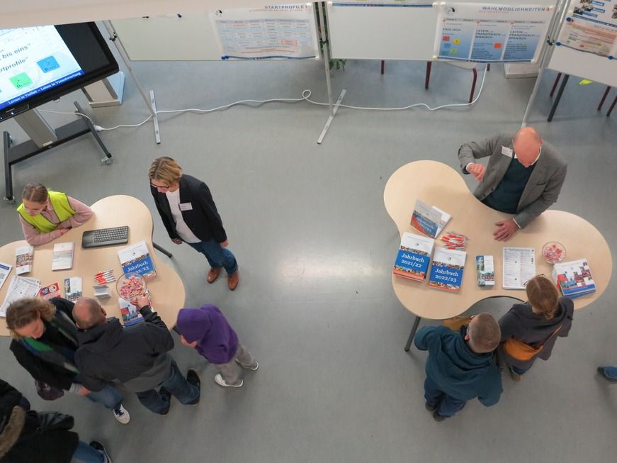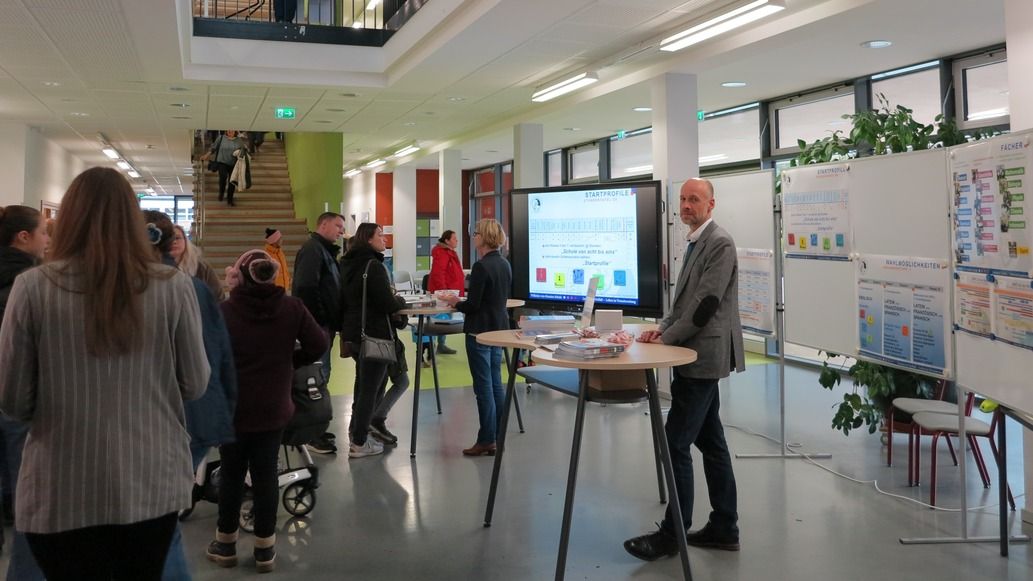 Abgesehen von den Startprofilen konnten die Gäste in verschiedene Hauptfächer (Latein, Französisch, Spanisch, Mathematik) hineinschnuppern sowie sportliche Highlights wie die „Bikeschool“ oder die Kooperation mit dem Landgestüt in Augenschein nehmen. Bei den Eltern stießen insbesondere Unterstützungsangebote wie das „Backstage“ mit Sozialpädagoge Dominik Schnurr und Beratungslehrerin Jördis Herr, die Schulkrankenschwester Maren Eberbach oder die Anti-Cybermobbing-Beauftragte Ines Liebnitz auf Interesse.