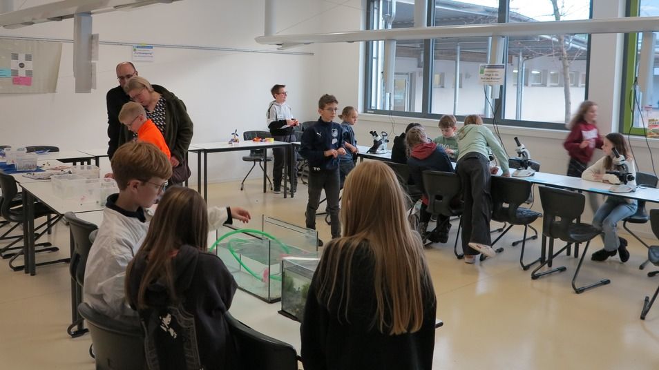 Markus Hoffmann als Beauftragter für die Öffentlichkeitsarbeit zeigte sich zufrieden mit dem Publikumsinteresse: „Wir waren gespannt, welche Auswirkungen der vorgezogene Termin auf den Besucherandrang haben würde. Das Staatlichen Schulamt hat alle Schulen angewiesen, die Informationsveranstaltungen für den Schulwechsel bereits vor den Weihnachtsferien durchzuführen; daher der frühe Termin. Es waren vielleicht etwas weniger Gäste da als letztes Mal, aber vielleicht hängt das auch damit zusammen, dass die Schullaufbahnberatung in den Grundschulen erst noch bevorsteht. Wir hatten den Eindruck, dass die Gäste reges Interesse gezeigt und viele konkrete Fragen gestellt haben. Außerdem ist uns aufgefallen, dass viele Interessenten von den Rändern unseres schulischen Einzugsgebietes da waren, also solche, die ggf. auch andere Schuloptionen zur Verfügung haben.“