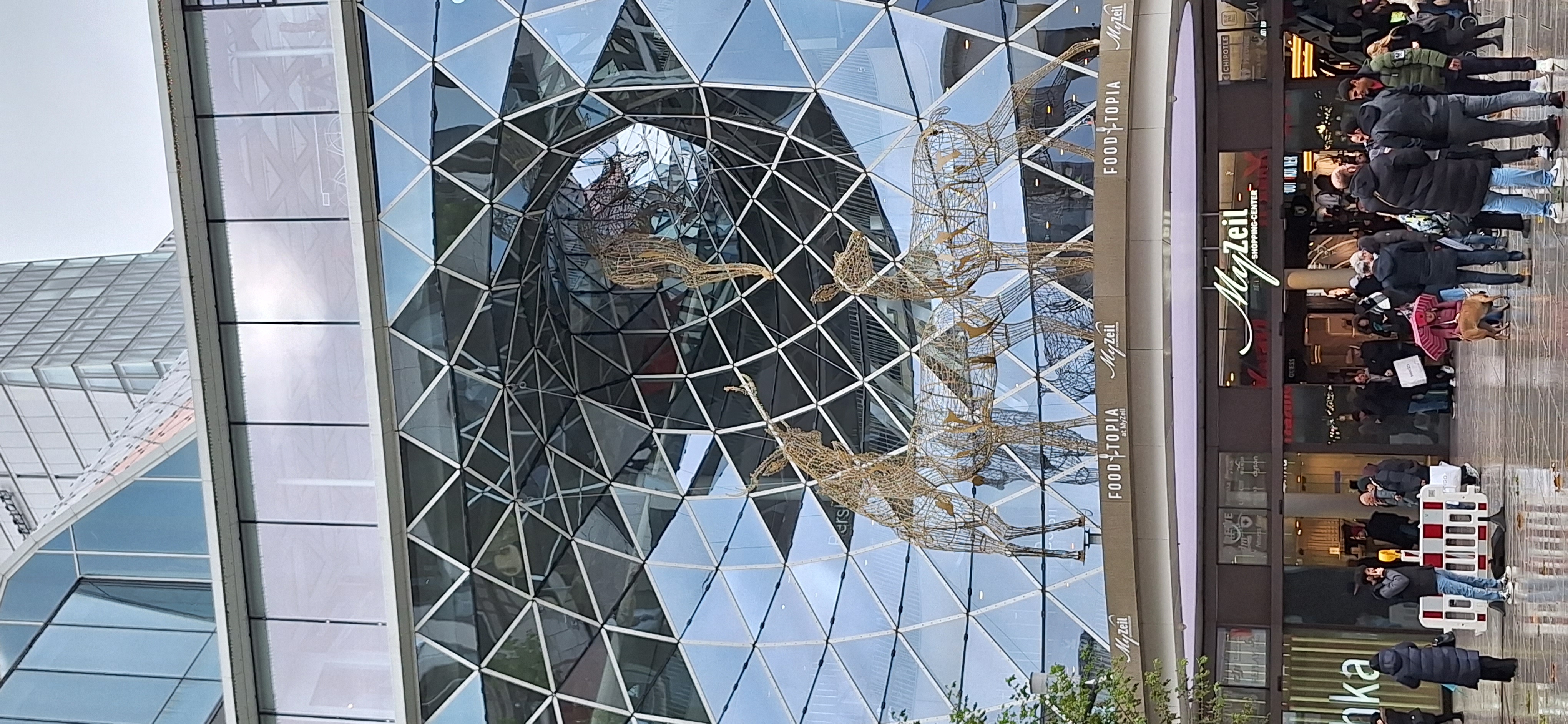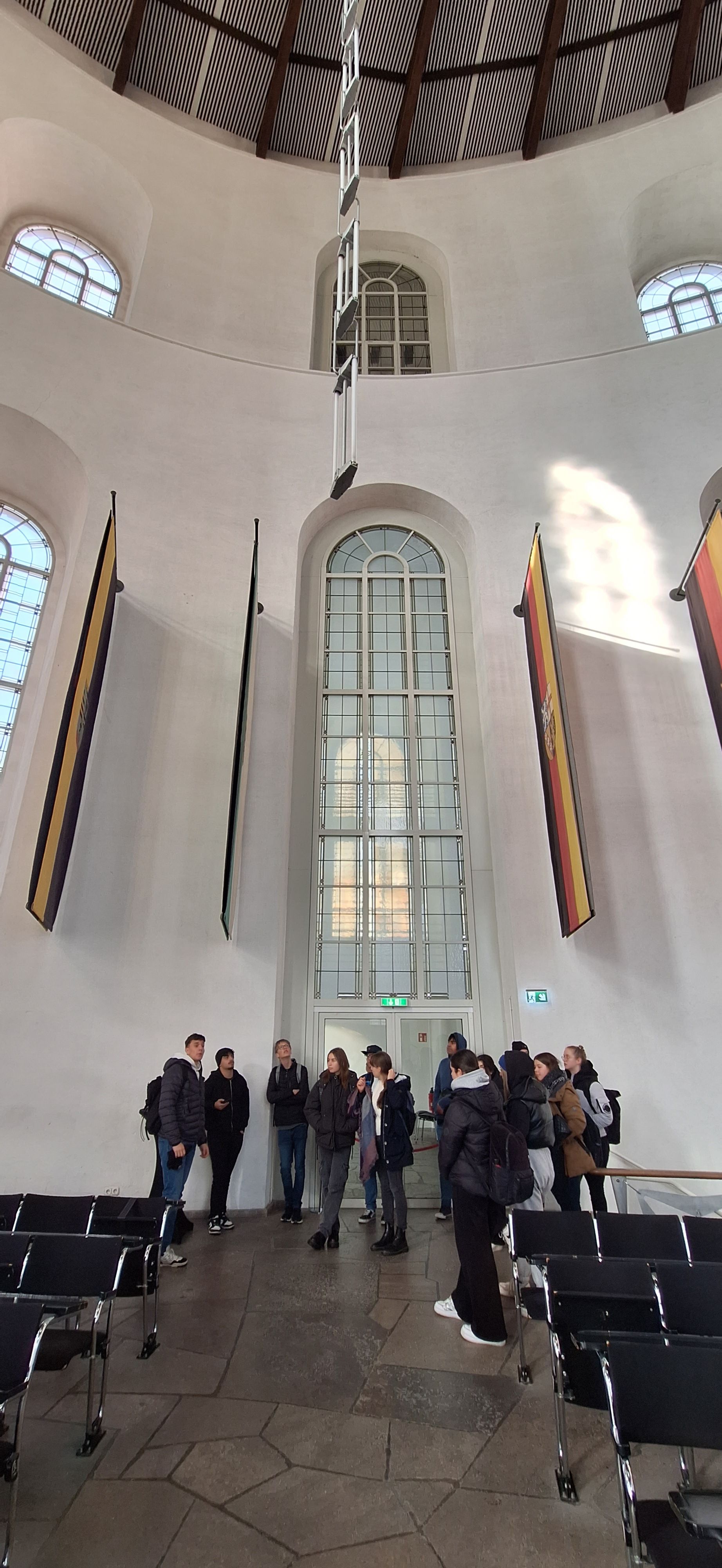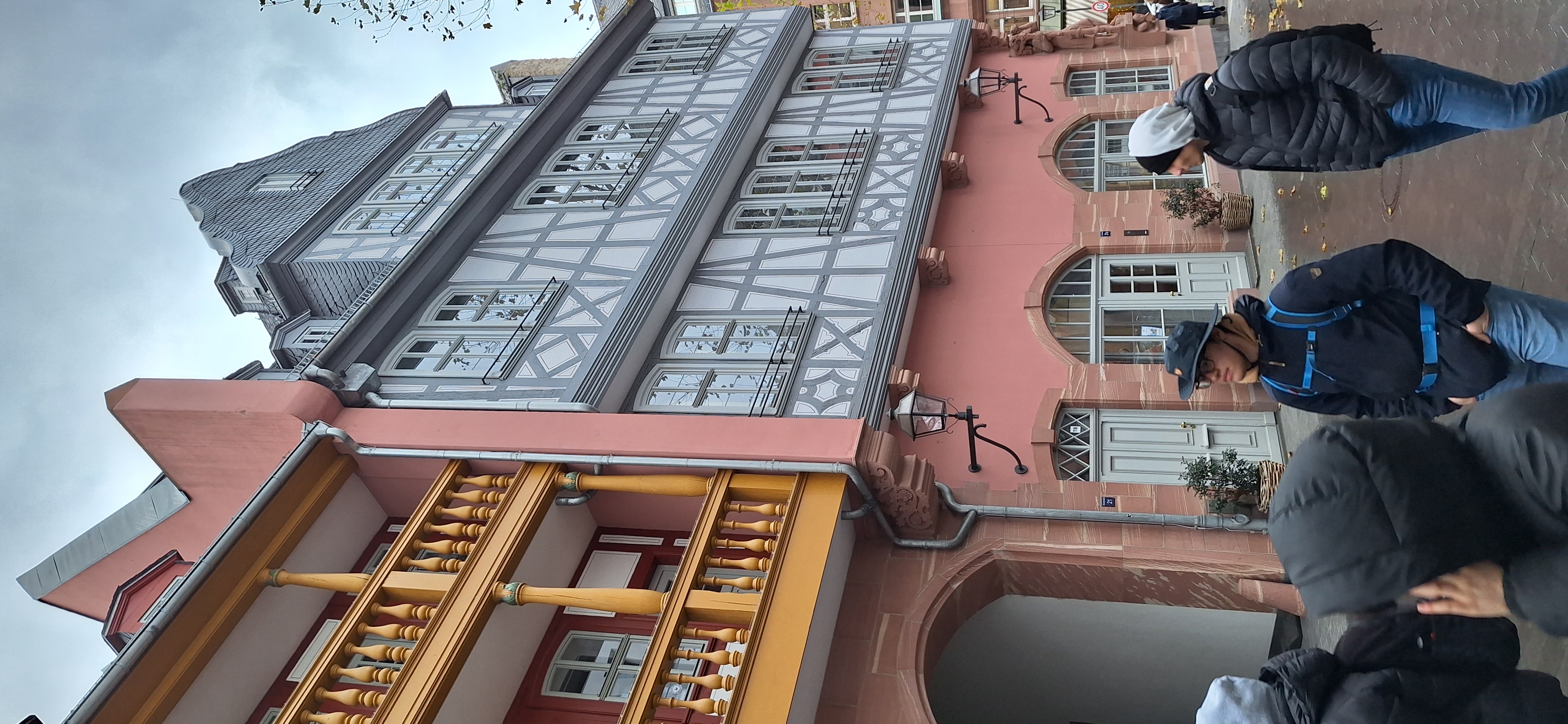 Am Freitag, den 24.11.2023 führten die beiden Q3-Kunstkurse von Moon Lindemann und Sascha Schulze eine Exkursion nach Frankfurt mit einem Architekturrundgang durch. Ziel war es, eine „Reise durch die Architekturgeschichte“ zu machen, die in Frankfurt besonders eindrucksvoll erfahrbar wird. Die zu besichtigenden Bauten reichten von den Funden aus der Römerzeit (Kaiserpfalz) aus dem frühen 9. Jahrhundert bis zum neusten Bauprojekt „Four“ zwischen Gallus- und Junghofstraße, das voraussichtlich erst 2025 fertiggestellt werden soll.
