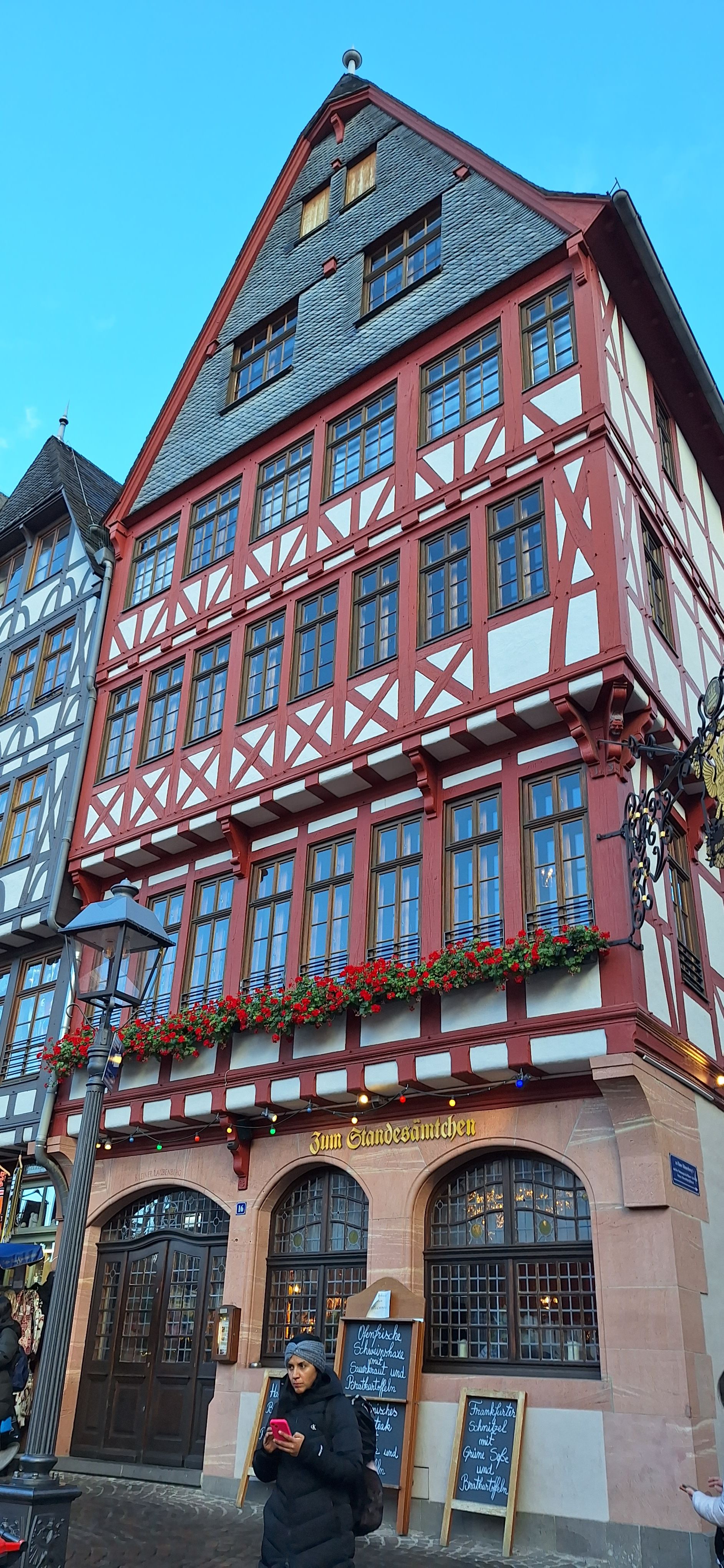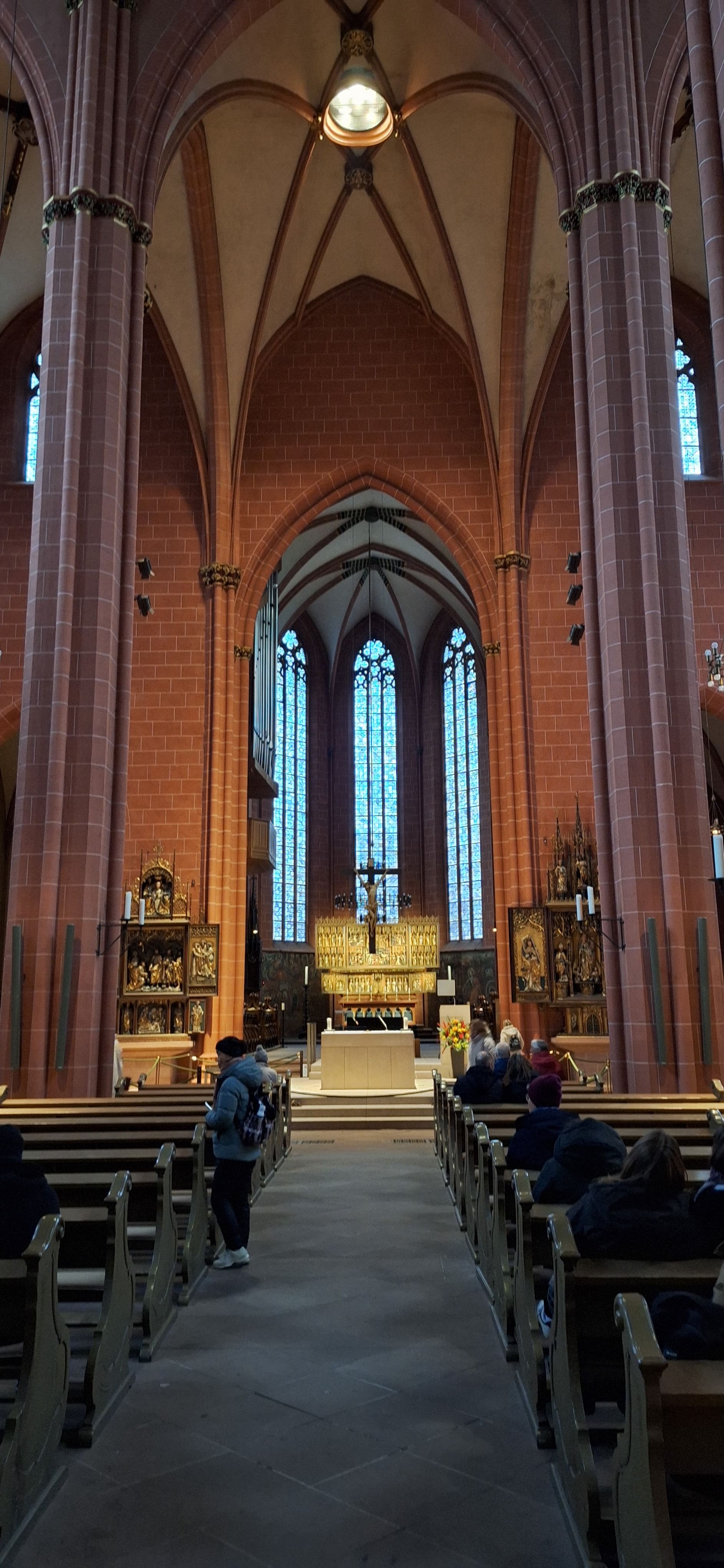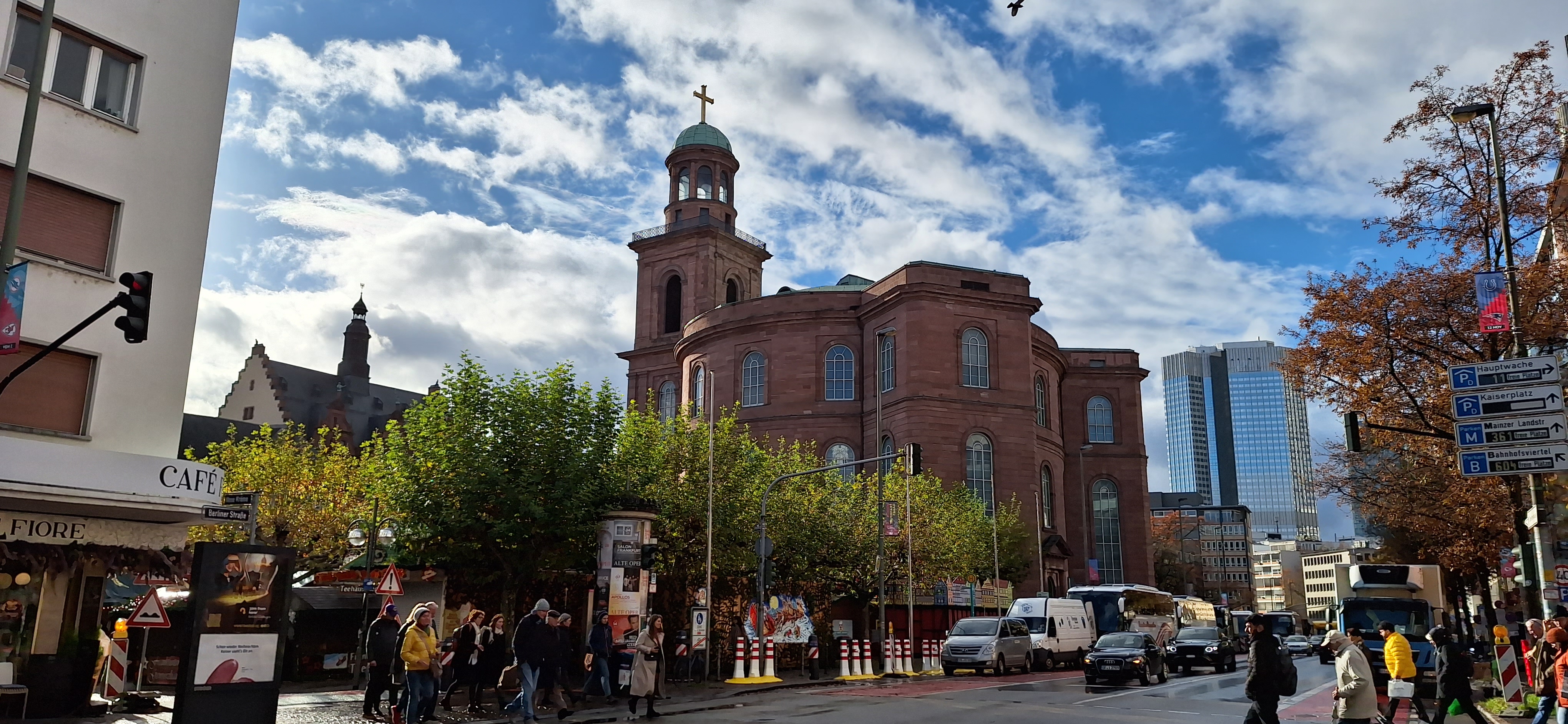 An 13 Stationen wurden mit kleinen Impulsvorträgen die jeweiligen Gebäude mit ihrer Entstehungszeit und ihren Stilmerkmalen bzw. Besonderheiten präsentiert. Zu den Highlights der Frankfurter Architektur gehören z.B. der Kaiserdom St. Bartholomäus, der im Laufe der Zeit immer wieder erweitert und neu ausgebaut wurde und in dem die Kaiser gekrönt wurden, der Hauptbahnhof, der sich bei der Einweihung 1888 noch außerhalb der Stadt befand, die Kaiserstraße mit ihren prachtvollen Gebäuden aus der Gründerzeit, die Alte Oper, die Paulskirche, in der 1848 die erste Nationalversammlung tagte, die immer wieder beeindruckende Architektur des Einkaufszentrums Myzeil, der Commerzbank-Tower mit seiner Grünanlage in den mittleren Stockwerken, das Museum für Moderne Kunst (MMK), das auch „Tortenstück“ genannt wird, und natürlich die neue Altstadt, die erst 2018 eröffnet wurde und neben reinen Neubauten auch komplette Rekonstruktionen vorzuweisen hat, die die Gebäude des alten Frankfurter Stadtkerns so zeigen, wie sie bis 1944 dort gestanden haben.