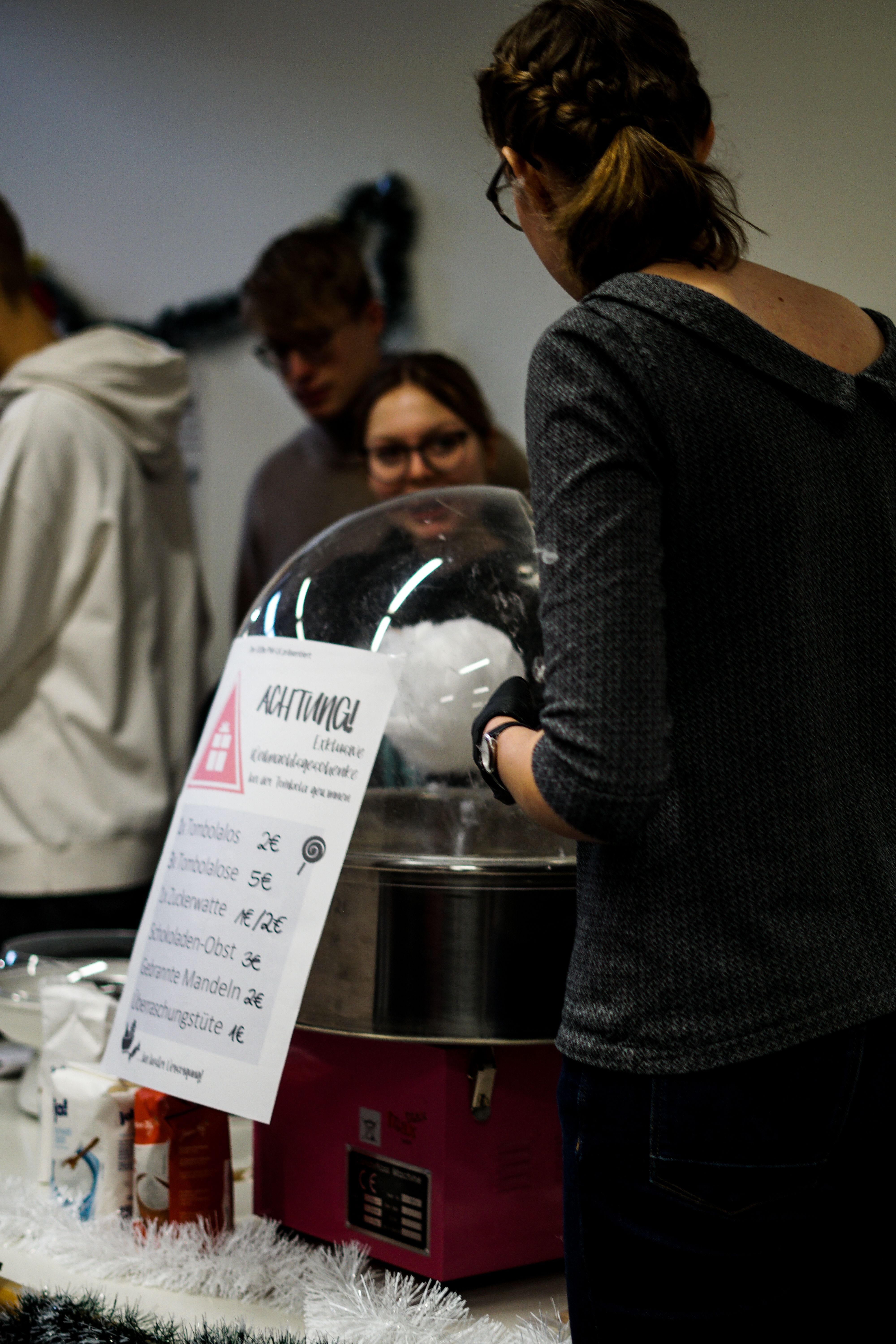 Das Weihnachtsfest der Schule besitzt Tradition und wurde jahrelang unter dem Namen “Weihnachtsbasar” durchgeführt, bei dem sich die Lehranstalt für die Eltern der Lernenden öffnete. Im letzten Jahr erfasste dieses Konzept dann eine Nachwirkung der Covid-19-Pandemie und die Schule blieb für externe Gäste geschlossen. Die Schülervertretung, Organisator der Aktion, zog einen Ausfall nicht in Betracht und es wurde kurzerhand improvisiert. Die nun zwangsläufig niedrigeren Besucherzahlen würden dazu führen, dass weniger Stände notwendig wären. Doch wer sollte dafür verantwortlich sein und wer nicht? Im Zug dieser Gedanken wurde die Gelegenheit ergriffen, die Struktur grundlegend zu verändern, indem die Qualifikationsphase nun die Hauptlast stemmte und alle anderen die Zeit selbst genießen konnten. Heraus kam eine Art Weihnachtsmarkt, bei dem die Schulgemeinde etwa zwei Schulstunden Zeit besaß, um Leckereien zu erwerben, Vorstellungen zu sehen oder an Spielen mitzuwirken. Die Reaktionen der Lehrerschaft sowie der Schülerschaft fielen, nicht zuletzt wegen des schulinternen Charakters, grundlegend äußerst positiv aus und unter diesem Eindruck zog auch in diesem Jahr wieder der Weihnachtszauber statt des Weihnachtsbasars in die Hallen der Schule ein.
