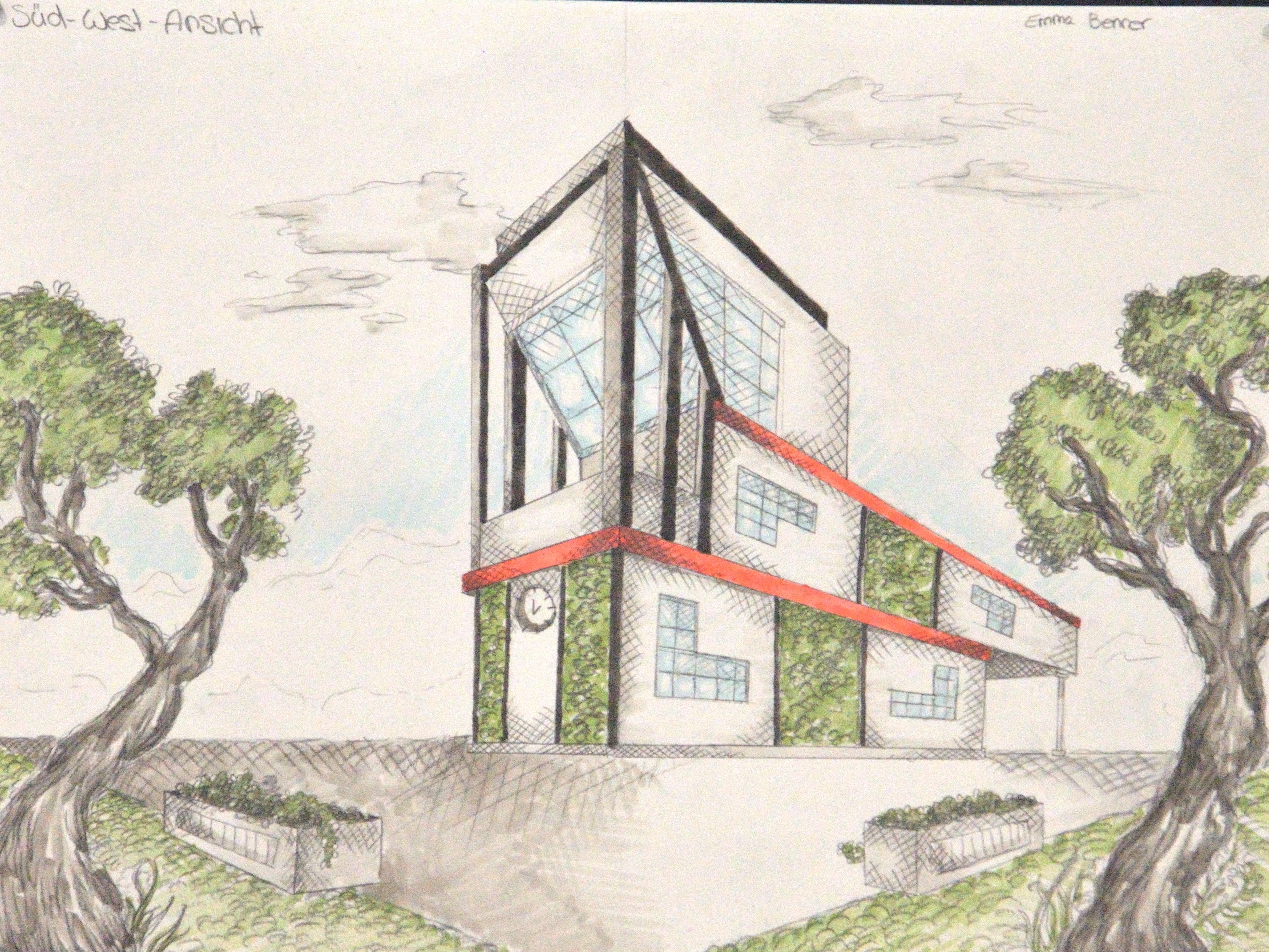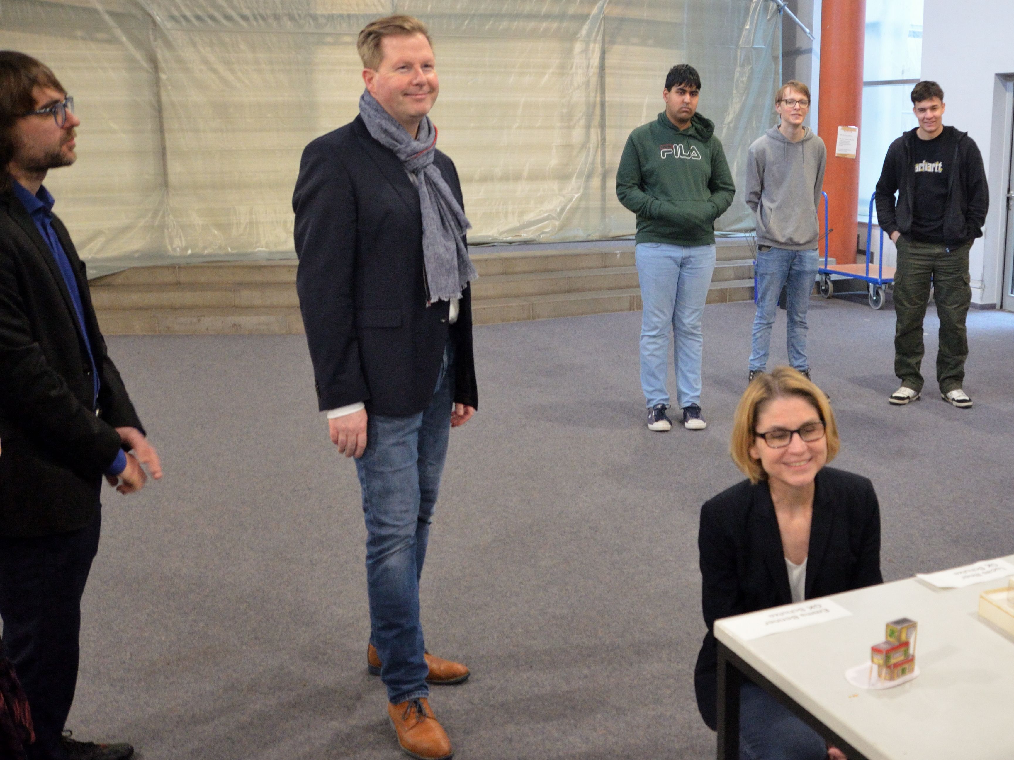 Wenn du dir deine Schule so bauen und gestalten könntest, wie es dir gefällt: Wie müsste diese aussehen? Welche Räume wären wichtig? Wo könnte gearbeitet und gelernt, wo „gechillt“ und Kontakte gepflegt werden? – Alle diese Überlegungen flossen ein in die architektonische Praxisaufgabe der beiden Q3-Kunst-Grundkurse von Moon Lindemann und Sascha Schulze. Die Ergebnisse – Skizzen und Modelle – präsentierten die Schülerinnen und Schüler nun dem Schulleitungsteam.