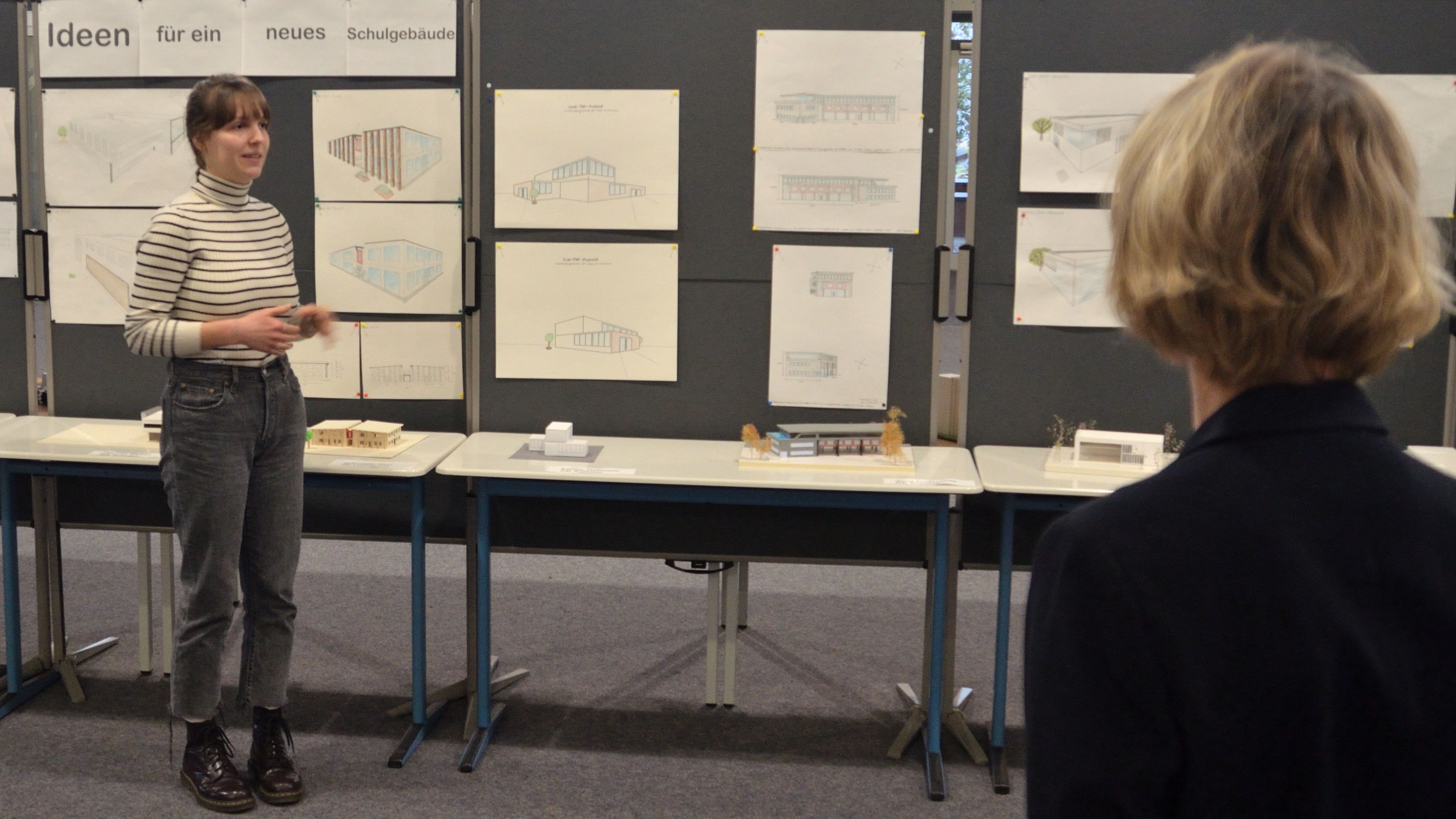 Kunst-Kurse präsentieren der Schulleitung ihre architektonischen Ideen für die Schule von morgen