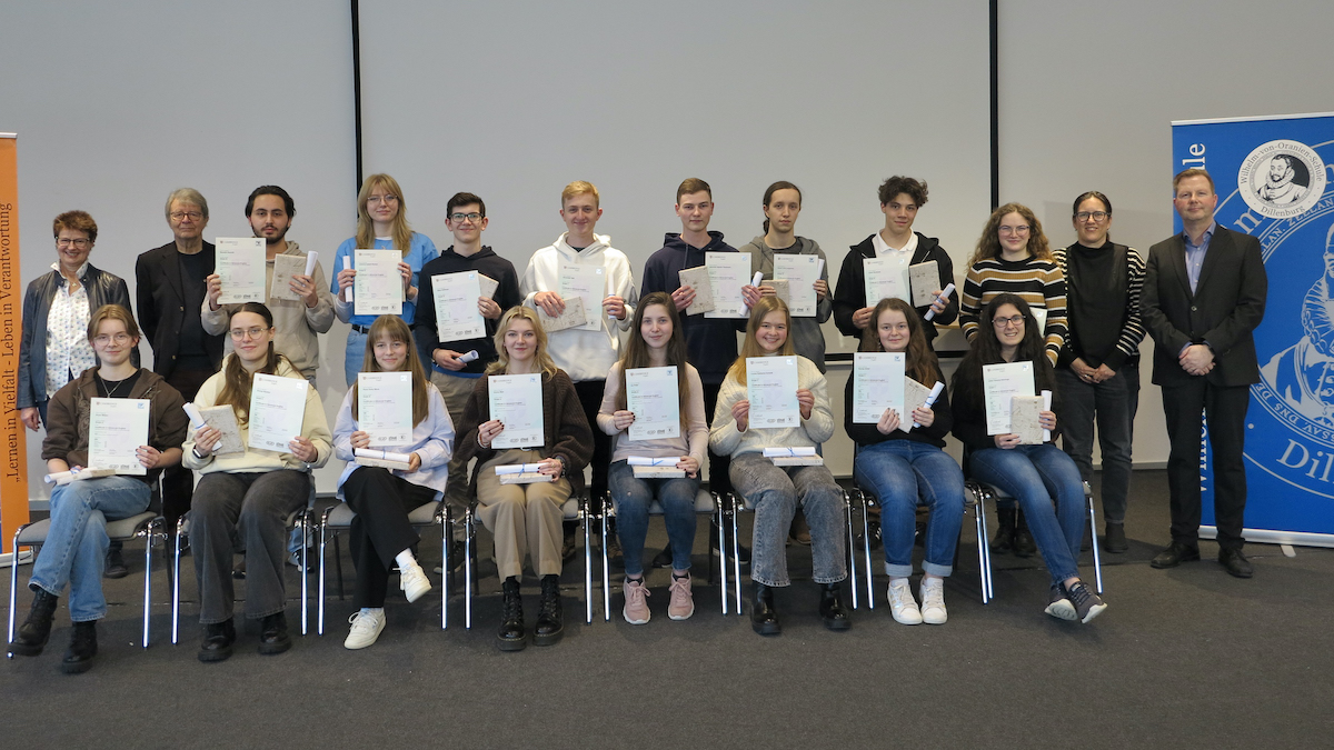 Das Zertifikat C1 erreichten Svenja Ankel, Svenja Bastian, Julian Buchholz, Lillian Hennings, Lily Herrmann, Johanna Höchst, Silas Hofheinz, Mustafa Karanfil, Oscar Langmann, Alexander Nöh, Louisa Scheidt, Jeremias Thielmann und Paula Würtz. Das höchstmögliche Sprachniveau der Skala C2 erklommen Ira Peter, Paula Weber und Emma Weil.