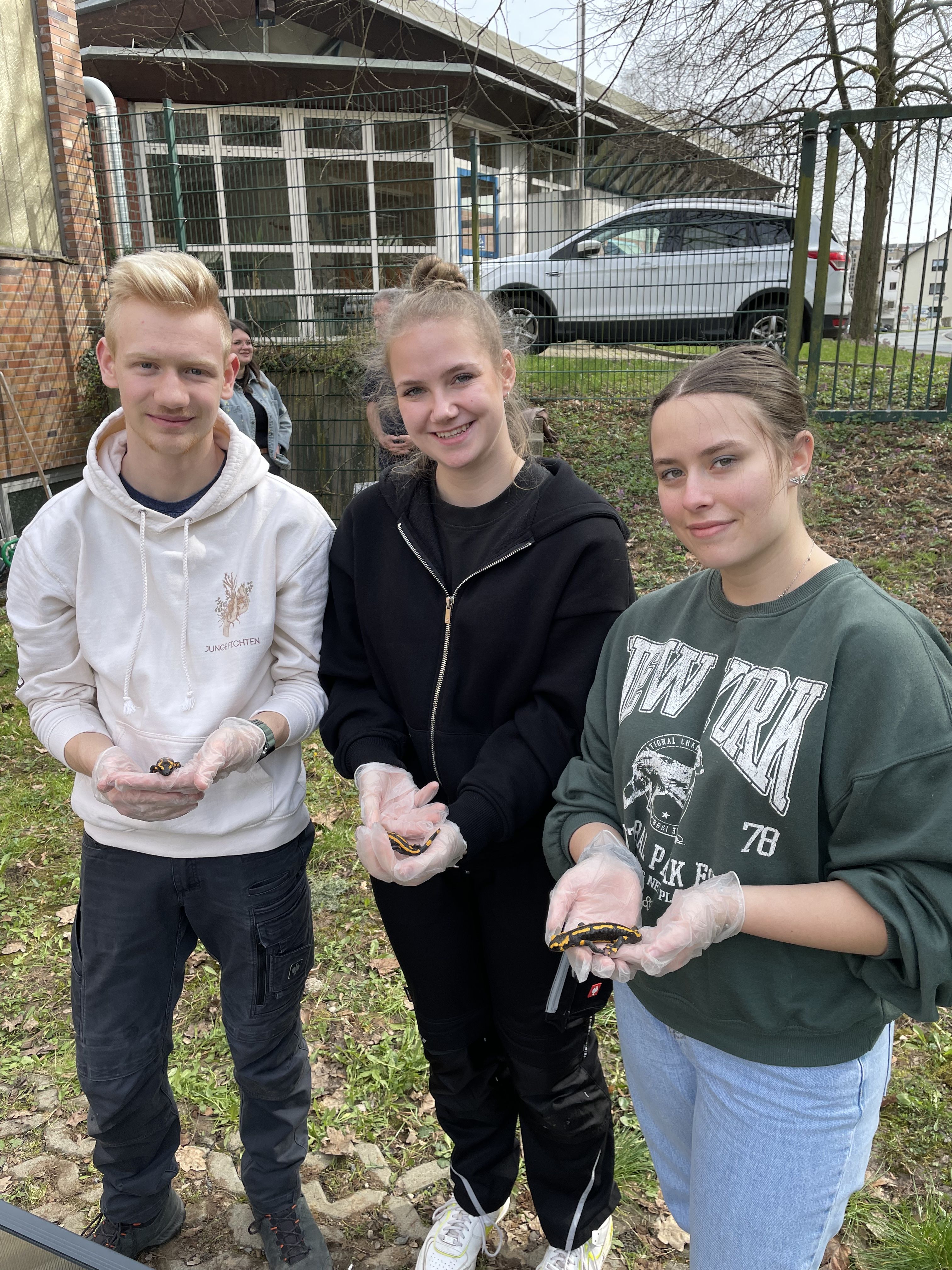 Im Rahmen der Dreharbeiten konnten Schülerinnen und Schüler aus dem Wahlunterricht Naturschutzprojekte und dem Leistungskurs Biologie voller Stolz vor Kamera und Mikrofon von ihrem bisherigen Beitrag zum Projekt und Erhalt der Feuersalamander berichten und eindrucksvoll ihre Tätigkeiten schildern.