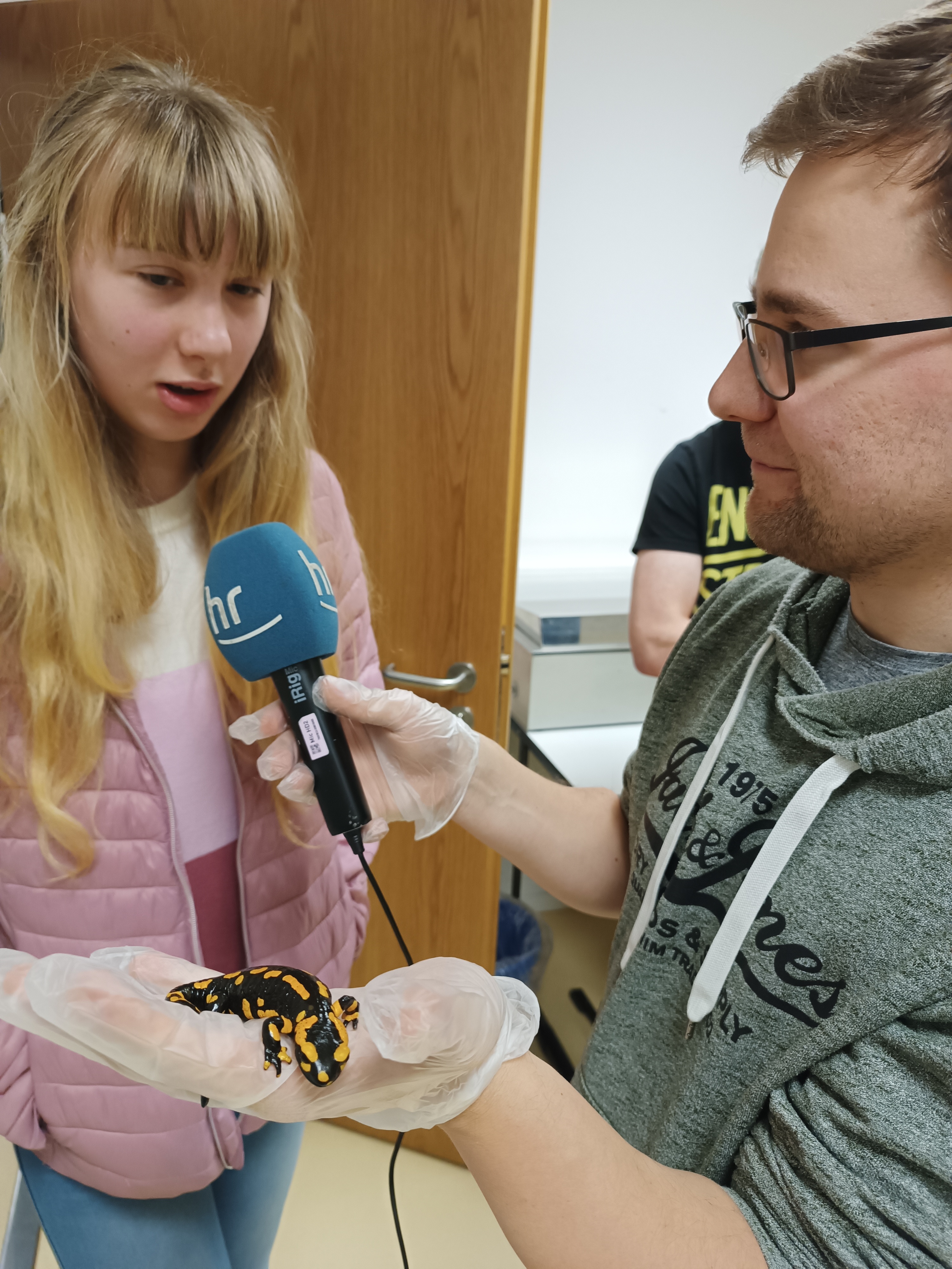Da der Feuersalamander auf der Roten Liste der gefährdeten Arten nun leider einen Platz ganz weit oben innehat und mittlerweile als sogenannte „Verantwortungsart“ gilt, hat sich der Hessische Rundfunk der Problematik angenommen und in Dillenburg vom Erhaltungszuchtprojekt der WvO in Radio und Fernsehen berichtet.
