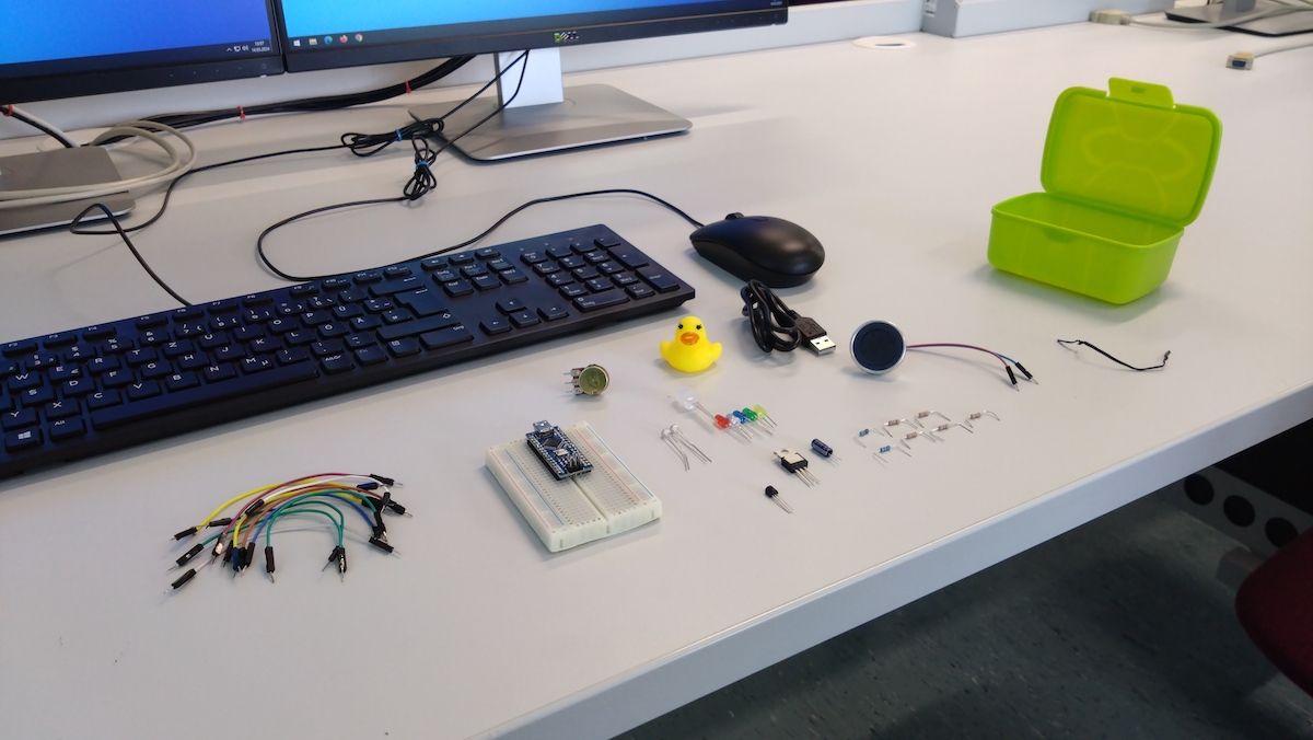 Im Rahmen der Elektronik-Einheit lernten die Schülerinnen und Schüler im Unterricht mit einfachen Experimenten die Grundlagen und Funktion verschiedener Elektronik-Bauelemente wie Widerstand, Potentiometer, Diode, LED, Kondensator und Transistor kennen. Im Anschluss wurden die Bauteile sinnvoll kombiniert, um damit einfache und komplexere Schaltungen – wie ein Blinklicht, eine Alarmanlage oder einen Gießsensor – zu bauen.