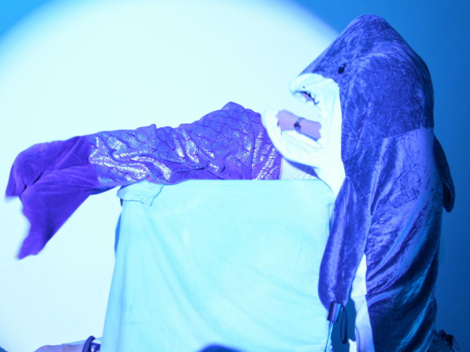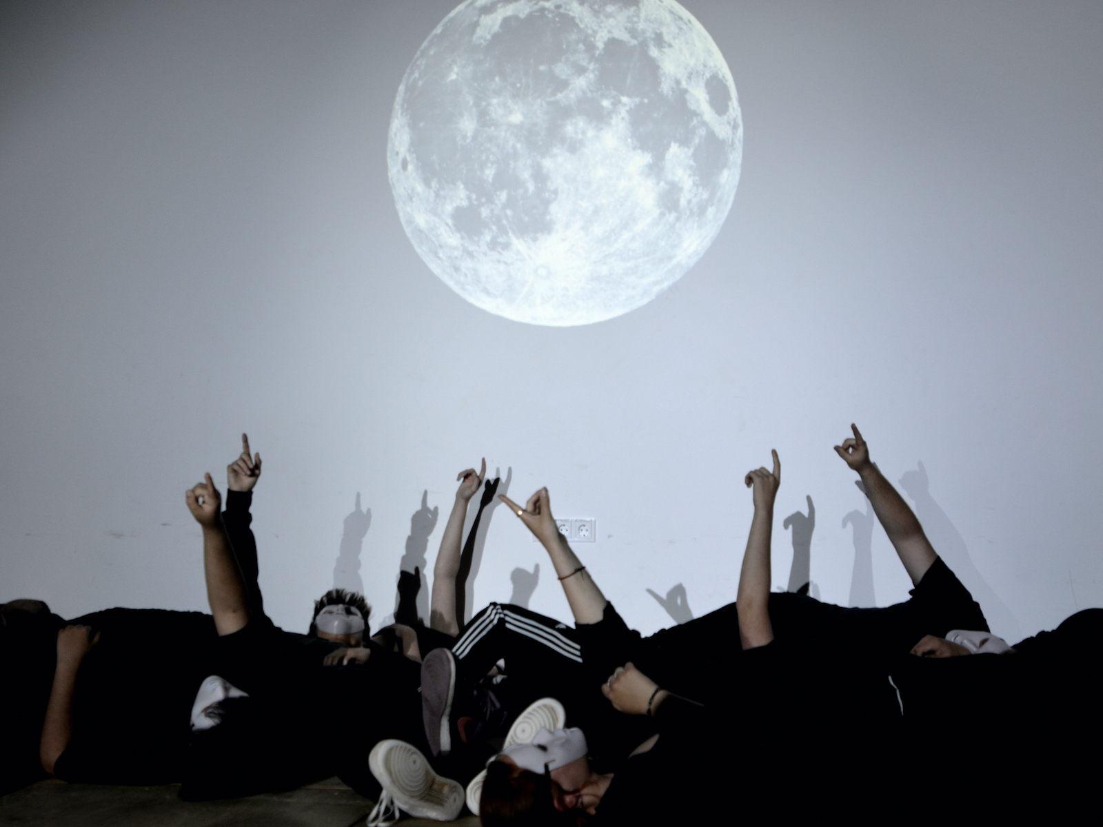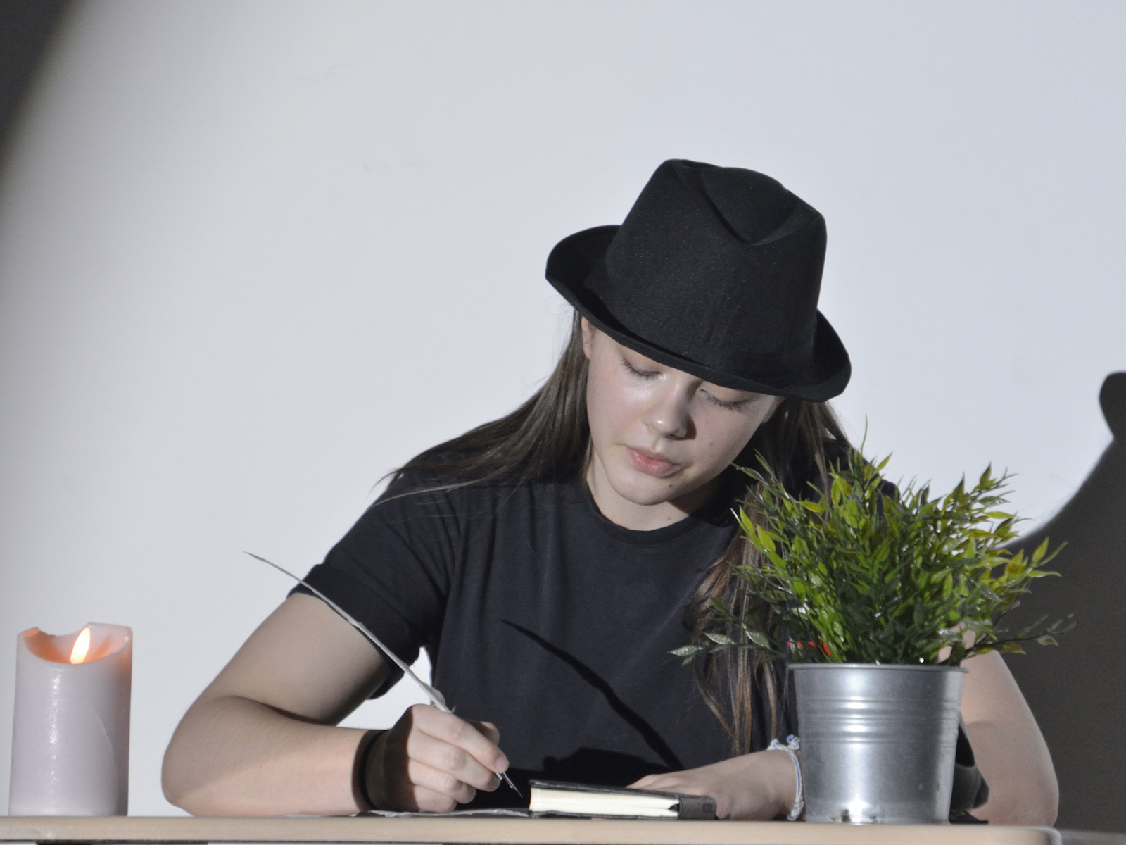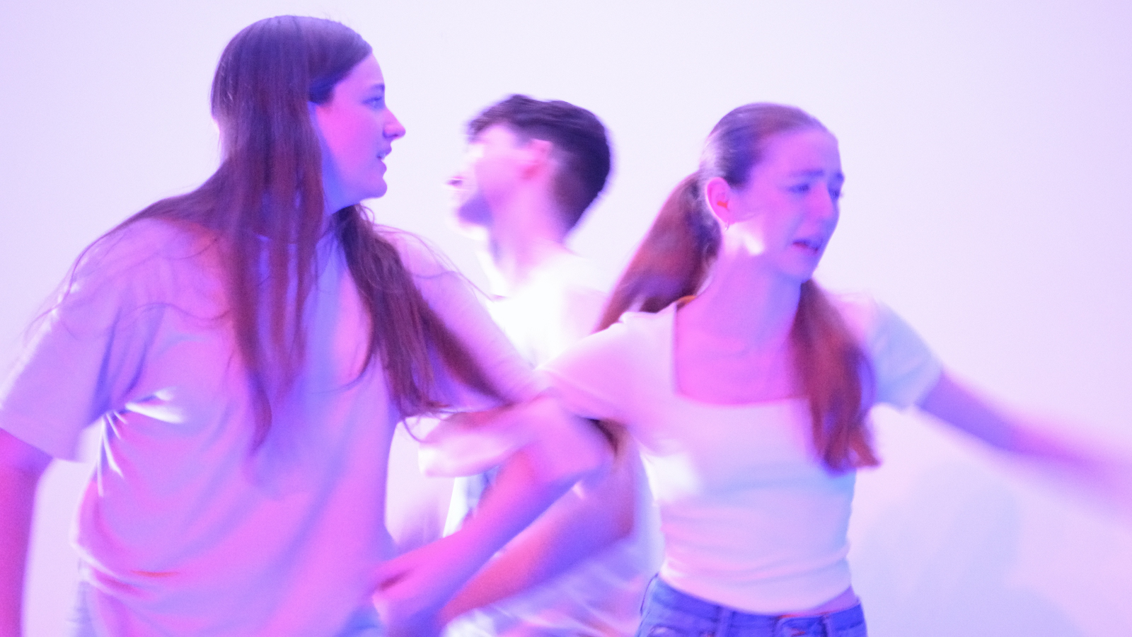 Der jüngste Theaternachwuchs, der beim Festival sein Stück präsentieren durfte, war der Wahlunterrichtskurs 10 von Harald Minde mit dem Stück „Und es hat ZOOM gemacht“. Nicht ohne Grund war auf dem Werbeplakat die Warnung „FSK ab 12“ abgedruckt, denn es wurde auffällig viel und auffällig spektakulär gestorben in dieser Collage aus Spielszenen und Rezitationen von Liedtexten aus Liebesliedern und Schnulzenschlagern. Die groteske Montage von ausgelutschten Zuneigungsbekundungen einerseits und Katastrophen mittleren bis globalen Ausmaßes andererseits – von Stromschlägen bei ungeschickten DIY-Arbeiten bis Atombombenexplosionen war so ziemlich alles dabei – bot sowohl Raum für die große Spielfreude der Mannschaft wie auch für die Minde-typischen pantomimischen Slapstickeinlagen.