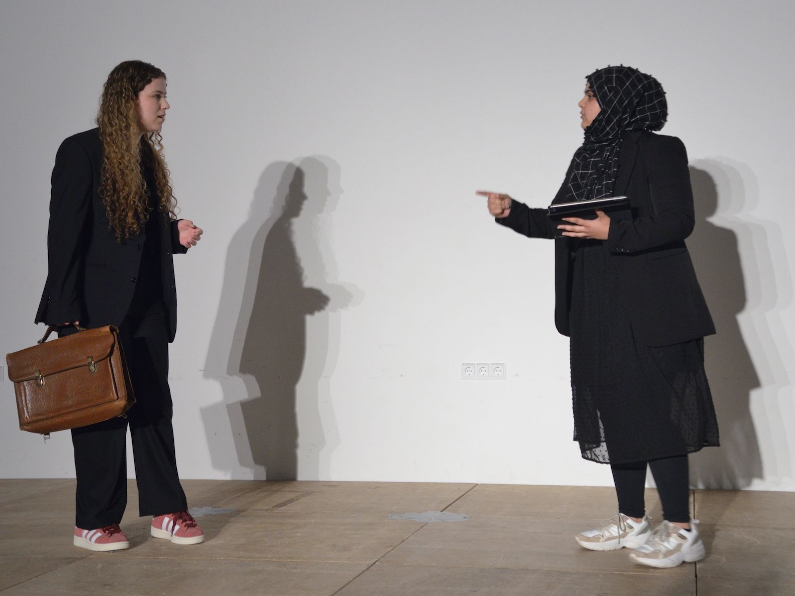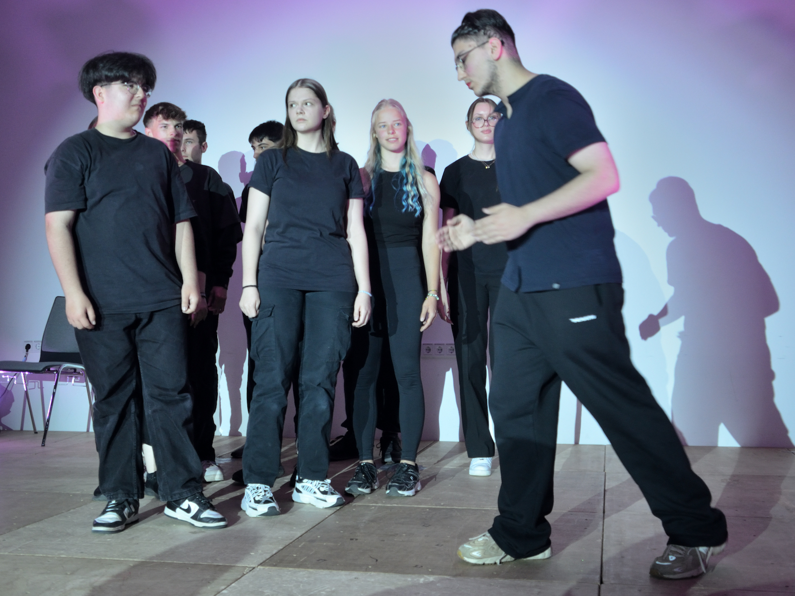 Gegen Ende des Schuljahres zeigen die Kurse des Faches Darstellendes Spiel (DS) dem öffentlichen Publikum traditionell, was sie draufhaben – bzw. was im Laufe des Schuljahres erarbeitet wurde. An der Wilhelm-von-Oranien-Schule (WvO) präsentierten nun im Rahmen des zweiten Theaterfestivals die Kurse Q2 von Lehrerin Jana Gehlen, E2 unter Leitung von DS-Fachsprecher Daniel Eisert und der Wahlunterricht Klasse 10, betreut von Altmeister Harald Minde, im voll besetzten Atrium, dass Künstliche Intelligenz zwar Spielszenen schreiben kann, diese aber auch gekonnt auf die Bühne gebracht werden müssen. Ohne Fleisch und Blut geht’s also nicht – und auch nicht ohne eine gehörige Portion Gehirnschmalz, wie das Publikum angesichts mancher gelungener Pointe oder hintersinnigen Aha-Effekts feststellen durfte.