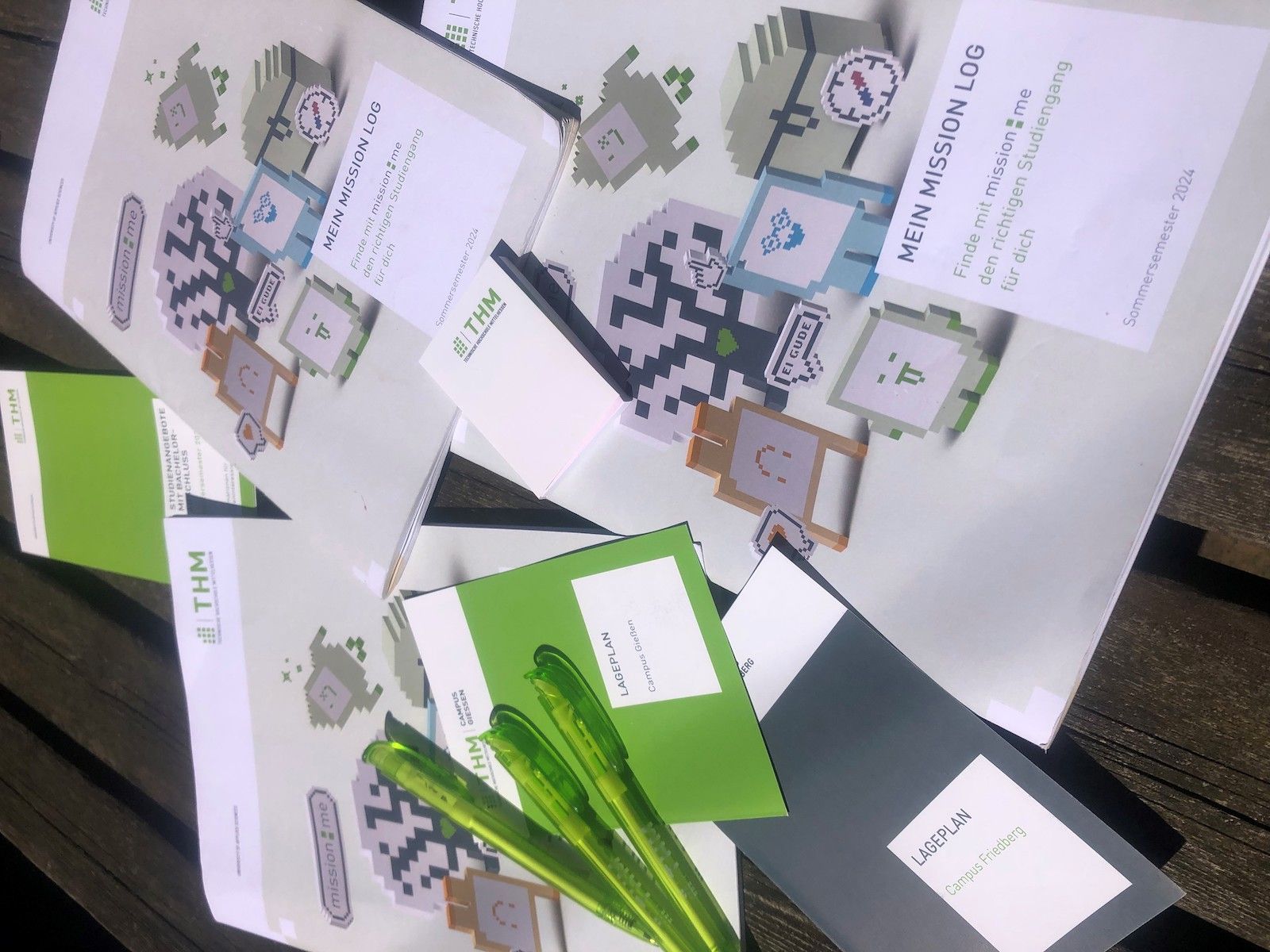 Die jeweiligen Studiengänge wurden immer erst nach bzw. im Verlauf der Mission verraten, um ein offenes und unvoreingenommenes Kennenlernen der Inhalte zu ermöglichen. Während der Missionen sei es Ziel, die Studieninhalte und Arbeitsweise möglichst umfangreich und realistisch für die Teilnehmenden wiederzugeben, so Julius Jay Butler, Projektleiter von mission:me. Neben den Missionen war es außerdem vormittags möglich, an richtigen Vorlesungen nach Interesse mit schon Studierenden teilzunehmen, was ein Gefühl für den Studierendenalltag ermöglichte. Ich habe zum Beispiel an Vorlesungen zu Architektur, Klimaschutz, Umwelt- und Sicherheitsingenieurwesen und Bioinformatik teilgenommen. Weiterer Baustein von mission:me sind sogenannte „Quests“. Das sind freiwillige Aufgaben, um den jeweiligen Campus in Friedberg bzw. Gießen und die anderen Teilnehmenden besser kennenzulernen. Eine Quest war es beispielsweise, sich mit noch unbekannten Teilnehmenden von mission:me auf einen Kaffee zu treffen und über Zukunftspläne und deren Interesse an dem Praktikum und MINT-Fächern zu sprechen. Weitere Quests waren das AStA-Büro zu finden oder die Motorsport-Werkstatt der Hochschule aufzusuchen, mit den Studierenden vor Ort ein Selfie zu machen und sich mit ihnen zu unterhalten. Um den Spielcharakter von mission:me zu unterstreichen, wurden für Missionen, Quests und Vorlesungen Punkte verteilt.