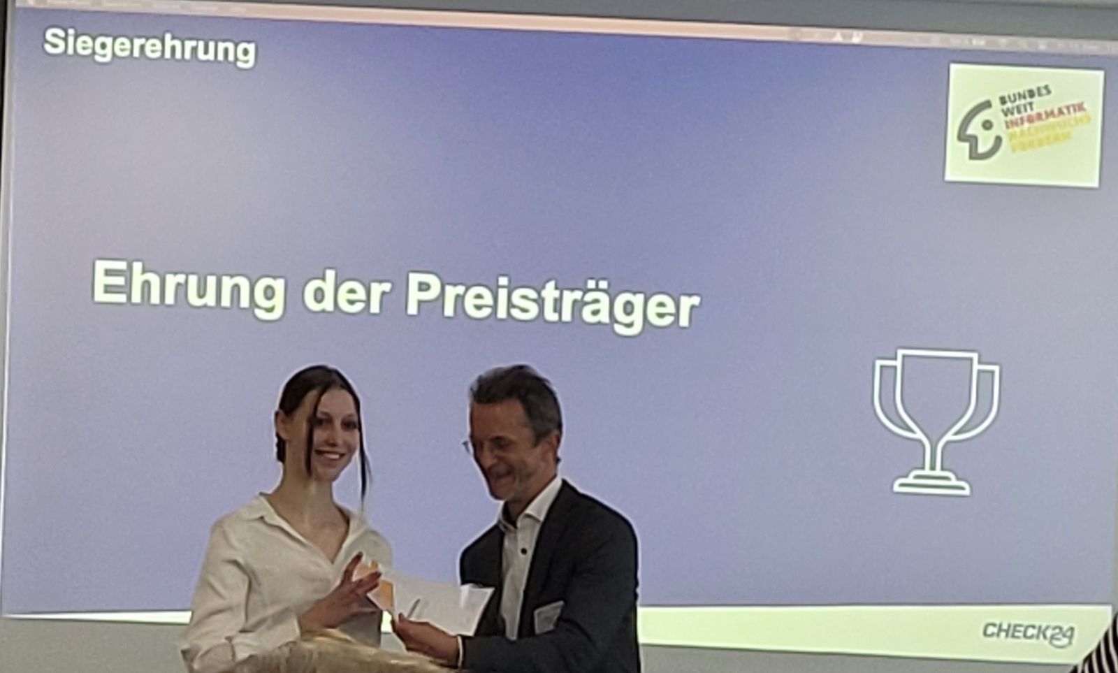 Charlotte Steinberg ist es gelungen, als beste weibliche Teilnehmerin und insgesamt unter den zehn besten Teilnehmern abzuschneiden und erhielt damit einen der begehrten Einzelpreise. Charlotte ist durch diesen Erfolg automatisch zur Qualifikation zum Training für die Internationale Olympiade der Informatik (IOI) zugelassen. Sollte sie diese Qualifikation schaffen, ist sie Teil der Nationalmannschaft Deutschlands und könnte im kommenden Jahr in Bolivien an den Weltmeisterschaften der besten Nachwuchs-Programmierer der Welt teilnehmen. Es bleibt also spannend und wir wünschen hierfür viel Erfolg.