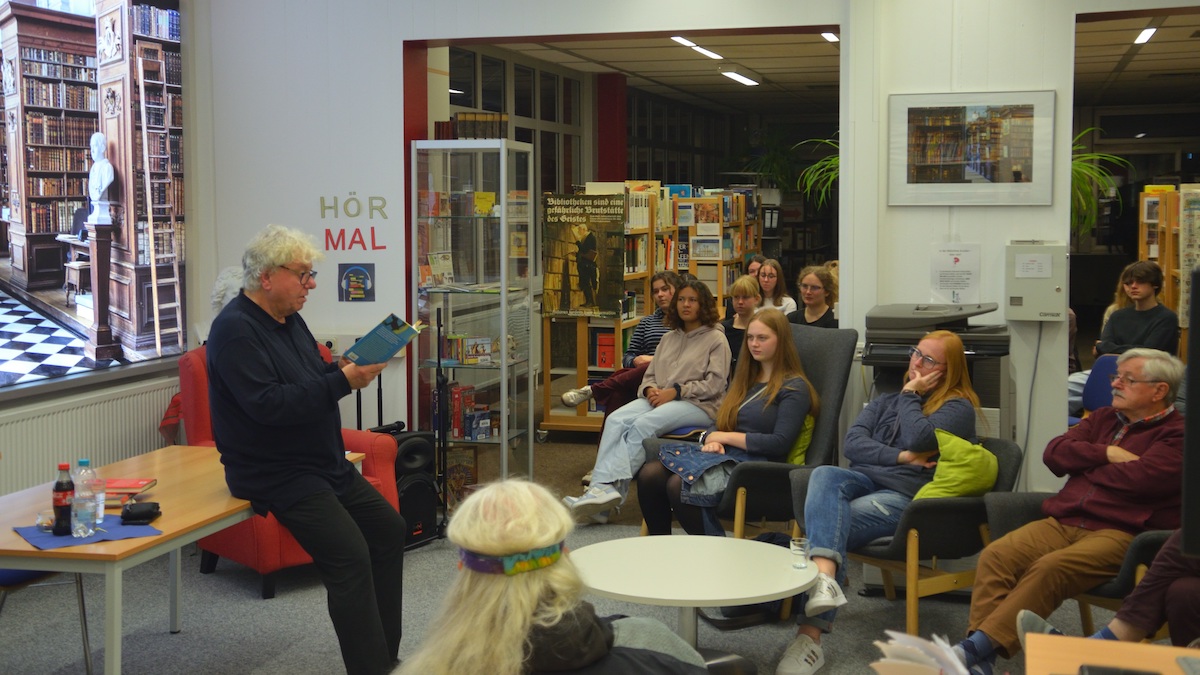 Christoph Nix liest und diskutiert mit dem Publikum an seiner alten Schule