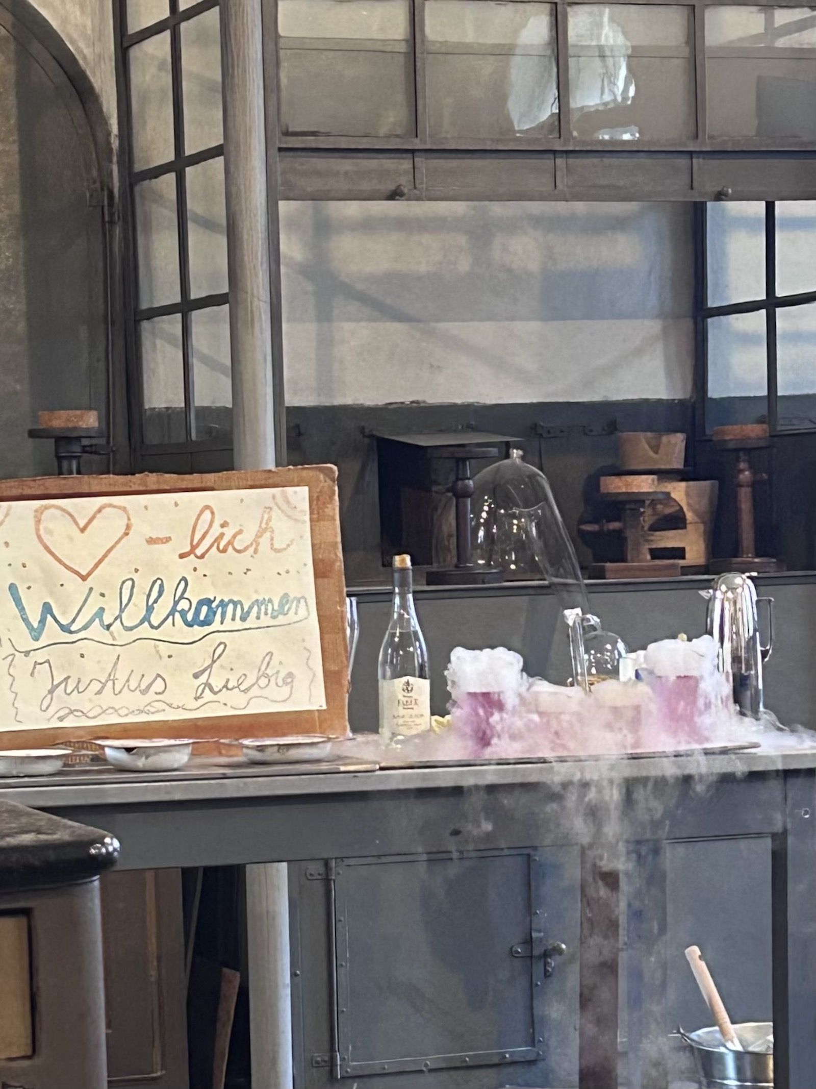 Das Museum befindet sich in Liebigs original erhaltenem Labor, was das gesamte Erlebnis besonders authentisch machte. Dadurch konnten wir uns gut in die Arbeitsbedingungen hineinversetzen, unter denen Liebig damals seine bahnbrechenden Entdeckungen machte und seine Studenten unterrichtete – von denen einige später ebenfalls bekannte Wissenschaftler wurden. Die Tatsache, dass Liebigs Labor so gut erhalten ist, macht es zu einer Besonderheit. Es ist eines der wenigen aus dem 19. Jahrhundert, die noch in dieser Form existieren. Die heutigen Labore haben sich erheblich verändert und weiterentwickelt, doch hier kann man noch gut erkennen, wie die „ersten“ Chemiker damals gearbeitet haben.