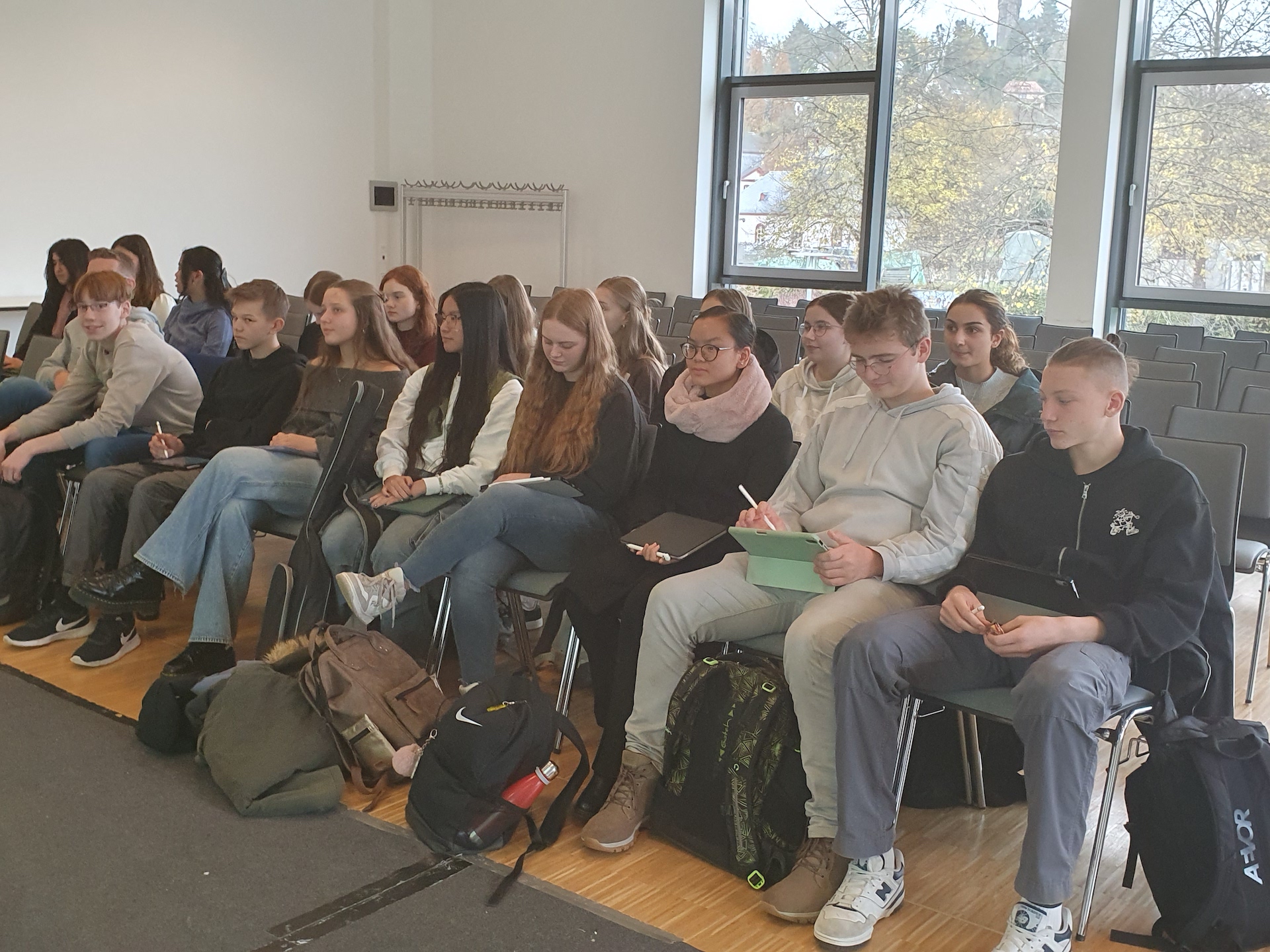Der Referent Tobias Manges eröffnete seine Präsentation mit einer interessanten Einstiegsaufgabe. Er forderte die aus den Jahrgangsstufen 9 bis Q3 kommenden Teilnehmer auf, sich in wenigen Sätzen selbst zu beschreiben. Diese Aufgabe, so simpel sie zunächst schien, erwies sich als unerwartet anspruchsvoll, da sie uns dazu zwang, über unsere eigene Identität und Wahrnehmung nachzudenken. Nachdem wir unsere Gedanken geteilt hatten, nutzte der Psychologie-Student diese Gelegenheit, um uns zu erklären, welche Kriterien wir unbewusst bei dieser Aufgabe angewandt hatten. Dabei führte er uns in das Konzept des Selbst ein, das aus drei zentralen Bereichen besteht: der Selbstregulation, dem Selbstwert und dem Selbstkonzept. Besonders Letzteres stand im Fokus, da es eine entscheidende Rolle dabei spielt, wie wir uns selbst und unsere Fähigkeiten wahrnehmen. Das allgemeine Selbstkonzept lässt sich in vier Kategorien unterteilen, von denen eine für uns als Schüler besonders bedeutsam ist: das Konzept der Fähigkeit. Dieses Konzept beschreibt die Gesamtheit unserer kognitiven Repräsentationen eigener Fähigkeiten. Darunter fallen nicht nur unsere Annahmen über die Qualität unserer Fähigkeiten, sondern auch deren Struktur und Stabilität. Der Referent zeigte auf, wie diese Einschätzungen unser Denken und Handeln beeinflussen könnten, und betonte, wie wichtig es sei, ein realistisches und dennoch positives Selbstbild zu entwickeln, insbesondere in der Schulzeit, wo der Umgang mit Herausforderungen und Selbstzweifeln zum Alltag gehöre. Ein Bestandteil des Vortrags war die Auseinandersetzung mit einem wissenschaftlichen Paper, das uns im Vorfeld als Vorbereitung zur Verfügung gestellt wurde. Nach der Bearbeitung der gestellten Aufgaben führten wir eine gemeinsame Besprechung durch, bei der offene Fragen geklärt und zusätzliche Erläuterungen gegeben wurden. Anschließend gingen wir in eine Feedback-Runde über. Eine Teilnehmerin aus der Begabtenförderung brachte ihre Begeisterung mit den Worten „Diesen Vortrag hätte ich gern schon in der Grundschule gehört“ zum Ausdruck. Die Runde wurde mit einem prägnanten Appell von Tobias Manges an die Lehrkräfte geschlossen: „Auch Lehrer sollten sich verändern.“