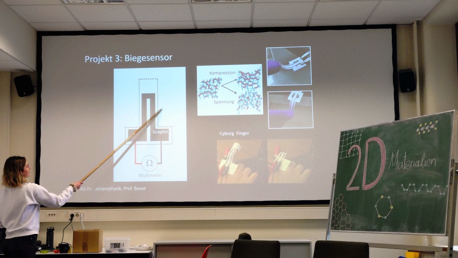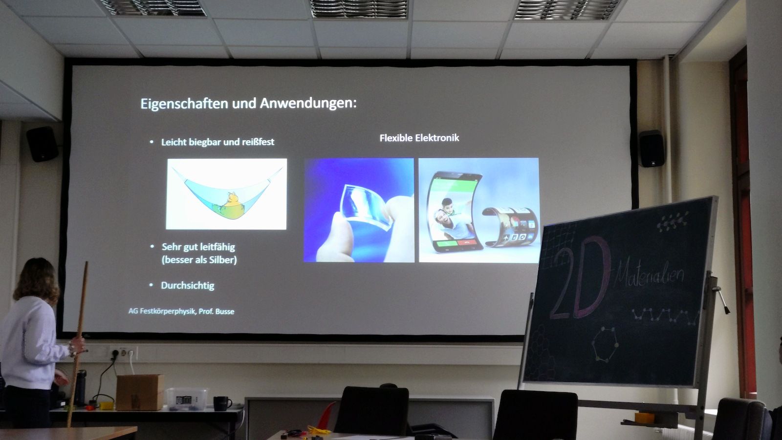 Die Themen der Workshops waren vielseitig: Elektronische Detektoren für Elementarteilchen und kosmische Strahlen, die Theorie und Praxis der Vortexkanone, Supraleitung mit schwebenden Magneten, Teilchenphysik am Large Hadron Collider, Kryptographie, die elektrische Leitfähigkeit von Graphen als Beispiel für 2D-Materialien und die Funktion von Siliziumphotomultipliern. Wissenschaftlerinnen, Wissenschaftler und Studierende der Universität Siegen leiteten die Stationen und ermöglichten es den Teilnehmenden, stellenweise selbst zu experimentieren, hautnah Einblicke in aktuelle Forschungsfelder zu erhalten und Fragen zu stellen.
