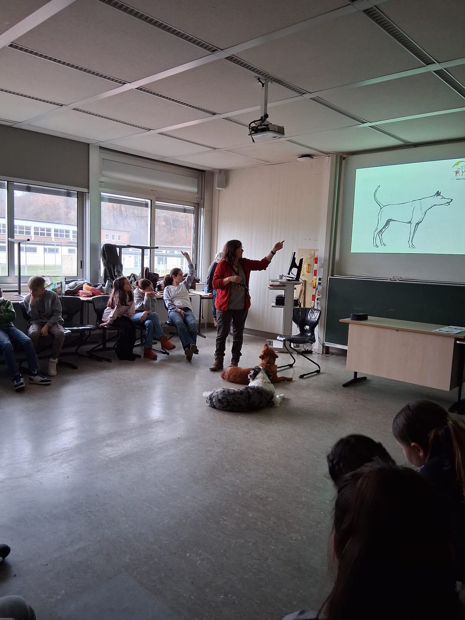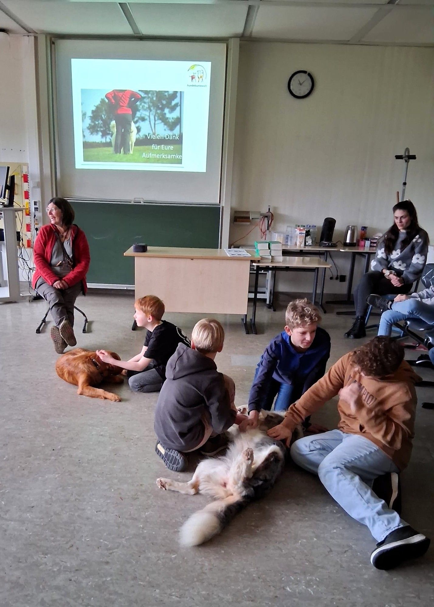 Auch in diesem Jahr war die Veranstaltung wieder eine wertvolle Ergänzung zum Biologieunterricht. Die Schülerinnen und Schüler waren allesamt sehr aufmerksam, stellten wissbegierig Fragen oder berichteten selbst von ihren Erfahrungen mit Hunden. Und natürlich kam das Kuscheln mit den Vierbeinern auch nicht zu kurz. Alles natürlich auf freiwilliger Basis und ohne Zwang.