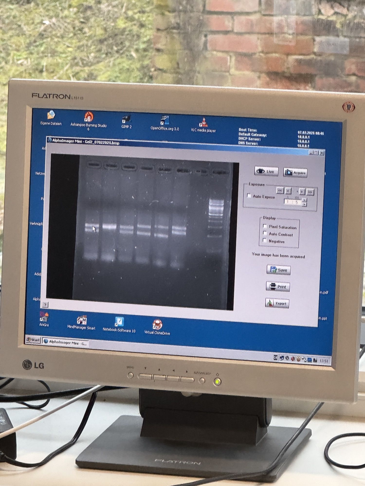 Wurde die Probe ausreichend im Thermocycler kopiert, konnte sie mittels Gelelektrophorese sichtbar gemacht und ausgewertet werden. Auch hier war beim Herstellen und dem anschließenden Beladen der Gele äußerstes Fingerspitzengefühl gefragt.