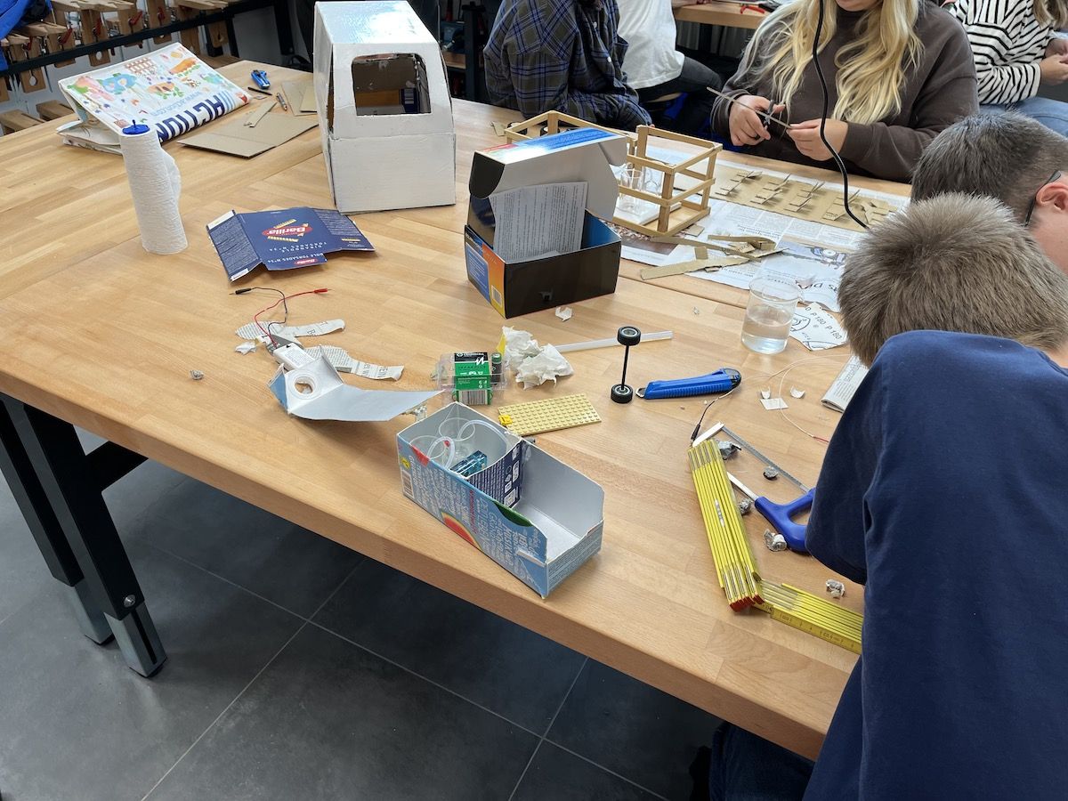 Gebaut wurde der Modellbus in der neuen schuleigenen Werkstatt, die den Schülerinnen und Schülern beste Bedingungen zum Tüfteln, Ausprobieren und Umsetzen bot. Mit viel Engagement, Teamarbeit und technischer Neugier entstanden dort die ersten Prototypen, bis der finale Bus erfolgreich durch das Schulgebäude rollte.