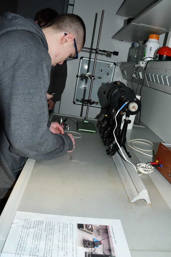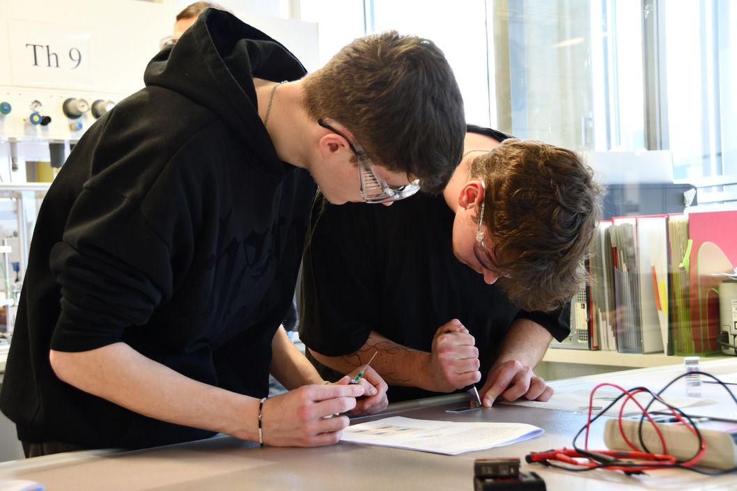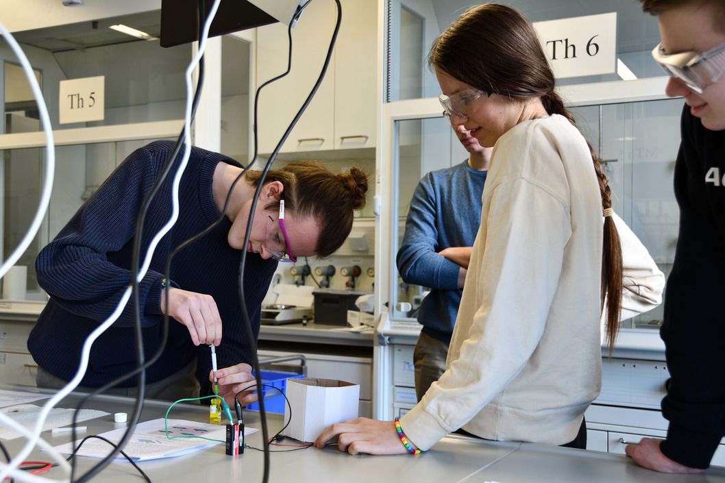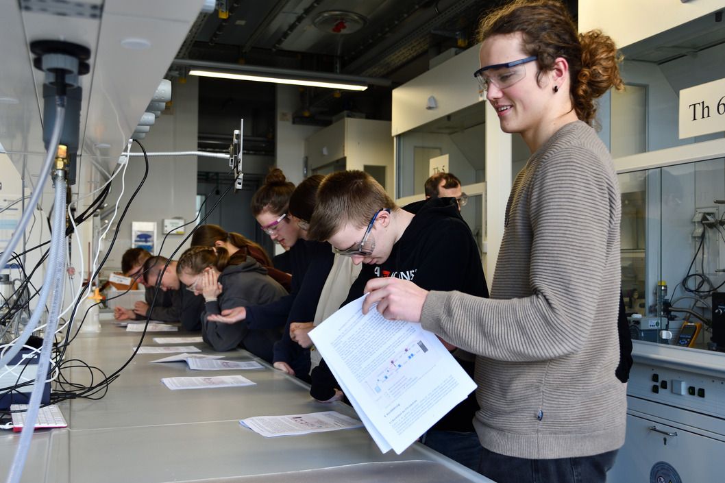 Nach einem gemeinsamen Mittagessen in der Mensa erhielten wir eine spannende Laborführung. Dabei bekamen wir nicht nur ein Elektronenmikroskop zu sehen, sondern auch experimentelle Vorrichtungen für den Umgang mit hochreaktiven und gefährlichen Substanzen.