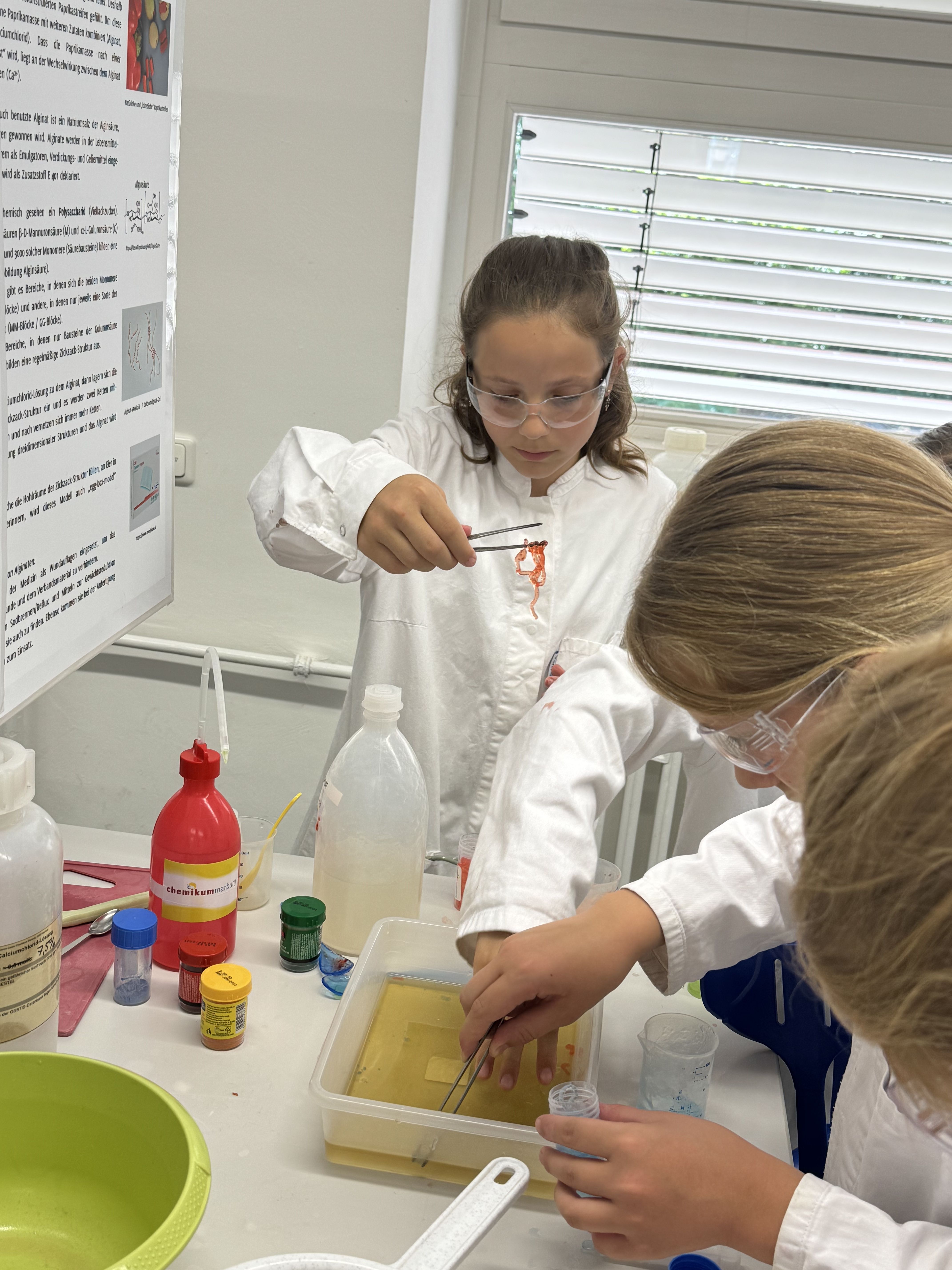 Alle Experimente waren eng mit dem Alltag verbunden und boten viel Raum für Entdeckungslust. Mithilfe didaktisch aufbereiteter Infotafeln erhielten die Schülerinnen und Schüler wichtige Hintergrundinformationen sowie eine klare Anleitung zum Ablauf der Experimente. Sollte einmal ein Reagenzglas fehlen oder eine Frage aufkommen, stand das freundliche und kompetente Betreuungspersonal des Chemikums stets mit Rat und Tat zur Seite.