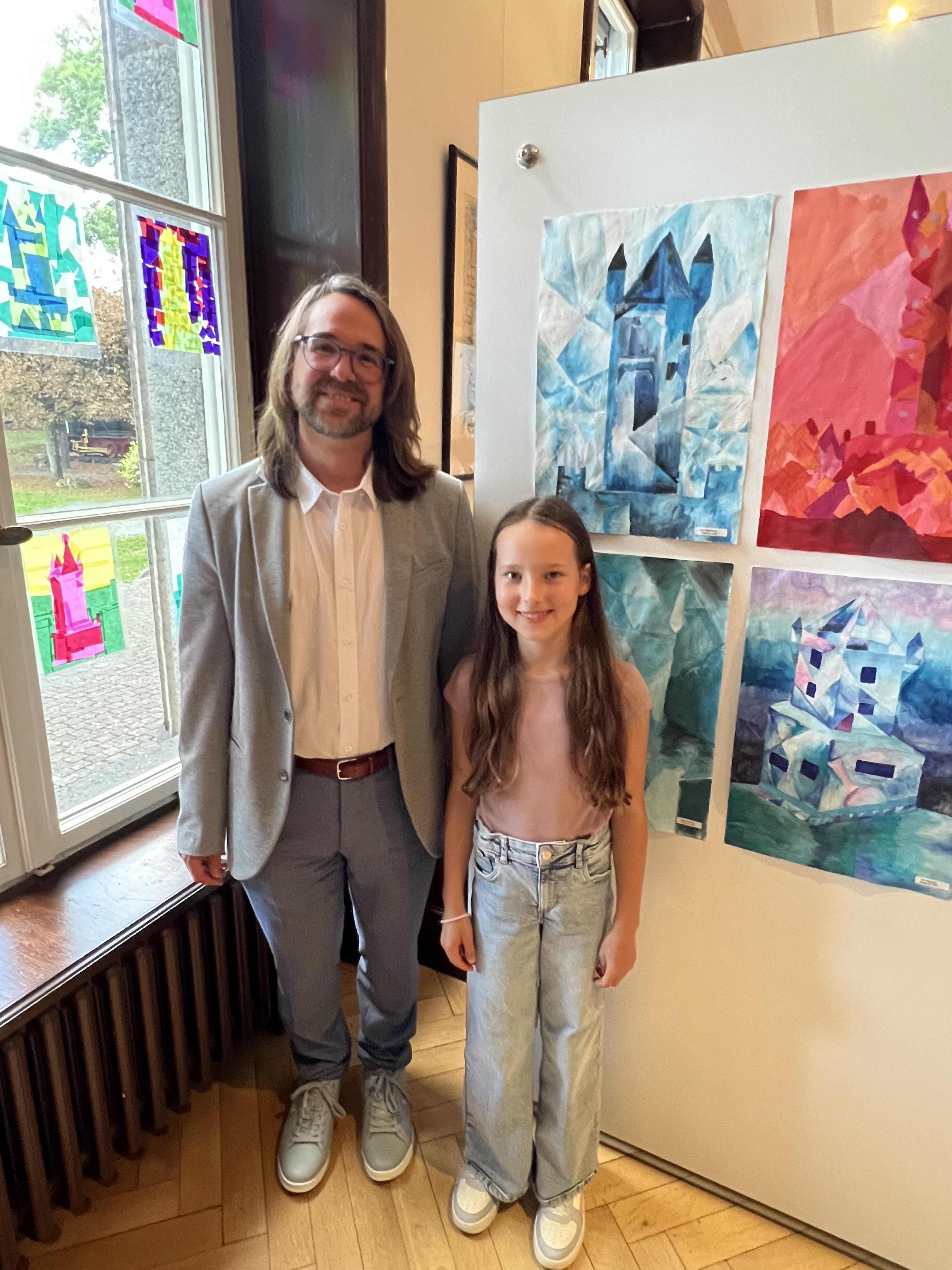 Die Klasse 5E des vergangenen Schuljahres beteiligte sich an der Kubismus-Ausstellung unter Anleitung von Kunstlehrer Sascha Schulze. Lina Hohenberger durfte gemeinsam mit ihrer Familie und ihrem Lehrer bei der Vernissage ihre Klasse repräsentieren.