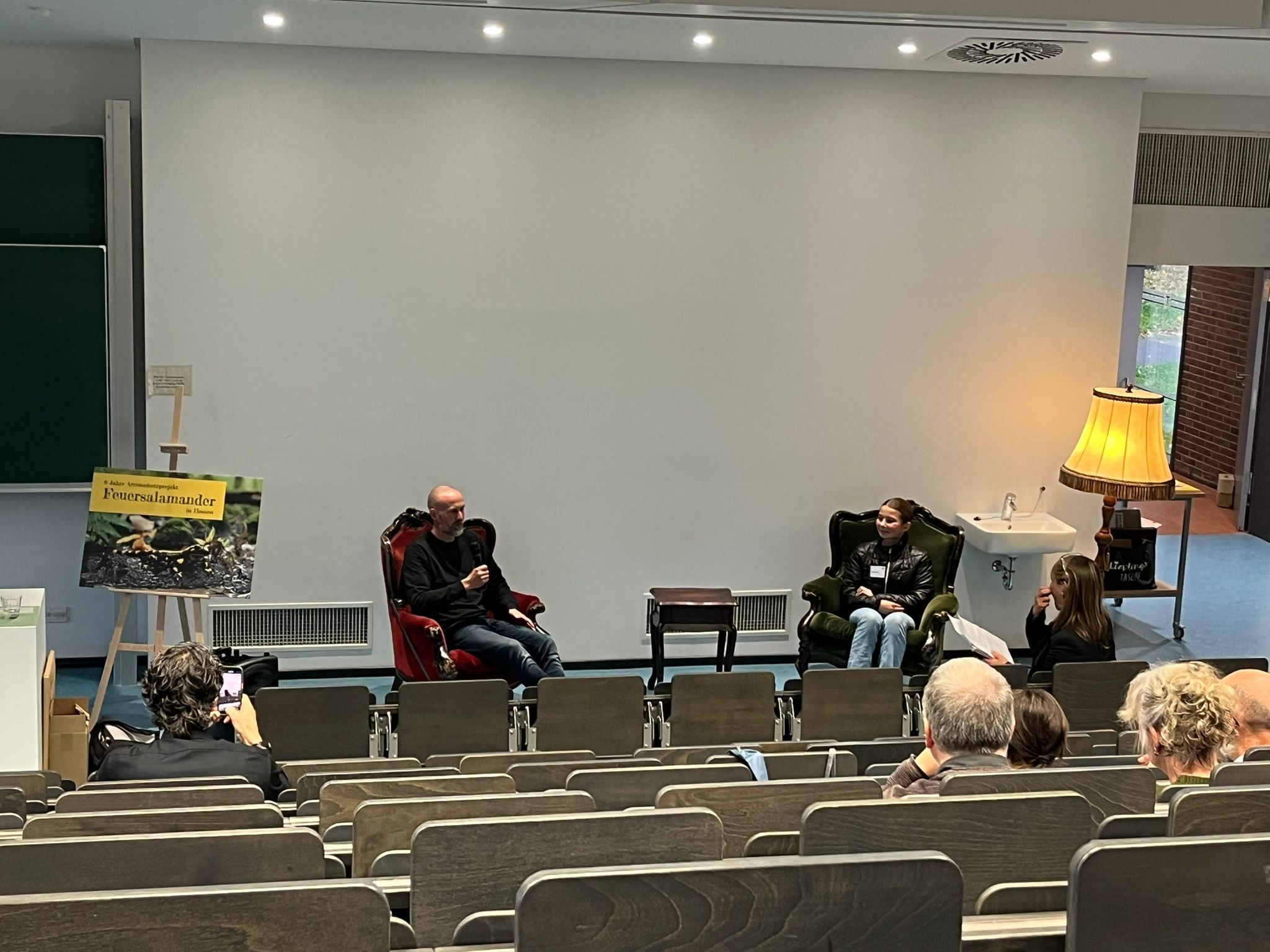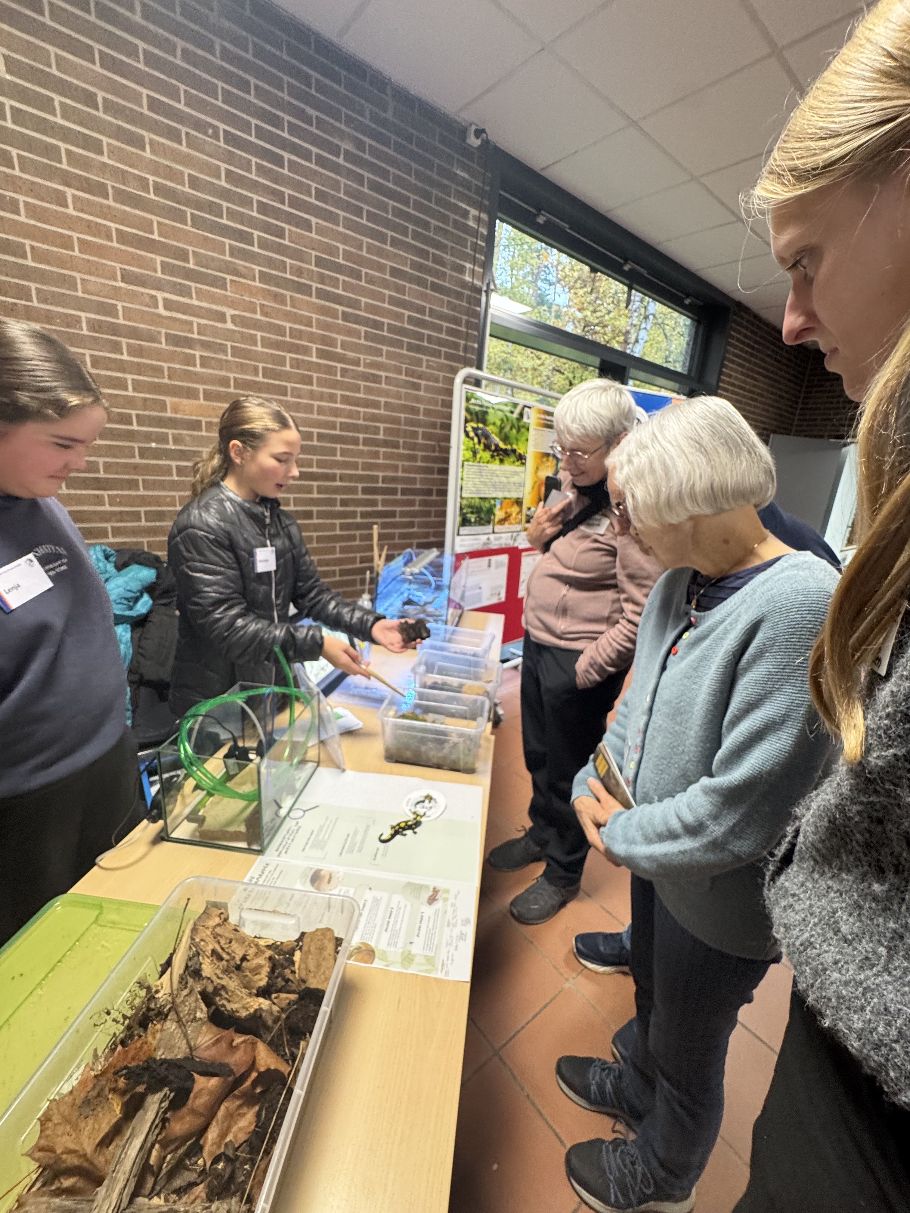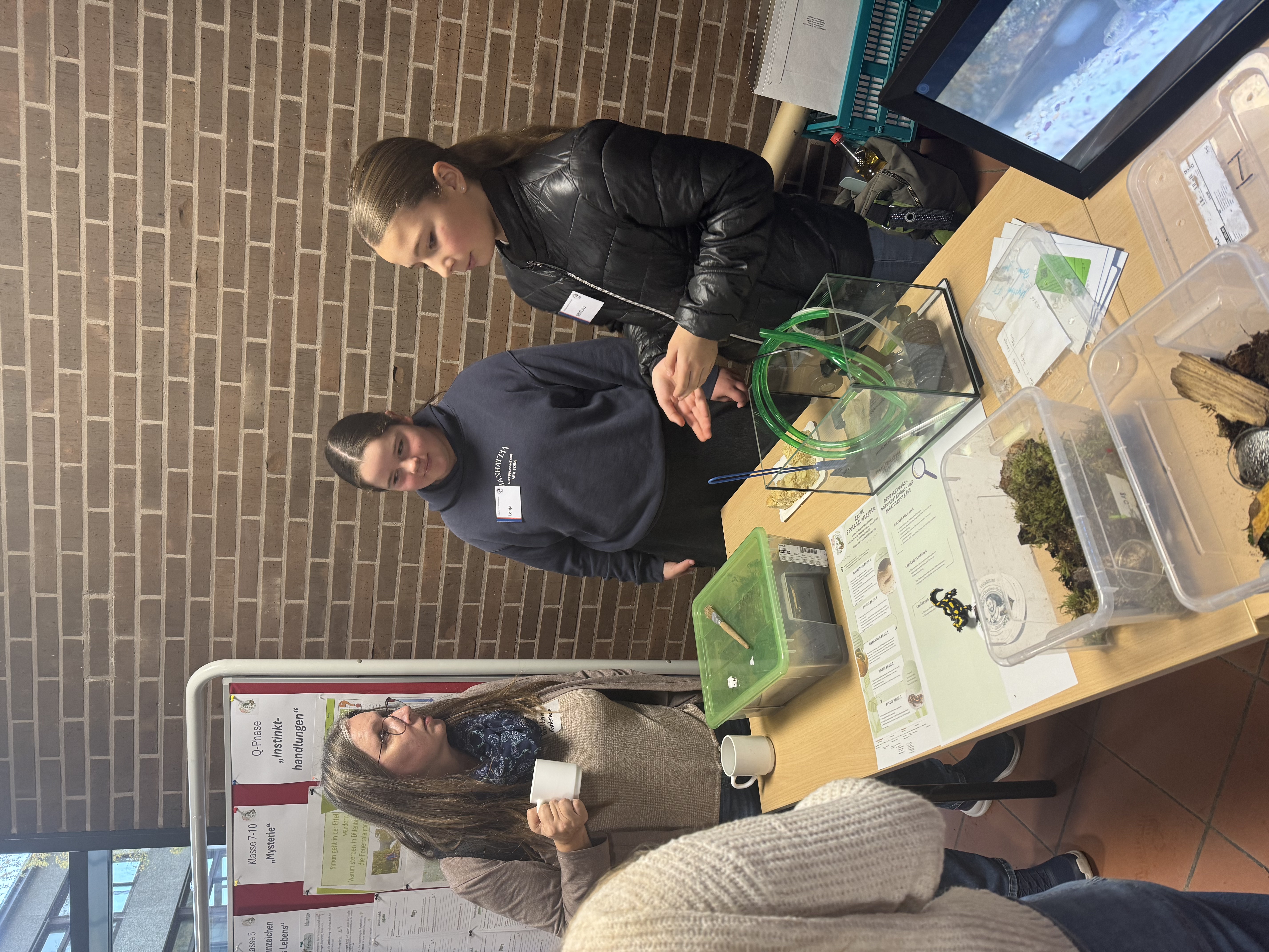 Gleich zu Beginn des Tages wurde das Team vom Hessischen Rundfunk interviewt (der Beitrag wird in den kommenden Tagen im HR-Radio zu hören sein). Später standen Sedric Haus und Marlene Hübscher (7c) auf der Bühne: Im Gespräch mit Moderatorin Anna Wöbse berichteten sie von der erfolgreichen Salamanderhaltung an der WvO und vom großen pädagogischen Mehrwert für die gesamte Schulgemeinde.