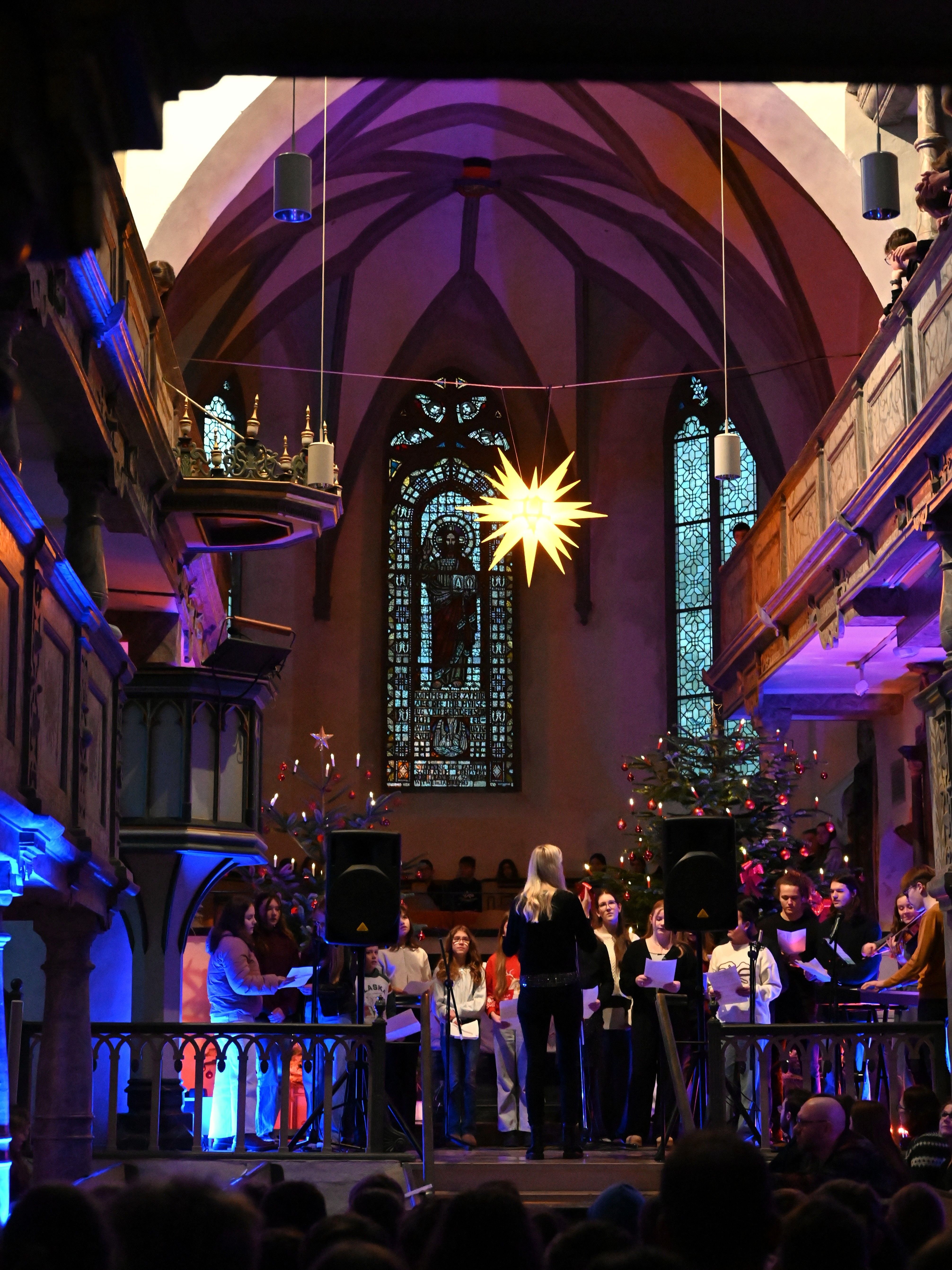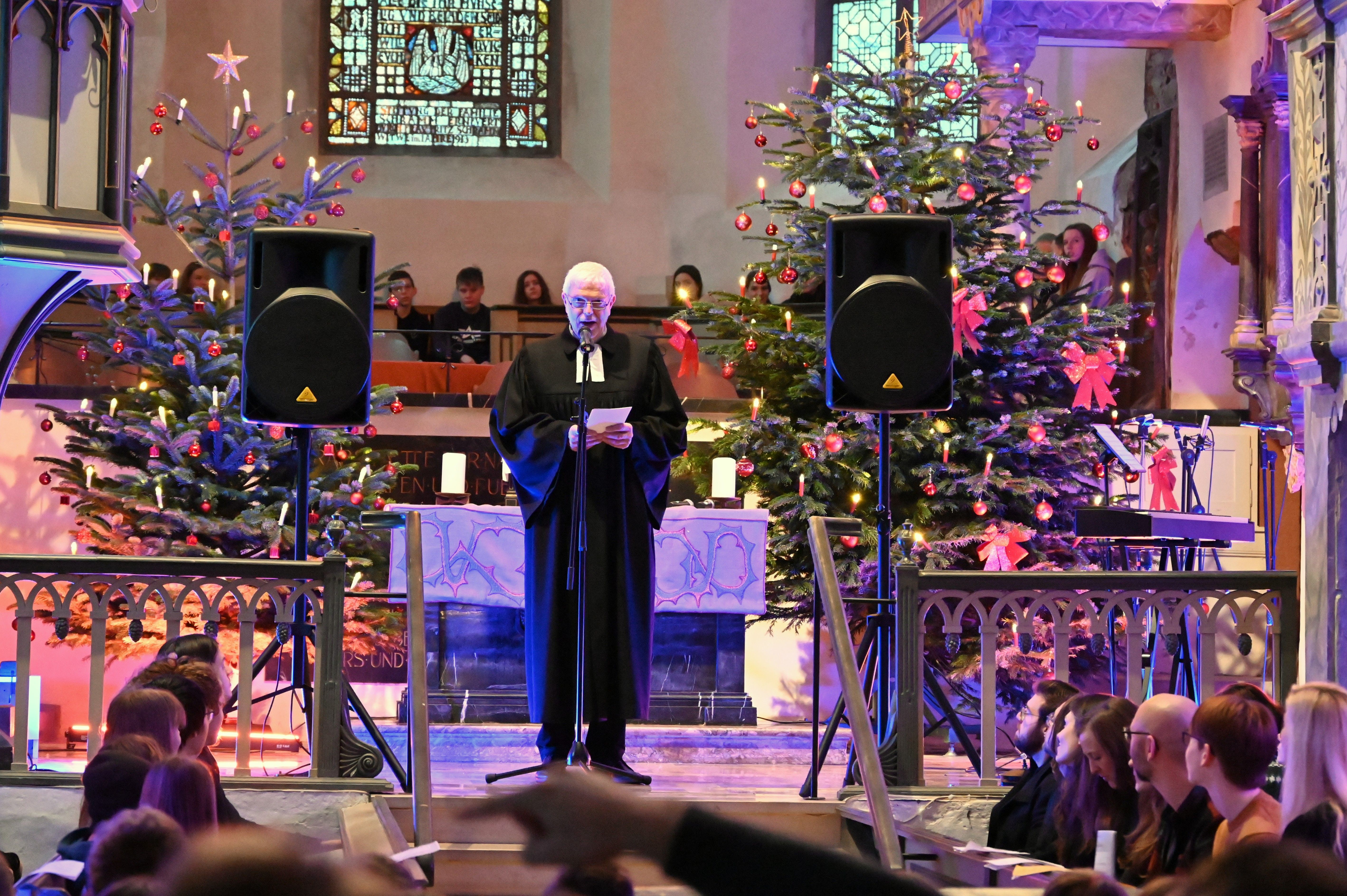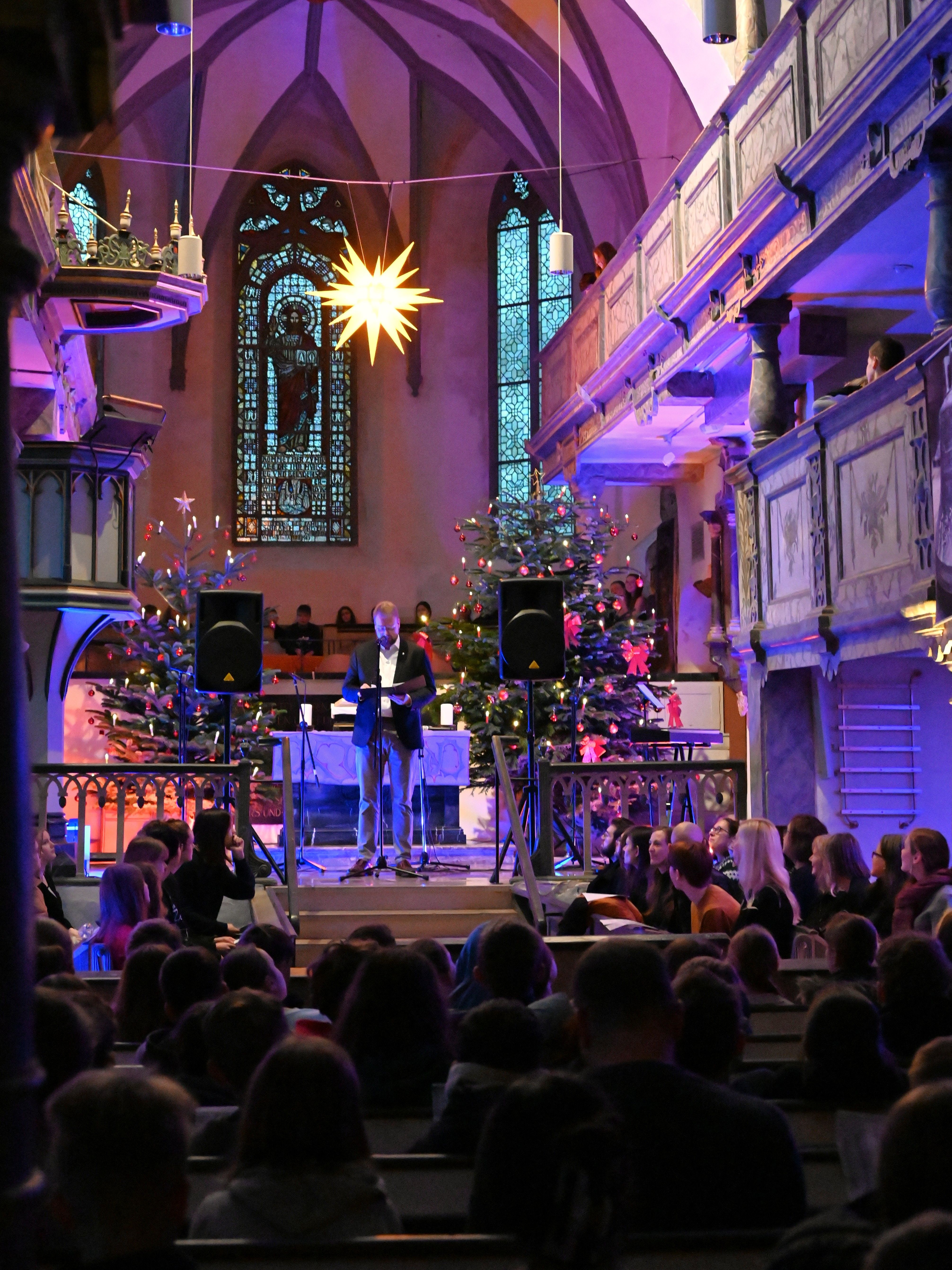 Musikalisch stimmungsvoll umrahmt wurde der Weihnachtsgottesdienst von Martin Giebeler an der Orgel, dem Schulchor unter Leitung von Dr. Catharina Löffler und dem von Jakob Tollerian dirigierten Lehrer-Projektchor.