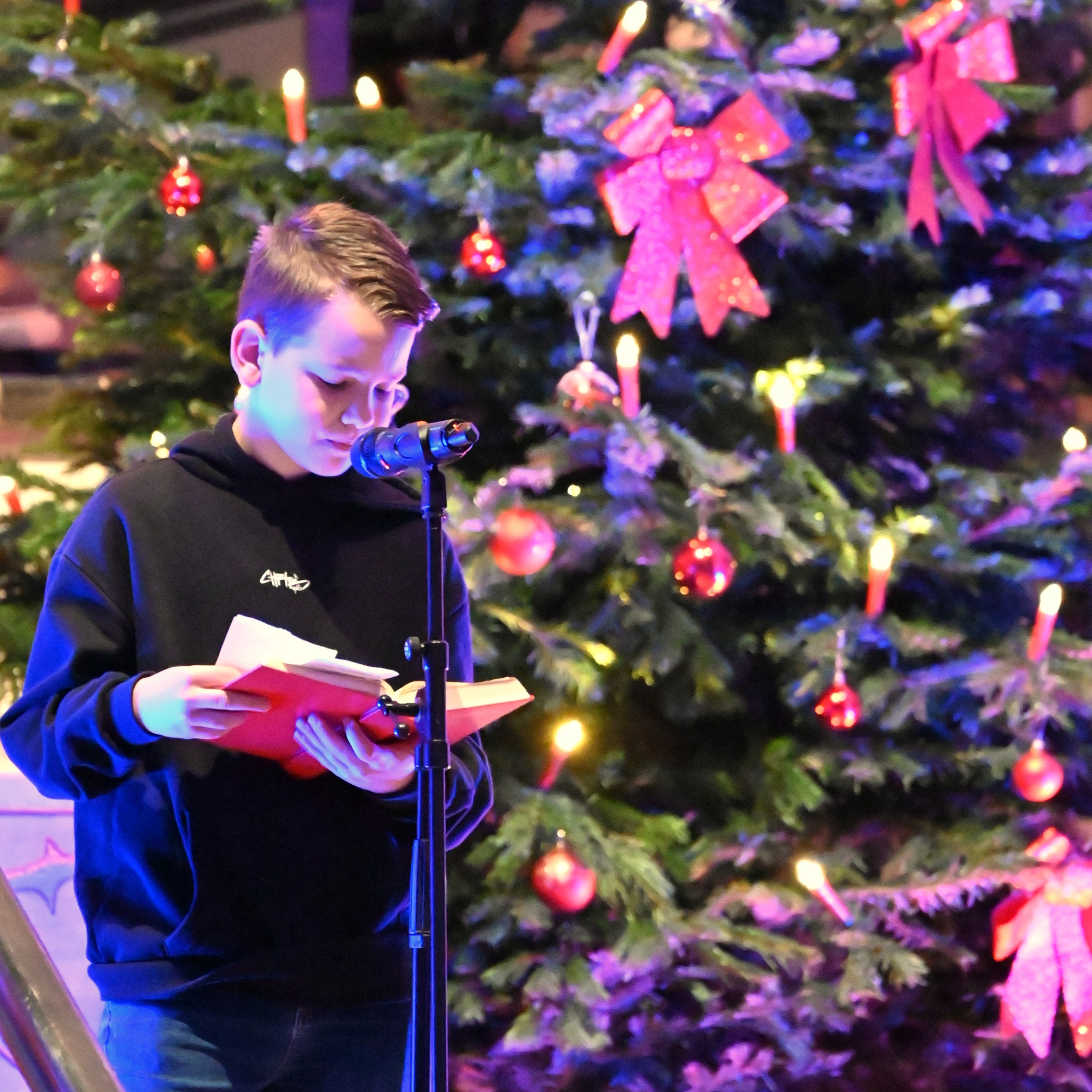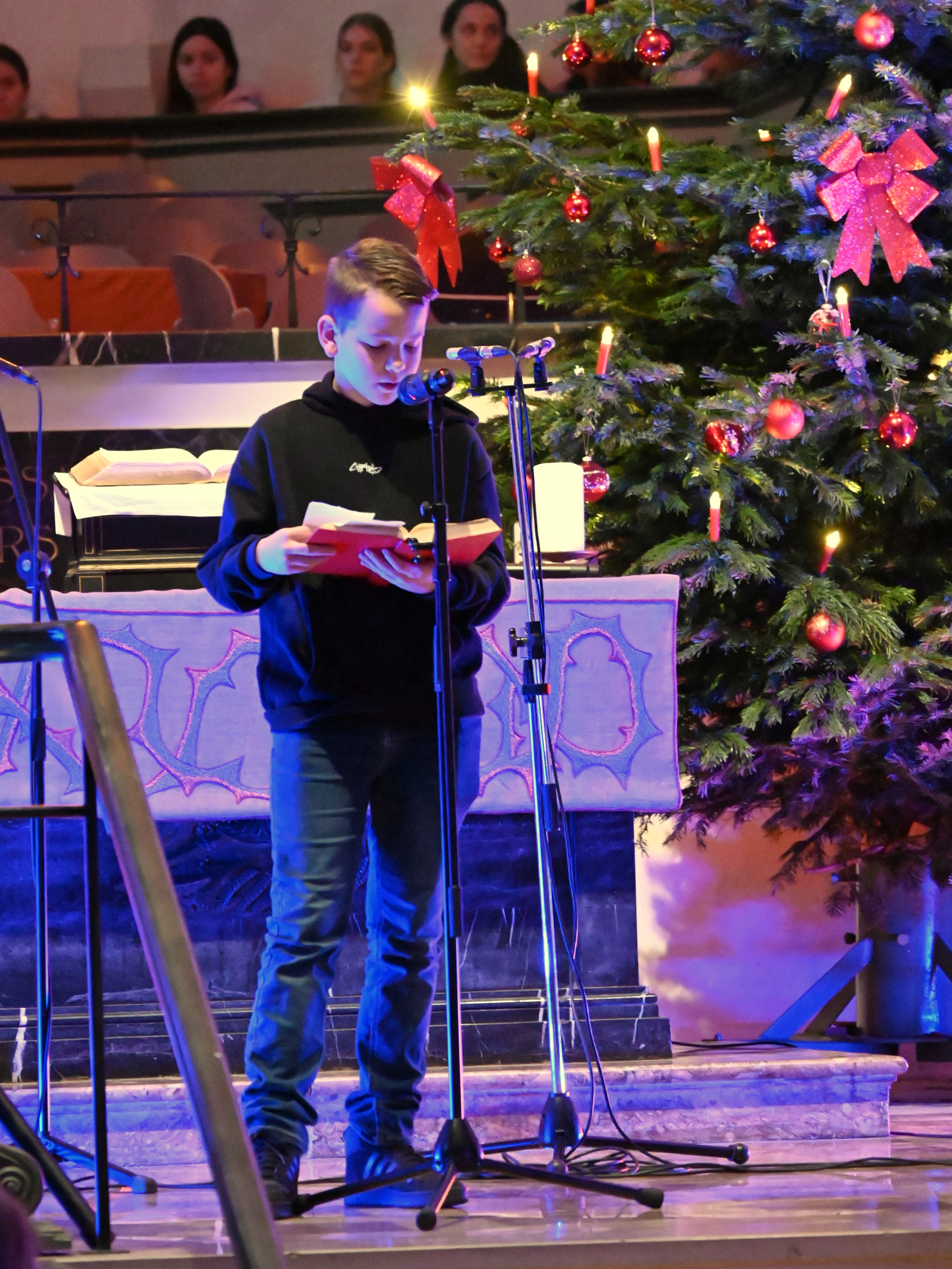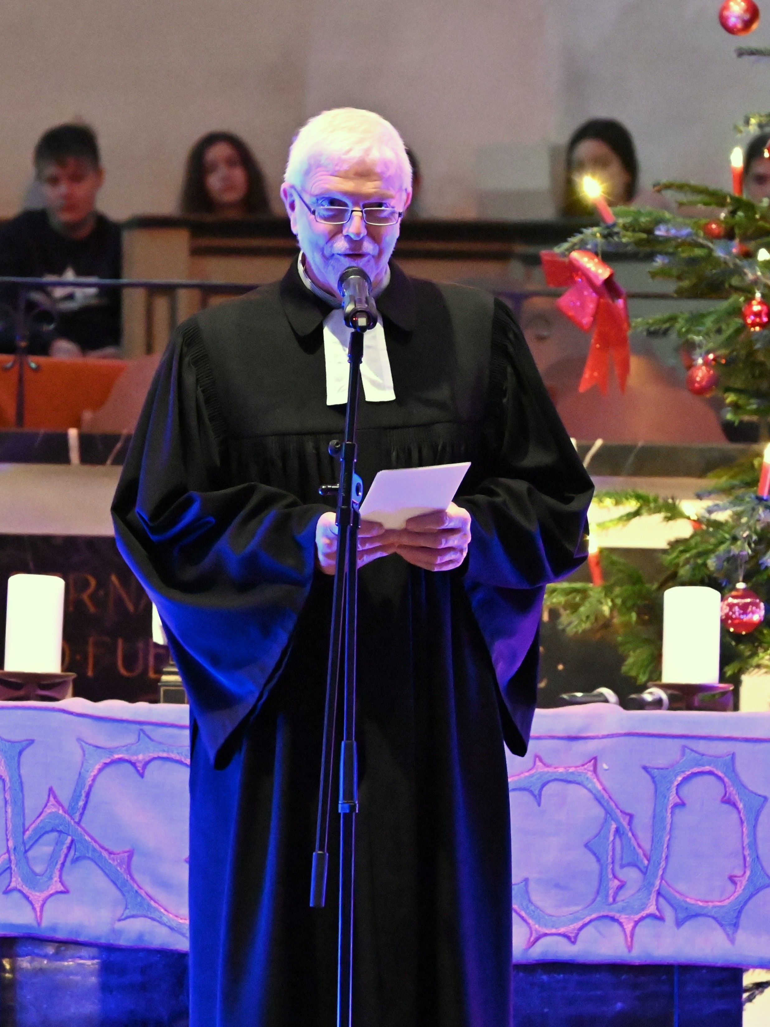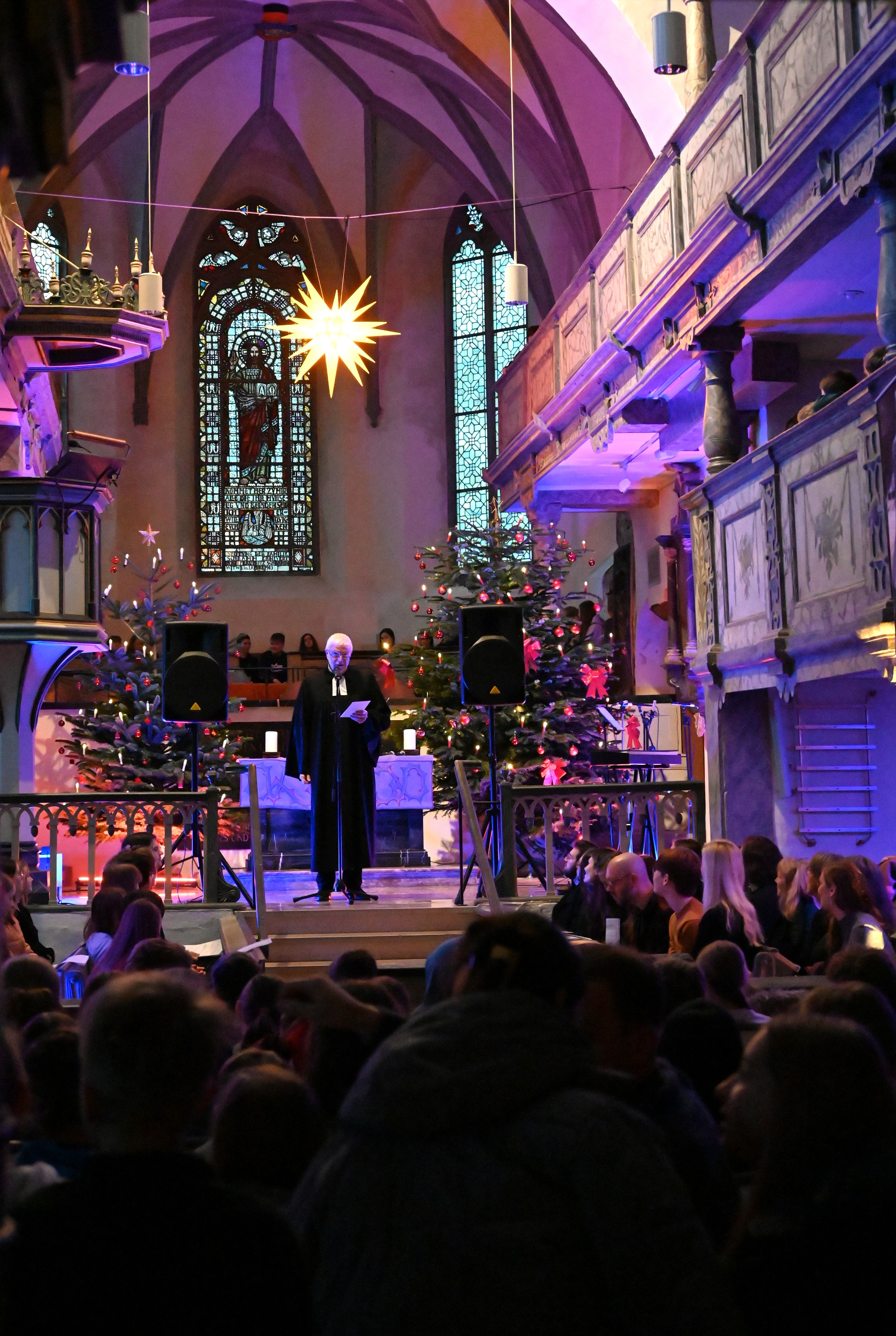 Musikalisch stimmungsvoll umrahmt wurde der Weihnachtsgottesdienst von Martin Giebeler an der Orgel, dem Schulchor unter Leitung von Dr. Catharina Löffler und dem von Jakob Tollerian dirigierten Lehrer-Projektchor.