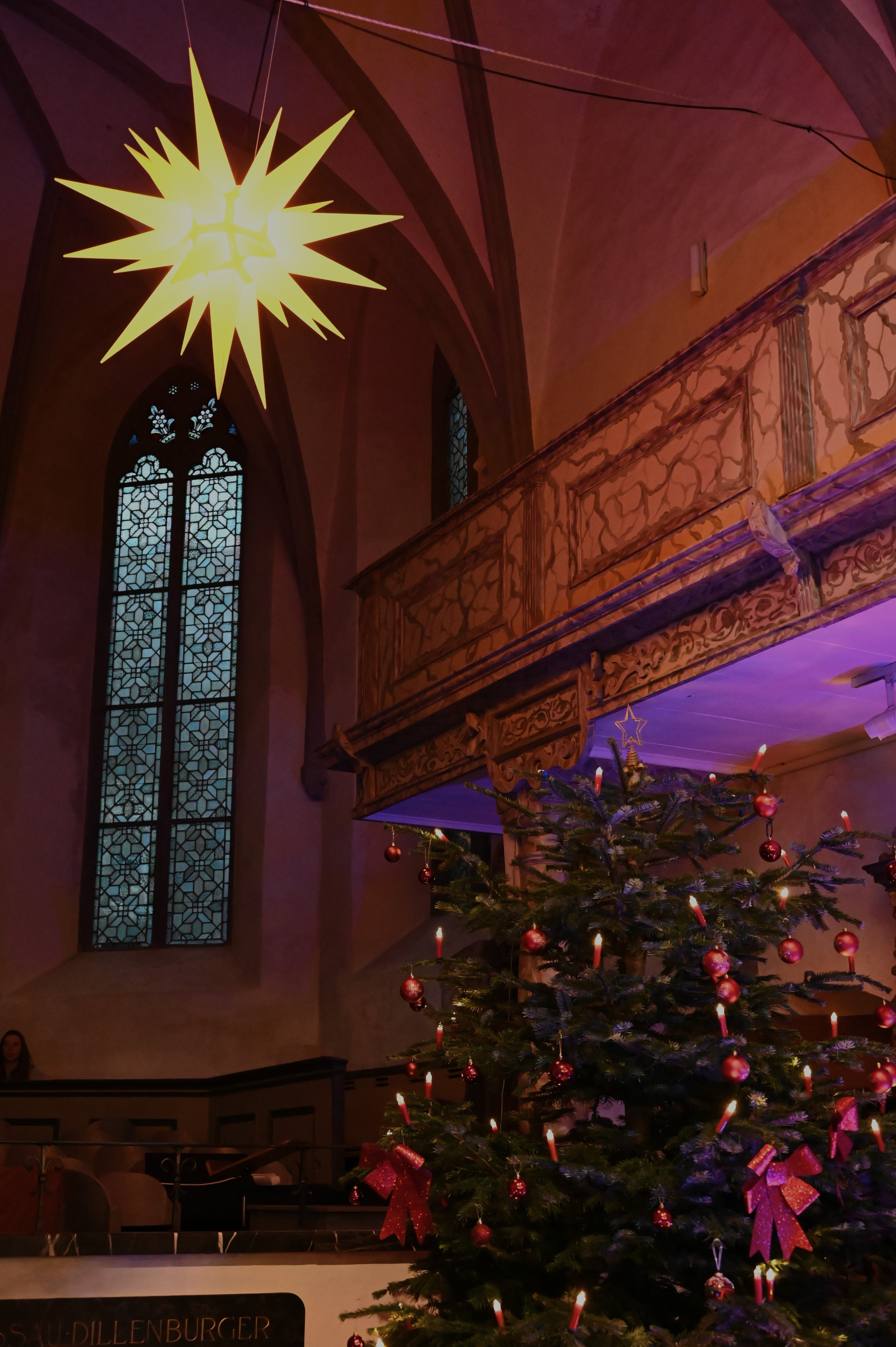 Traditionell findet am letzten Schultag vor Weihnachten am Dillenburger Gymnasium ein von der Fachschaft Religion organisierter ökumenischer Gottesdienst statt, jährlich reihum in der evangelischen oder der katholischen Kirche oder in der Freien evangelischen Gemeinde. Dieses Jahr war wieder die ev. Stadtkirche dran, die durch ihre historische Atmosphäre stets eine ganz besondere Stimmung ermöglicht. Zwar ist das Gebäude zu klein für alle Schülerinnen und Schüler, sodass nur die Religionskurse der Mittelstufe teilnehmen können, aber die Ethikkurse sowie die Schülerinnen und Schüler der Oberstufe erhielten im Schulgebäude ein zusätzliches Weihnachtsprogramm.