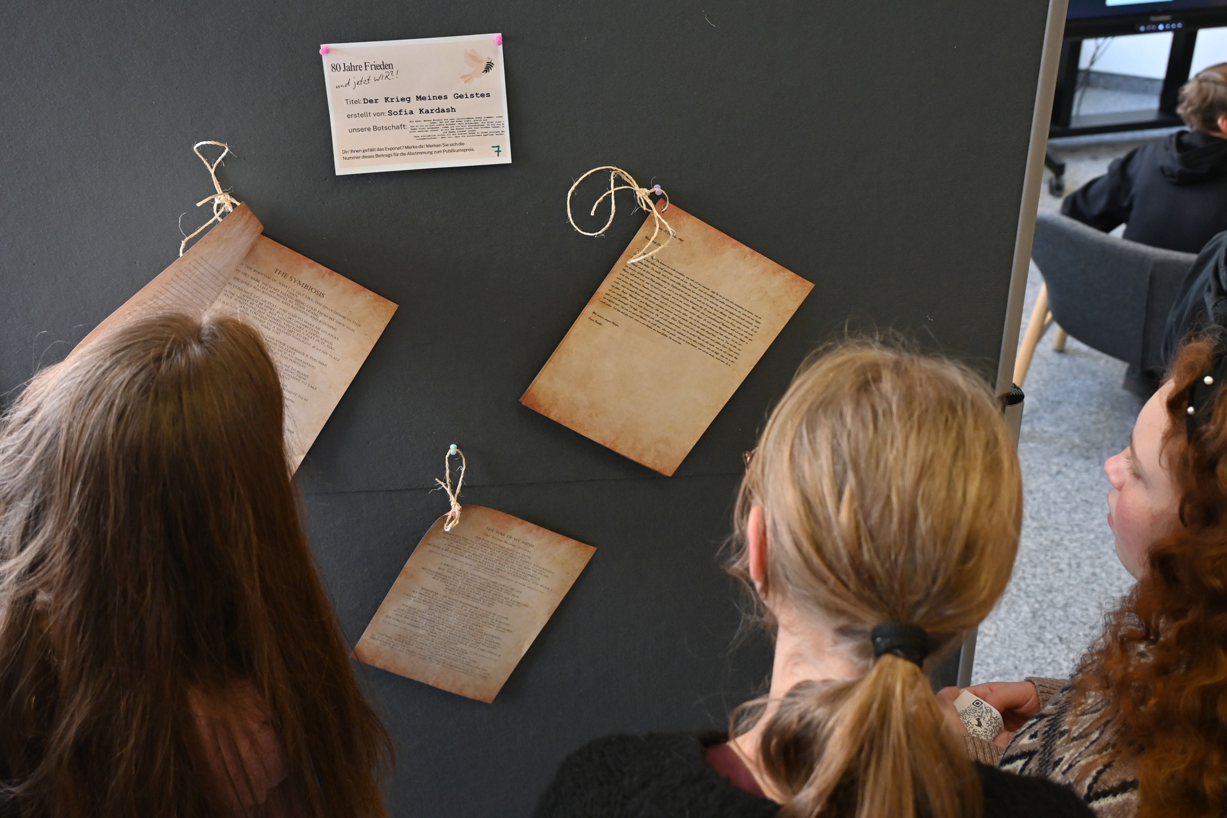 80 Jahre Frieden in Deutschland – das fühlte sich für mehrere Generationen so selbstverständlich an, aber spätestens seit dem russischen Überfall auf die Ukraine und dem daraus resultierenden Zermürbungskrieg spüren auch viele Jugendliche: Frieden ist keine Selbstverständlichkeit mehr. Man muss sich kümmern um dieses hohe und leider sehr verletzliche Gut. Dies anzuregen hatte sich die Demokratie-AG der Wilhelm-von-Oranien-Schule (WvO) zur Aufgabe gemacht und einen Schülerwettbewerb zum Thema ausgeschrieben.