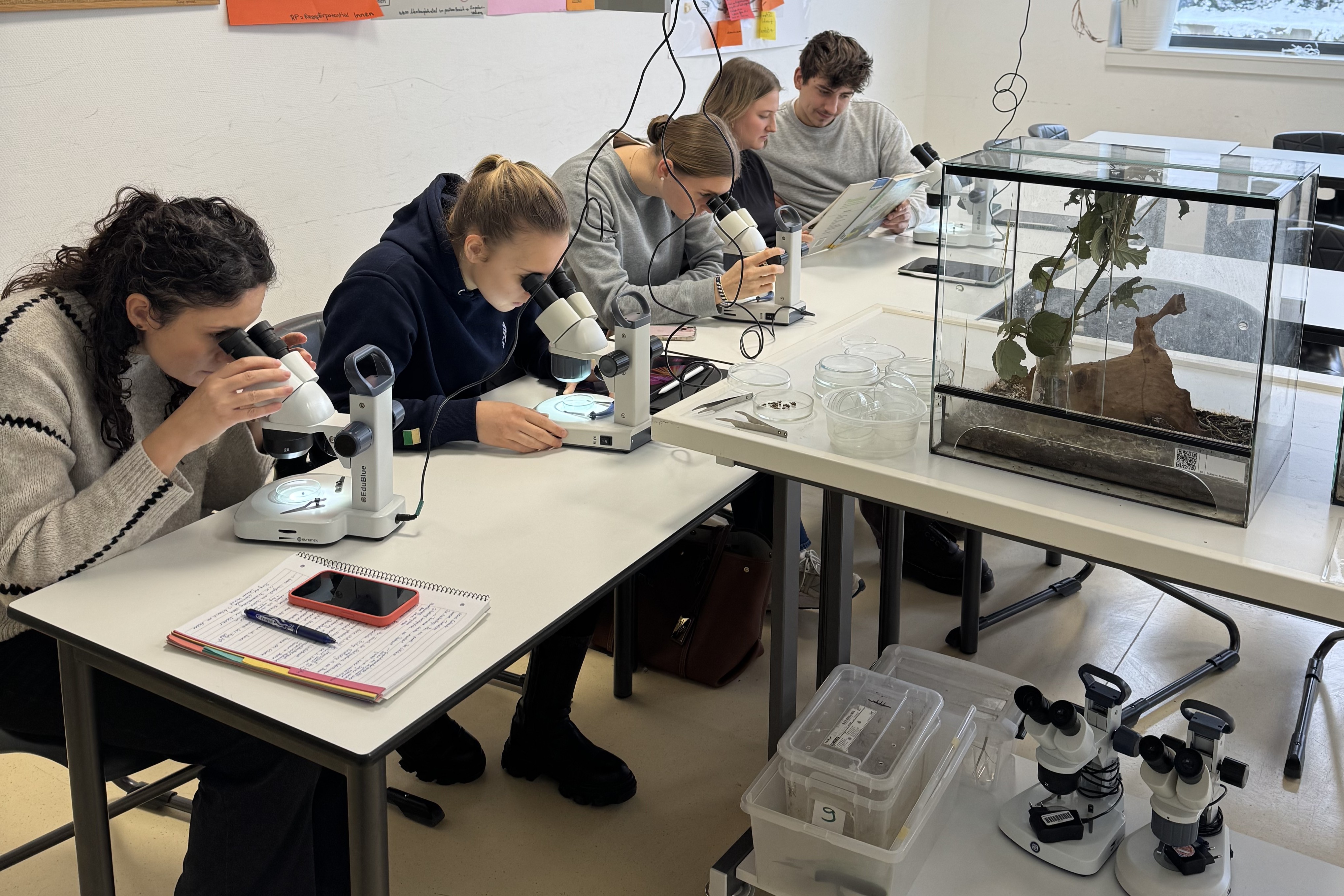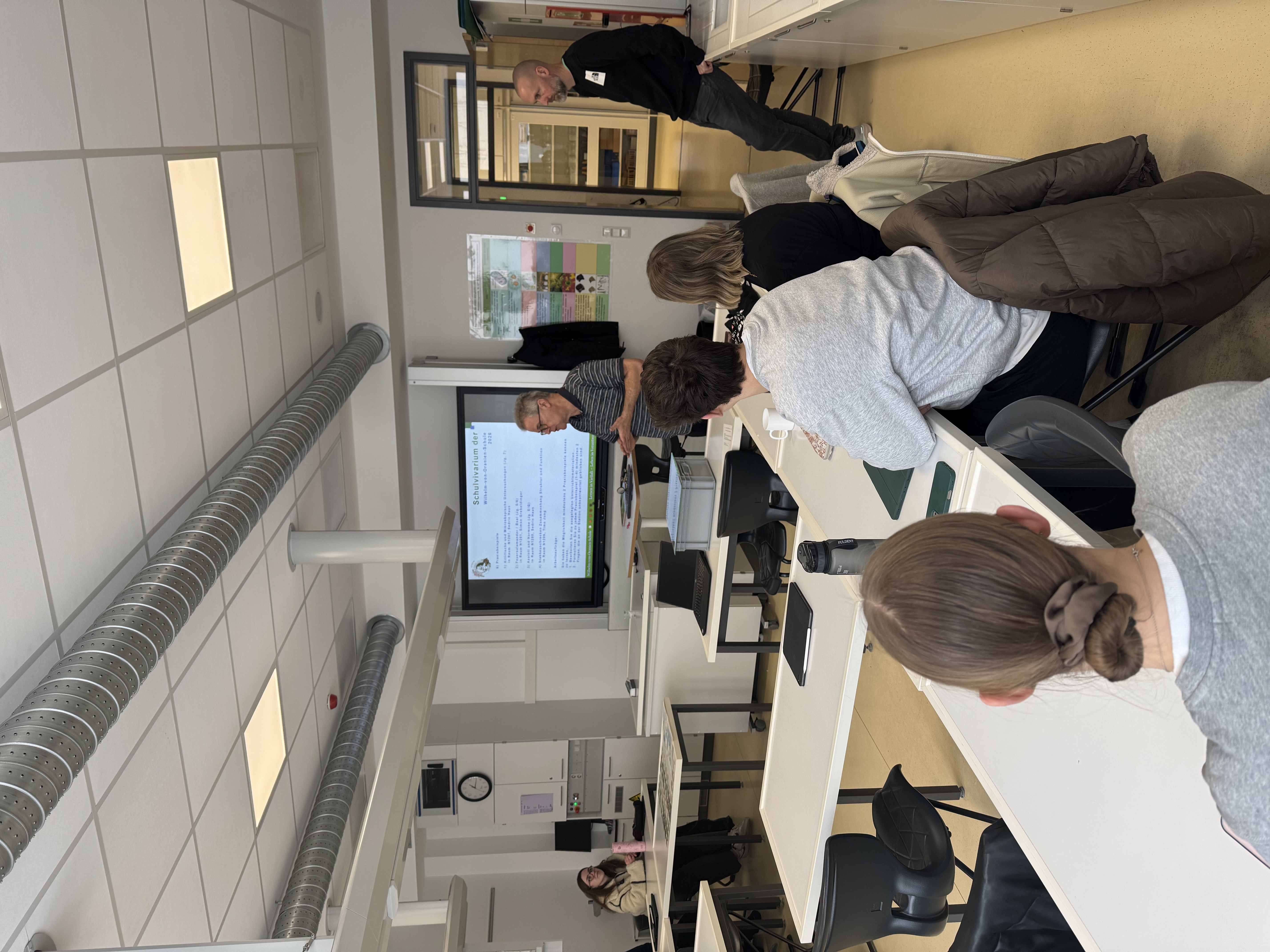 Am 02.02.2026 nutzten 21 Studierende der Biologiedidaktik der Justus-Liebig-Universität Gießen den frühen Unterrichtsschluss im Zuge der Ausgabe der Halbjahreszeugnisse, um sich intensiv und ungestört mit der Arbeit im Schulvivarium der WvO auseinanderzusetzen.