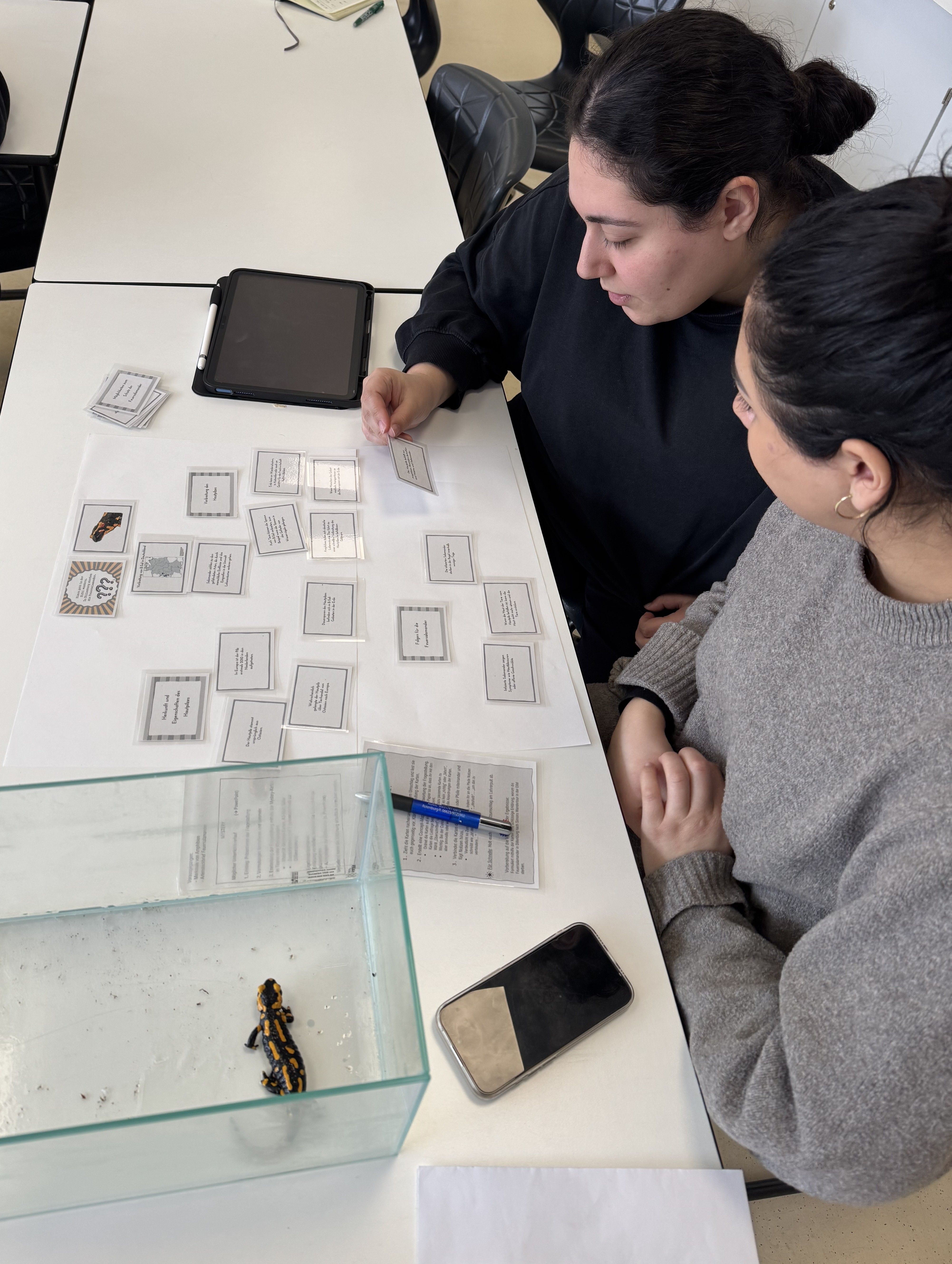 Einen besonderen Schwerpunkt bildete dabei das Feuersalamander-Projekt der WvO, das von Simon Grebeldinger vorgestellt wurde. Das vor vier Jahren als bundesweit einzigartiges Leuchtturmprojekt gestartete Vorhaben der Schule bietet heute nicht nur einen sicheren Lebensraum für rund 40 Feuersalamander, sondern vermittelt zugleich fundierte Hintergründe zum Artenschutz. Die Studierenden erprobten in diesem Zusammenhang ein Mystery zur Ausbreitung der Salamander-Pest, verursacht durch den Hautpilz Batrachochytrium salamandrivorans (Bsal).