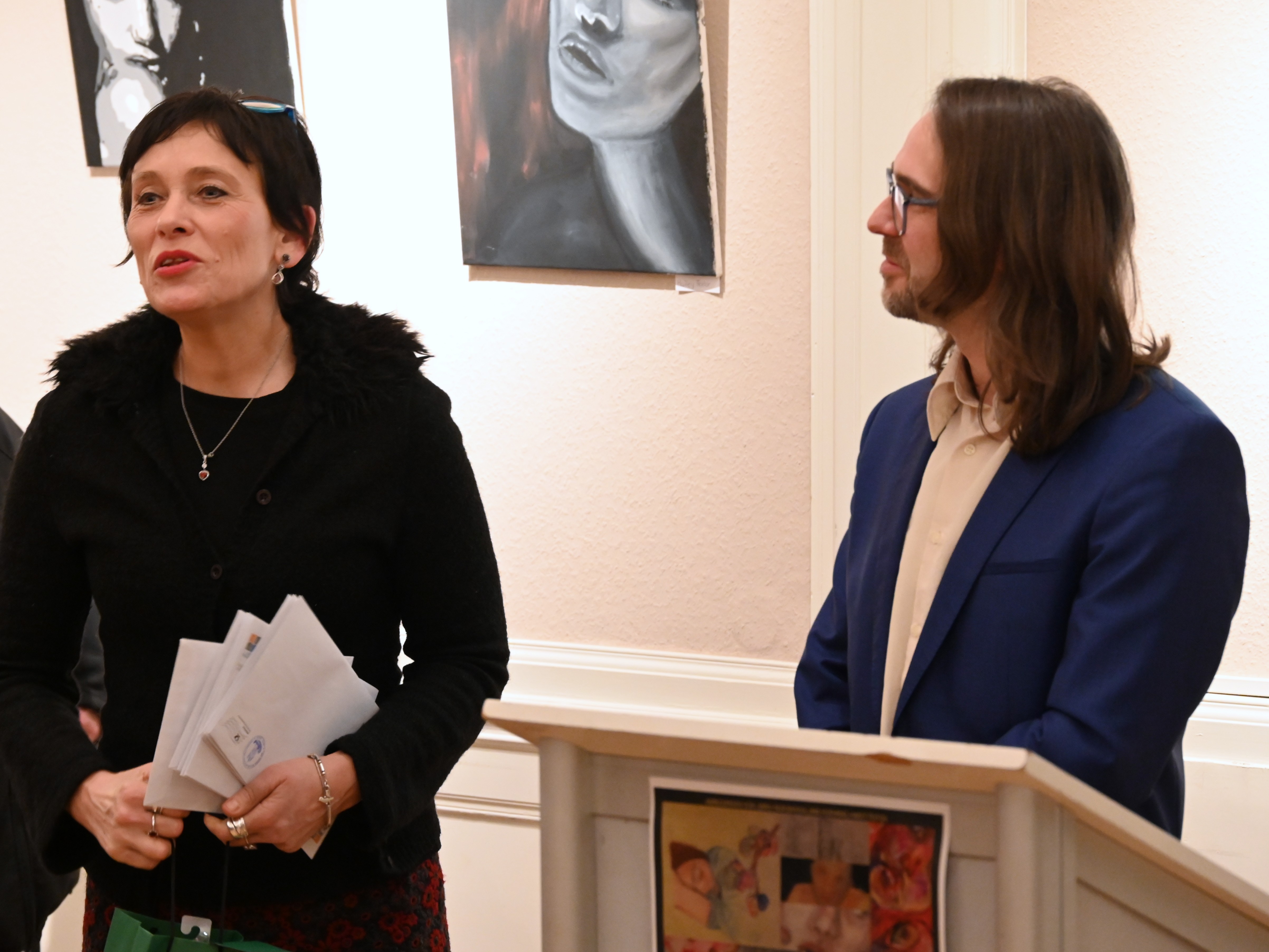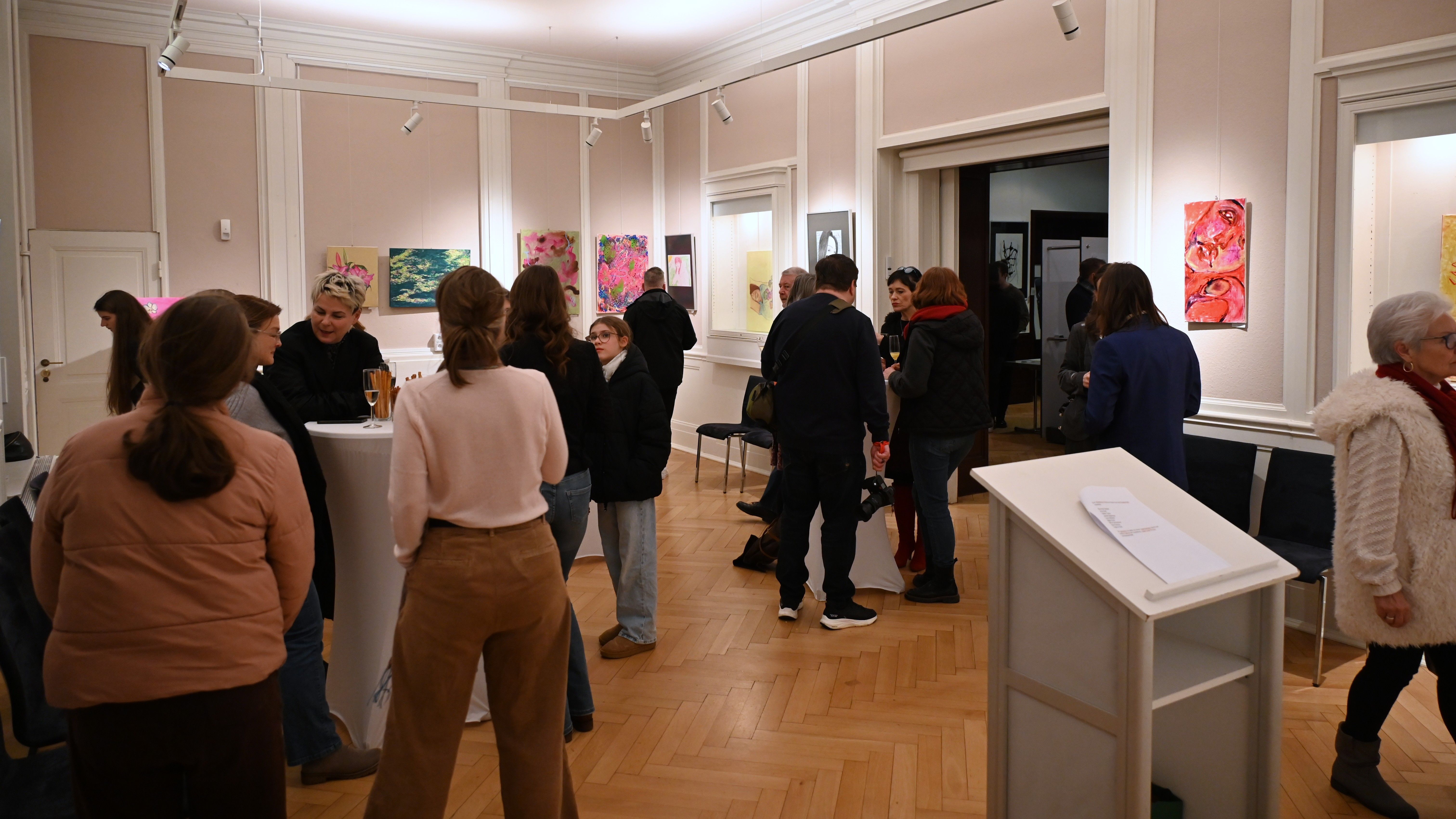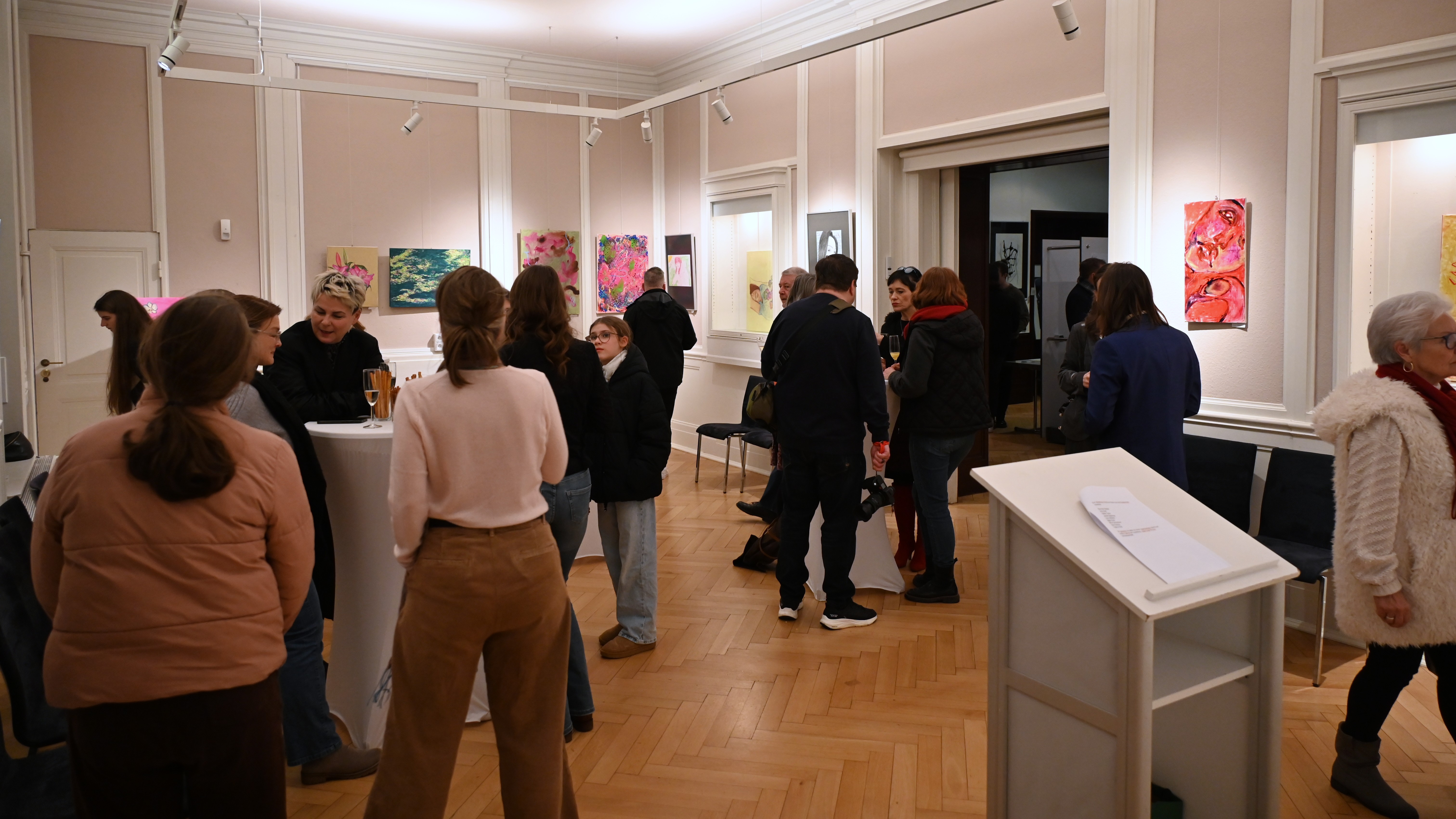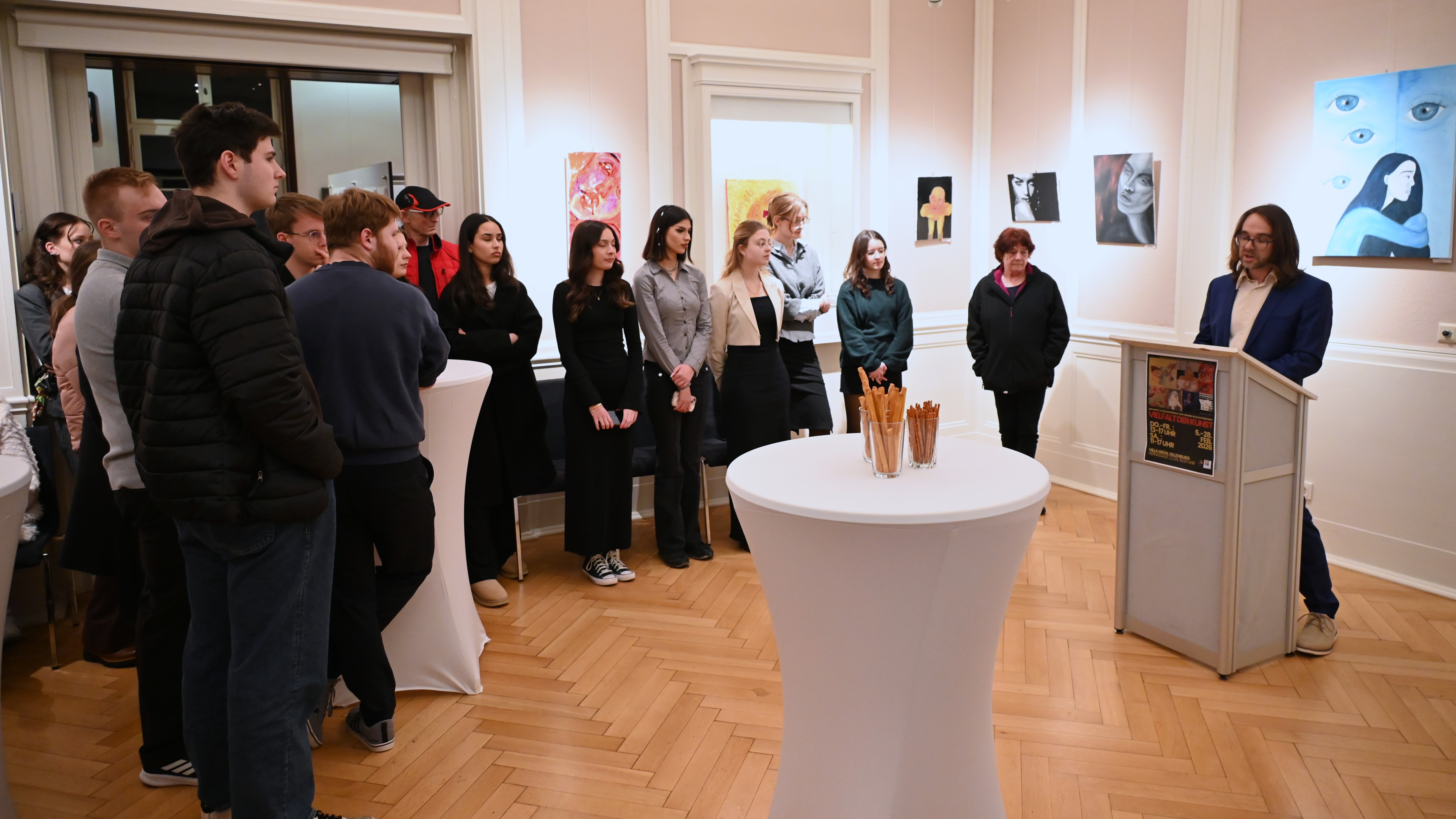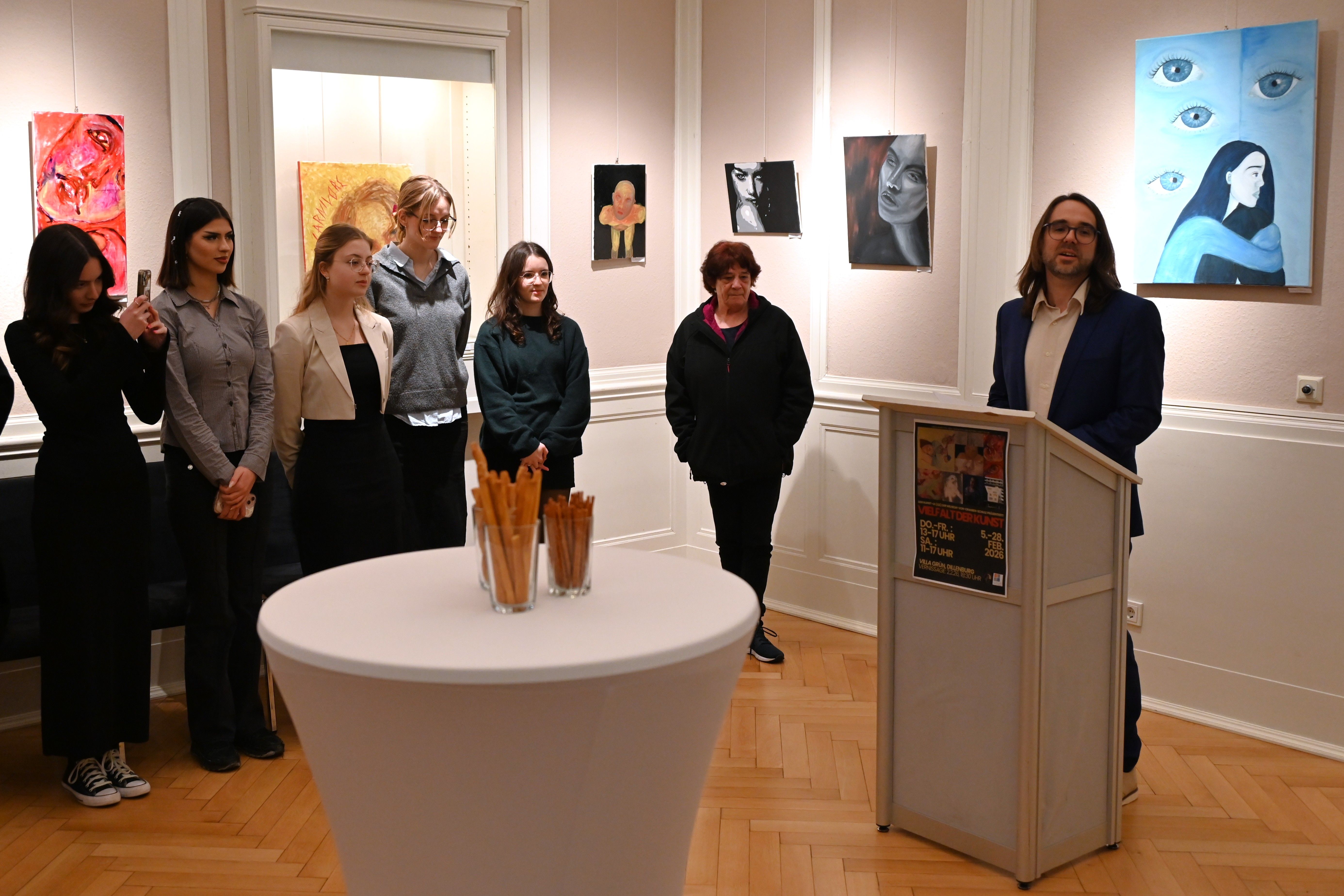 Rund 60 Gäste waren zur Ausstellungseröffnung gekommen und füllten die historischen Räume mit lebendigen Gesprächen über Kunst und Schule. Viele trafen sich seit vielen Jahren erstmals wieder, darunter auch Ehemalige der WvO. Zwischen klassischen Gemälden, expressiven Porträts, detailreichen Architekturmodellen und fotografischen Arbeiten entstand schnell eine offene, inspirierende Atmosphäre.