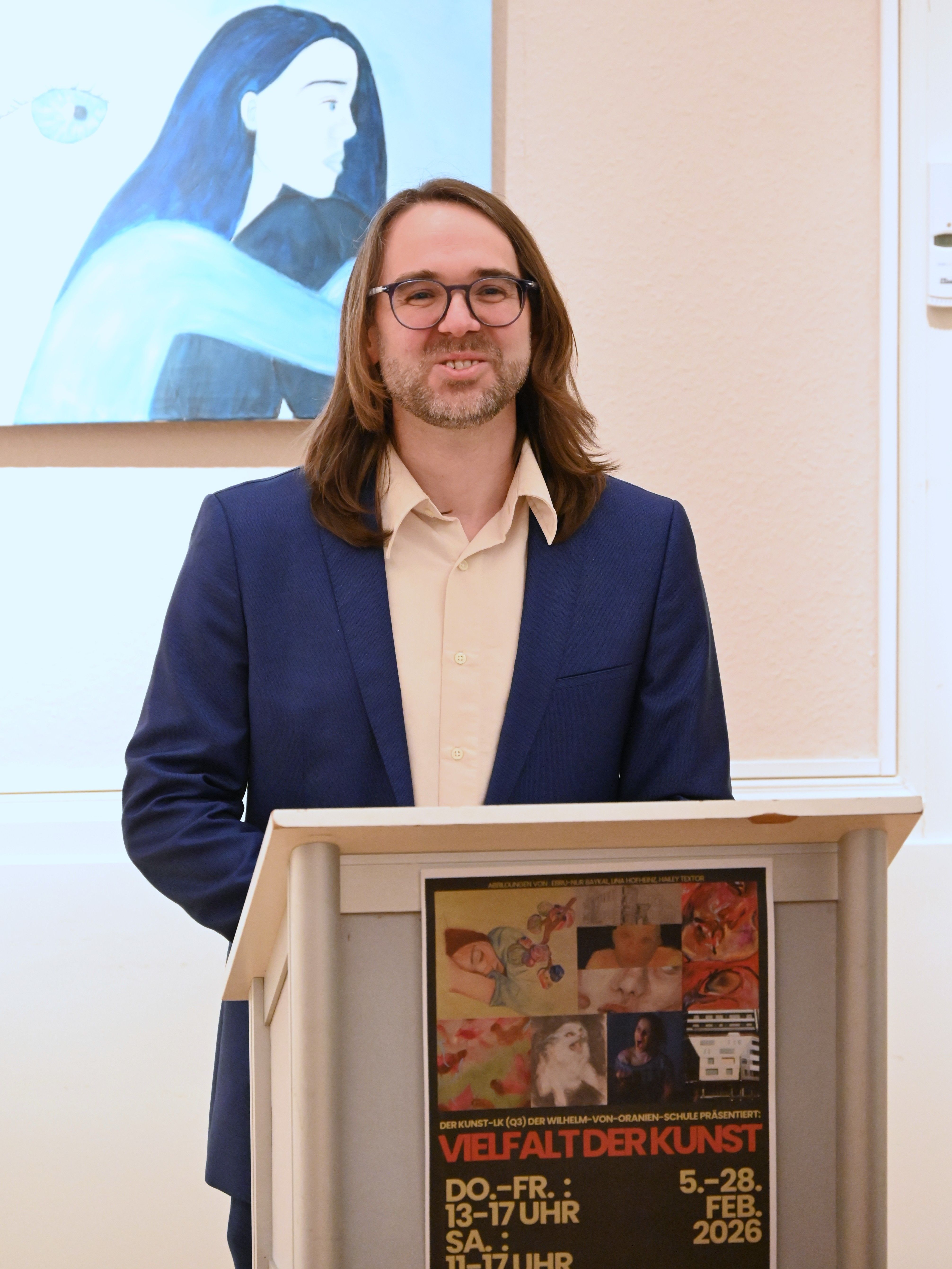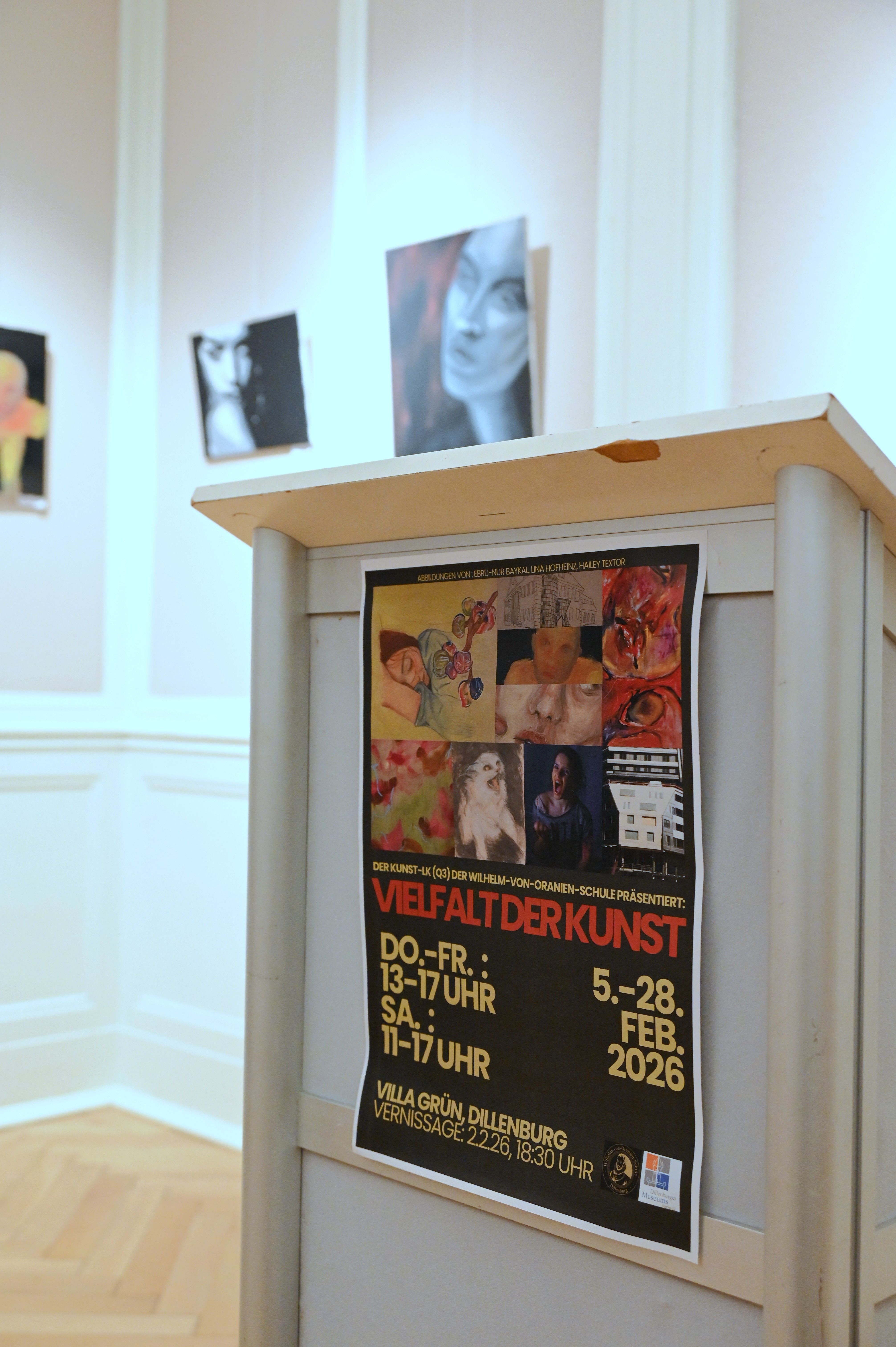 Die Vernissage selbst war geprägt von einer wertschätzenden Stimmung. Schüler/innen, Lehrkräfte, Schulleitungsmitglieder, Familienangehörige, Freundinnen und Freunde, Mitglieder des Dillenburger Museumsvereins sowie Kunstinteressierte aus Dillenburg und Umgebung kamen miteinander ins Gespräch und zeigten große Anerkennung für das Engagement und das künstlerische Niveau der jungen Erwachsenen. Für viele der Ausstellenden war es die erste Präsentation ihrer Arbeiten in einem öffentlichen, professionellen Rahmen – ein besonderer Moment am Ende ihrer Schulzeit. Jurate Minde, die für die Umsetzung der Ausstellung mit verantwortlich war, dankte allen Beteiligten für ihr Engagement und das Möglichwerden der Ausstellung. Sie betonte, dass hiermit eine gute Zusammenarbeit mit der WvO gestartet sei, die auch in Zukunft eine Fortsetzung finden soll.
