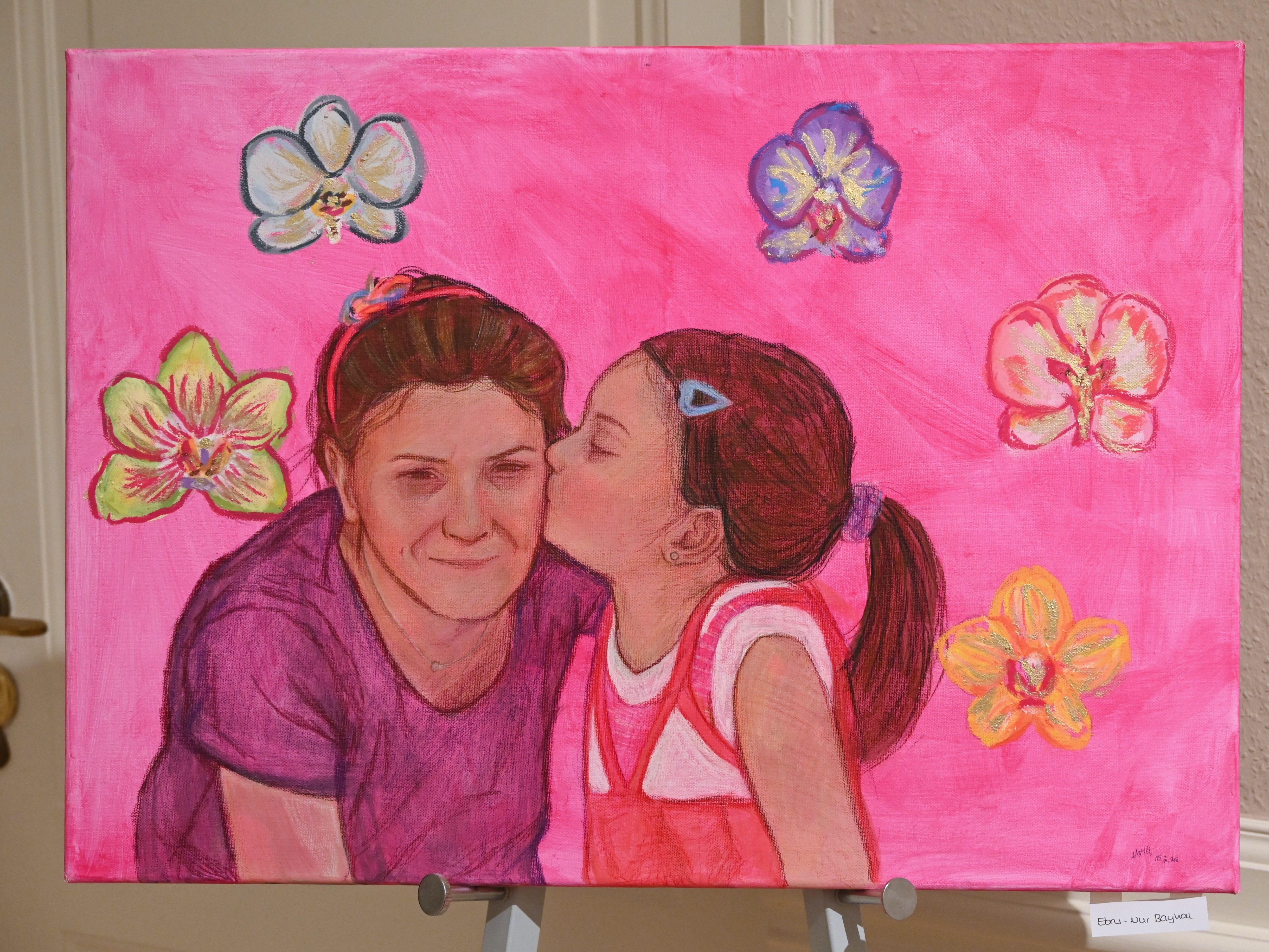 Schon beim Betreten der Ausstellungsräume wurde deutlich, wie breit das künstlerische Spektrum des Kurses ist. Ausdrucksstarke Gemälde und Zeichnungen zogen schon am Eingang die Blicke auf sich – manche fein ausgearbeitet, andere bewusst roh und emotional, z.B. Tierdarstellungen mit kraftvollem Pinselduktus standen reduzierten, fast grafisch wirkenden Gemälden gegenüber.