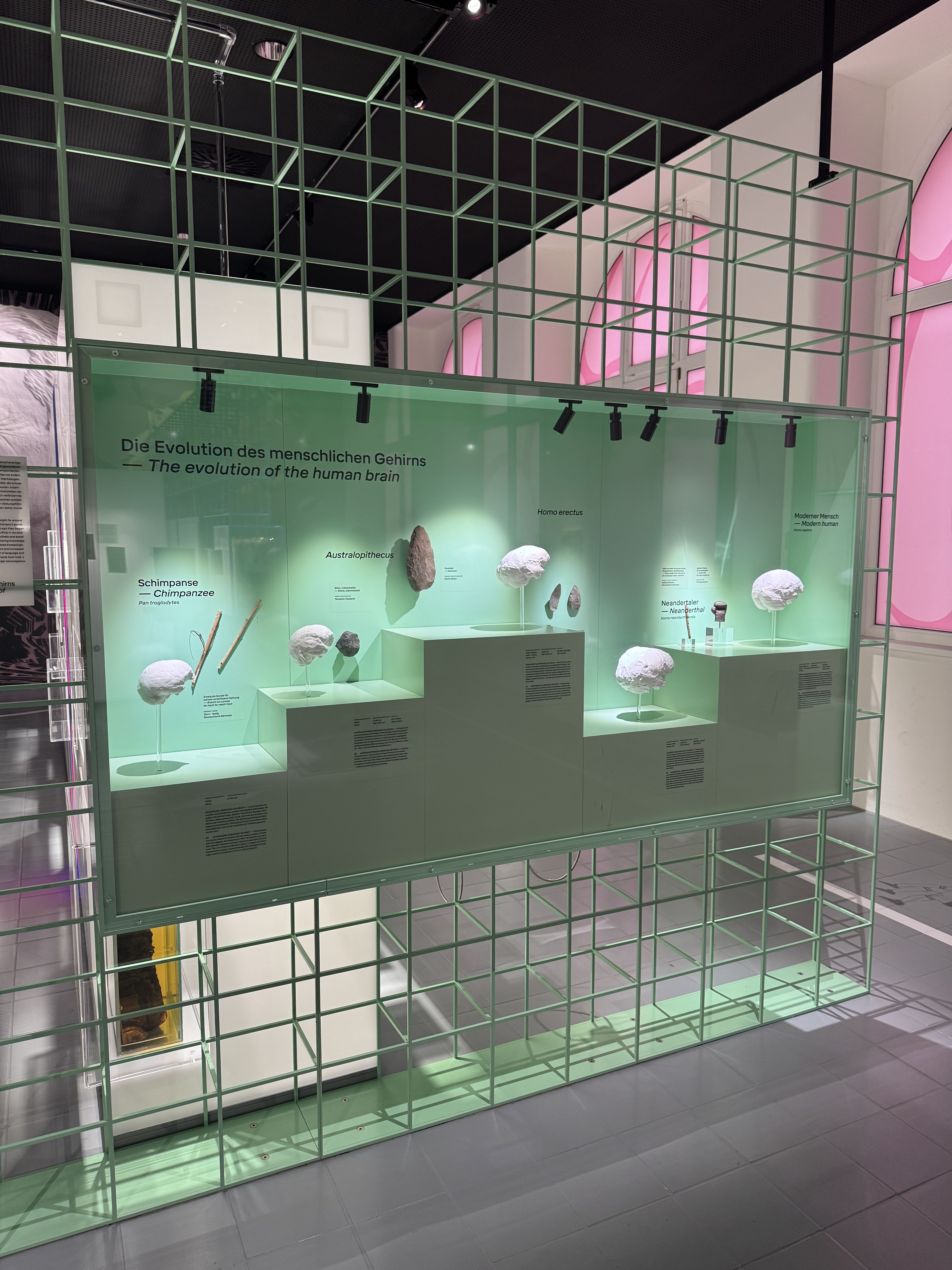 Im Rahmen von Führungen erhielten die Schülerinnen und Schüler spannende Einblicke in aktuelle Unterrichtsinhalte. So wurden beispielsweise Selektionsfaktoren im Kontext der Evolution (Unterrichtsinhalt Q4) anschaulich erläutert. Darüber hinaus konnten auch zentrale, abiturrelevante Aspekte aus der Ökologie (Q2) vertieft werden. Ein weiteres Highlight stellte die aktuelle Sonderausstellung „Gehirne“ dar, die zahlreiche Inhalte aus der Neurobiologie (Q3) aufgriff und eindrucksvoll veranschaulichte.